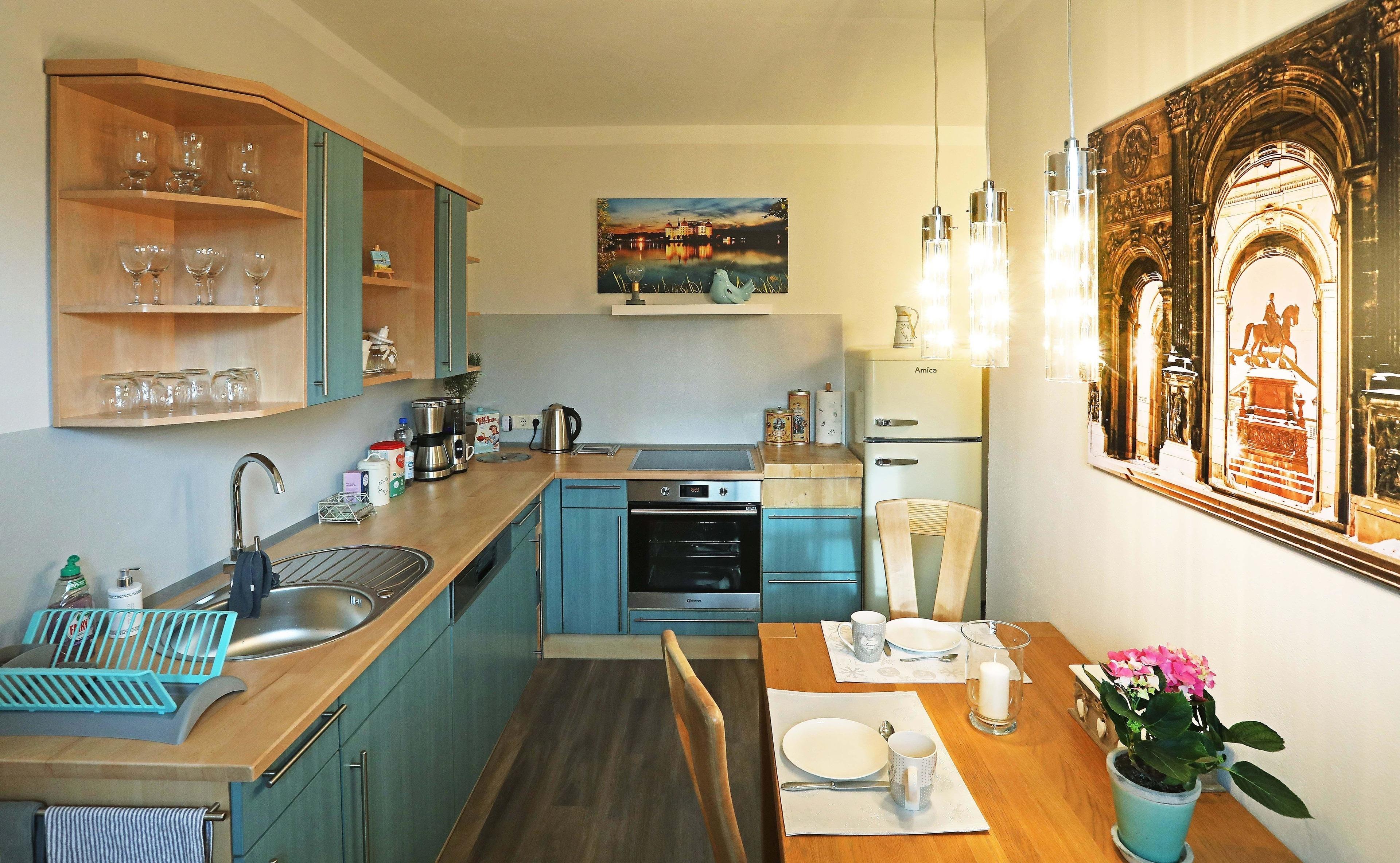 voll eingerichtete Küche, Bad mit Dusche, seperates Schlafzimmer mit Doppelbett und Kleiderschrank, Wohnstube mit TV, Lesesessel und Sofa mit Schlaffunktion, WLAN
