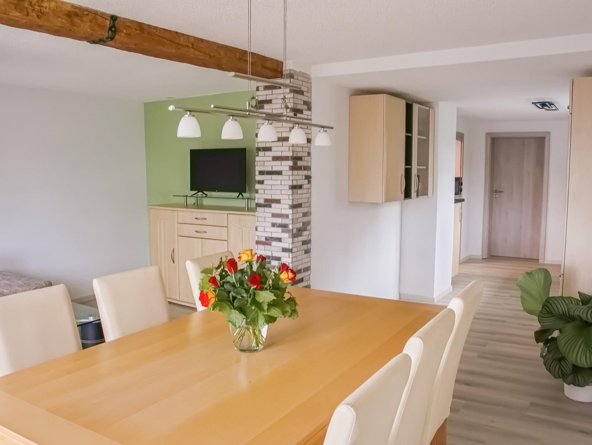 Unser großzügiges Ferienhaus erstreckt sich über 103 m² und bietet komfortablen Raum für bis zu fünf Personen. Es verfügt über zwei separate Schlafzimmer, ein modernes Badezimmer sowie eine vollständig ausgestattete Küche mit großzügigem Wohnbereich. Ein großer Esstisch lädt zur gemütlichen Runde ein, ob beim Frühstück oder einem gemeinsamen Spiel.