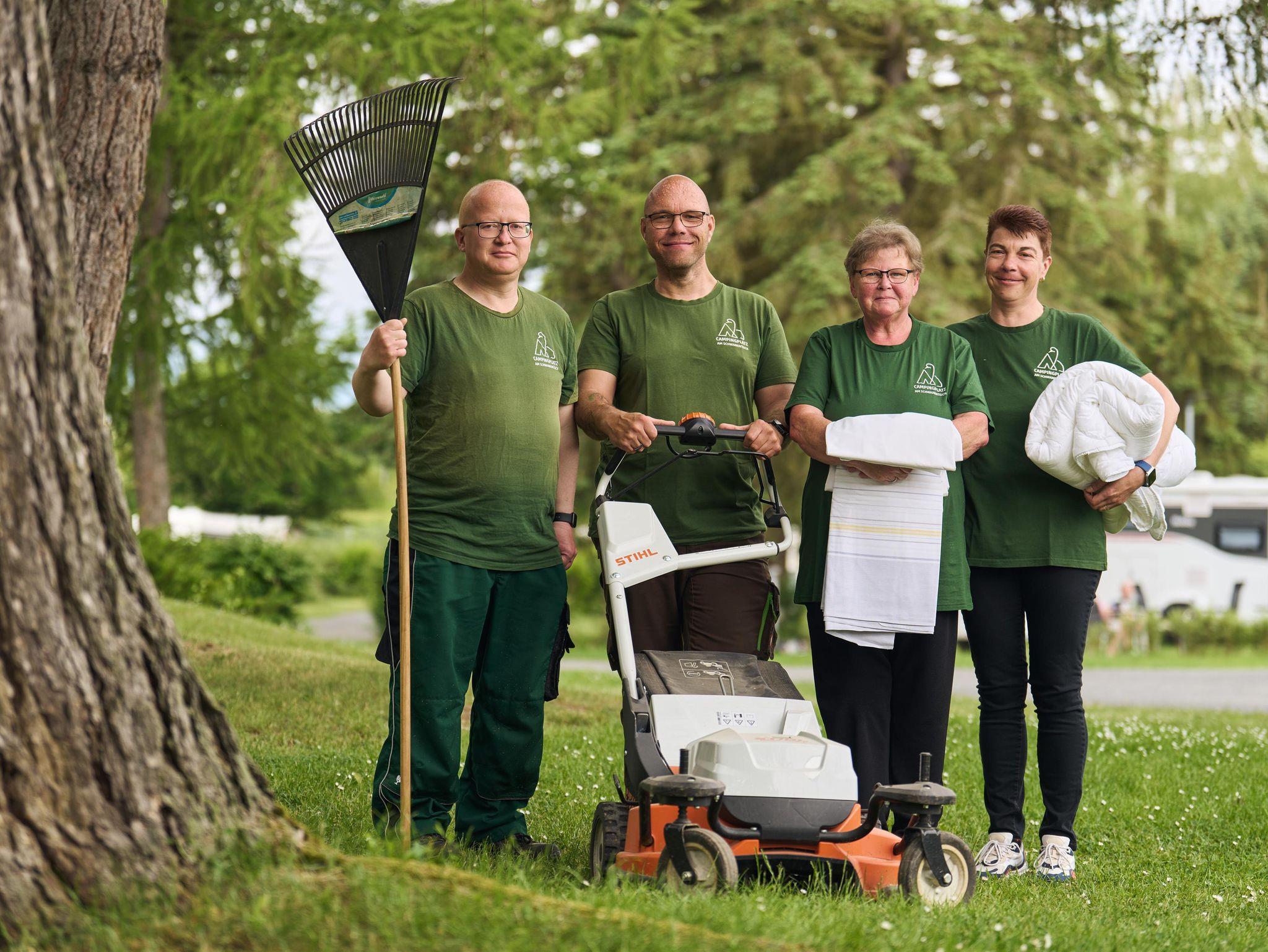 Stellplätze: 46 Stellplätze für Caravans und Wohnmobile sowie eine große Zeltwiese.