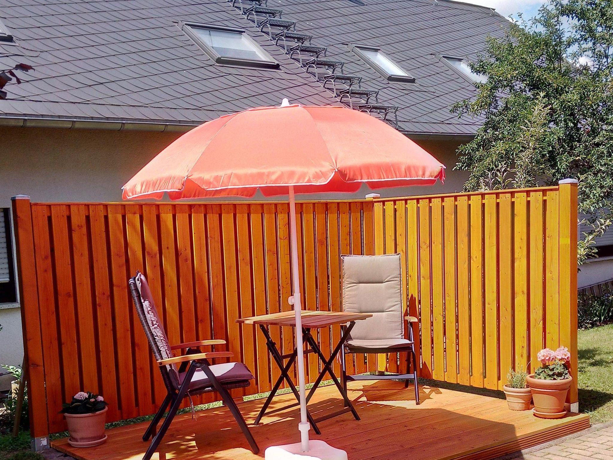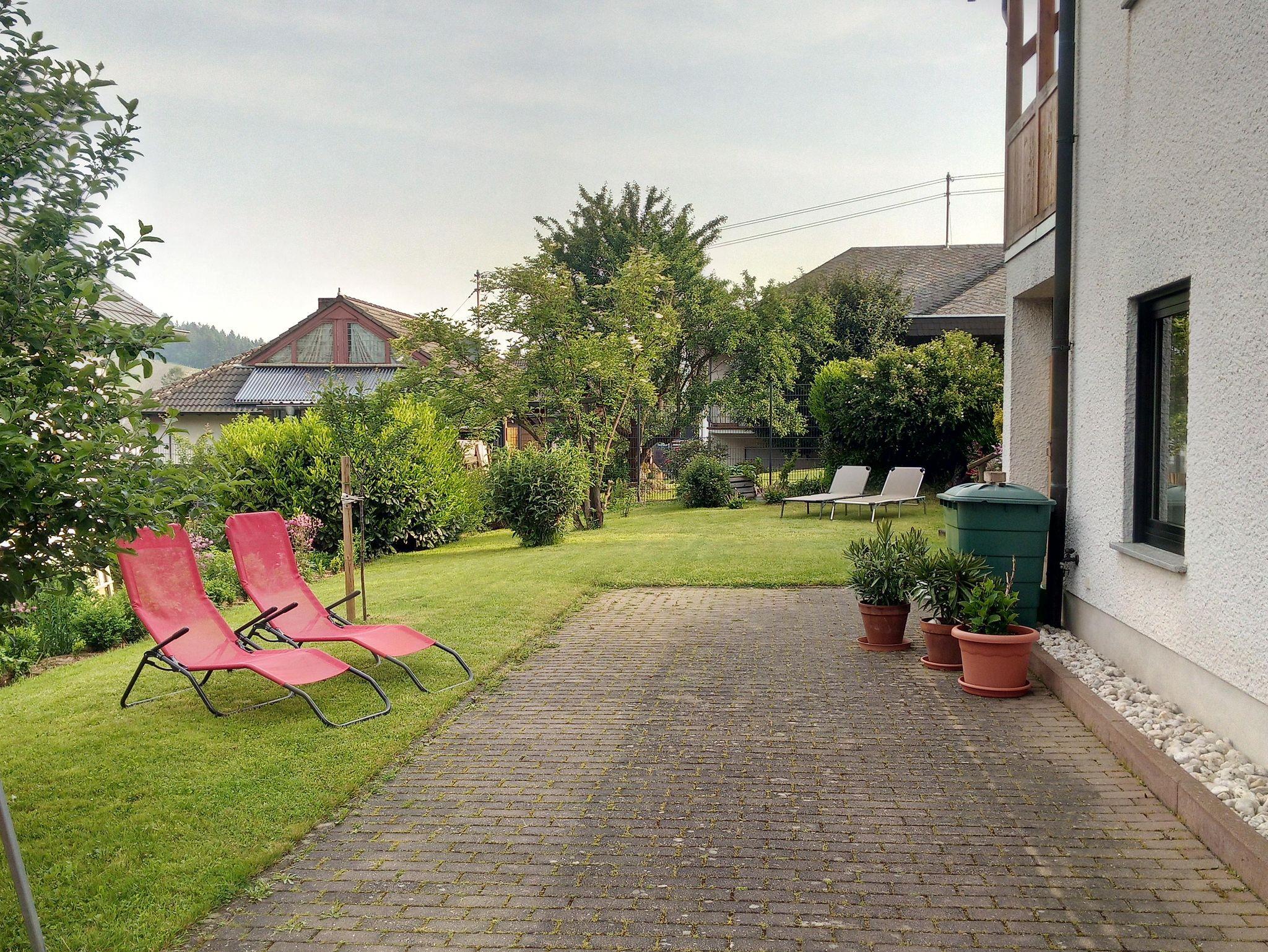 Das Auto kann man direkt vor der Haustür parken wo sich auch ein Garten mit Liegewiese und ein schöner Freisitz befindet!