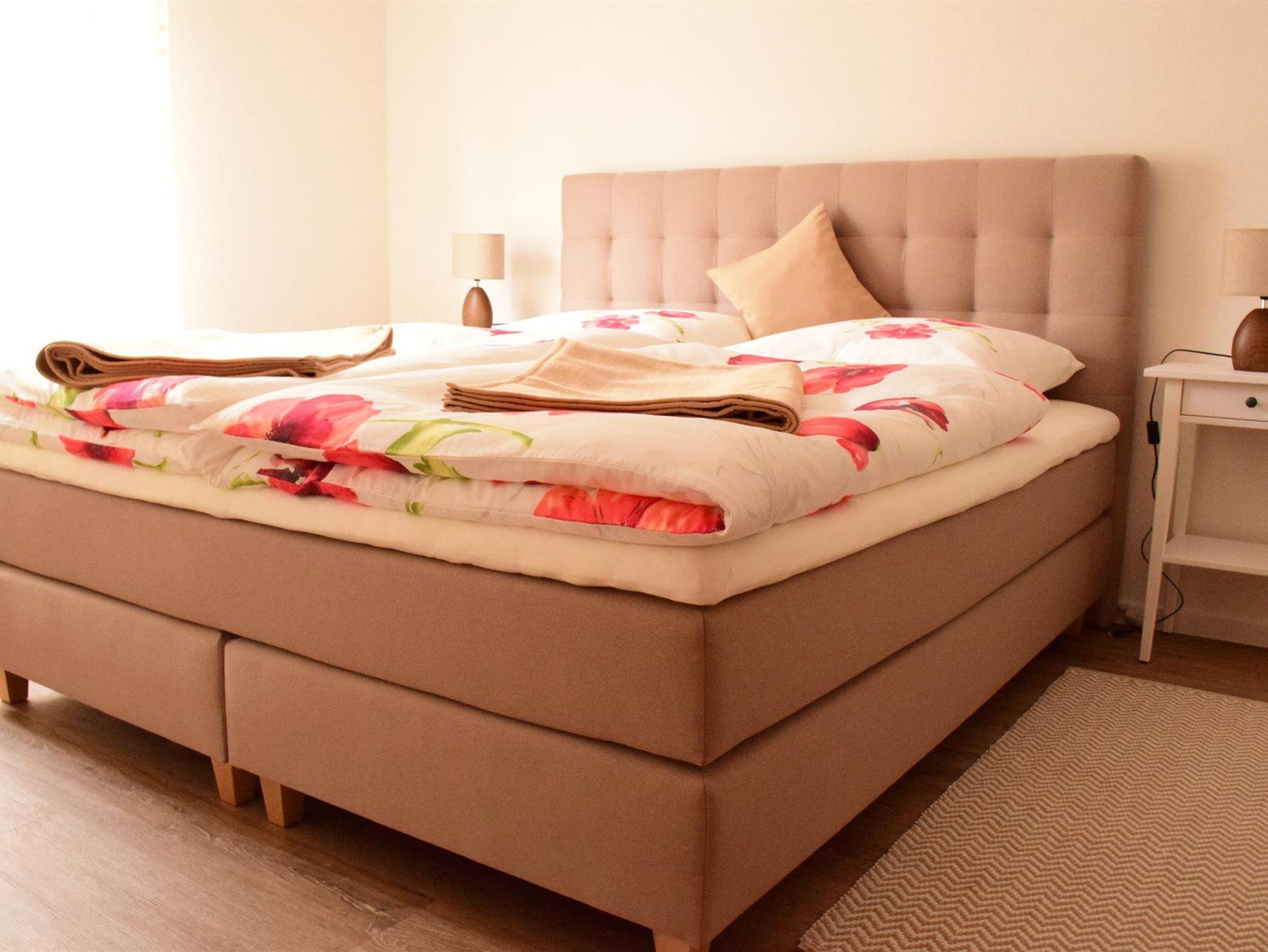 Es erwartet Sie eine gut ausgestattete Küche mit Essecke, ein Wohnzimmer mit Flachbild-TV, ein Schlafzimmer mit Boxspringbett (1,80×2,00 m) mit Bettdecke und Kopfkissen für Allergiker geeignet, sowie ein neues Duschbad (Duschbadhocker vorhanden) und eine Diele.