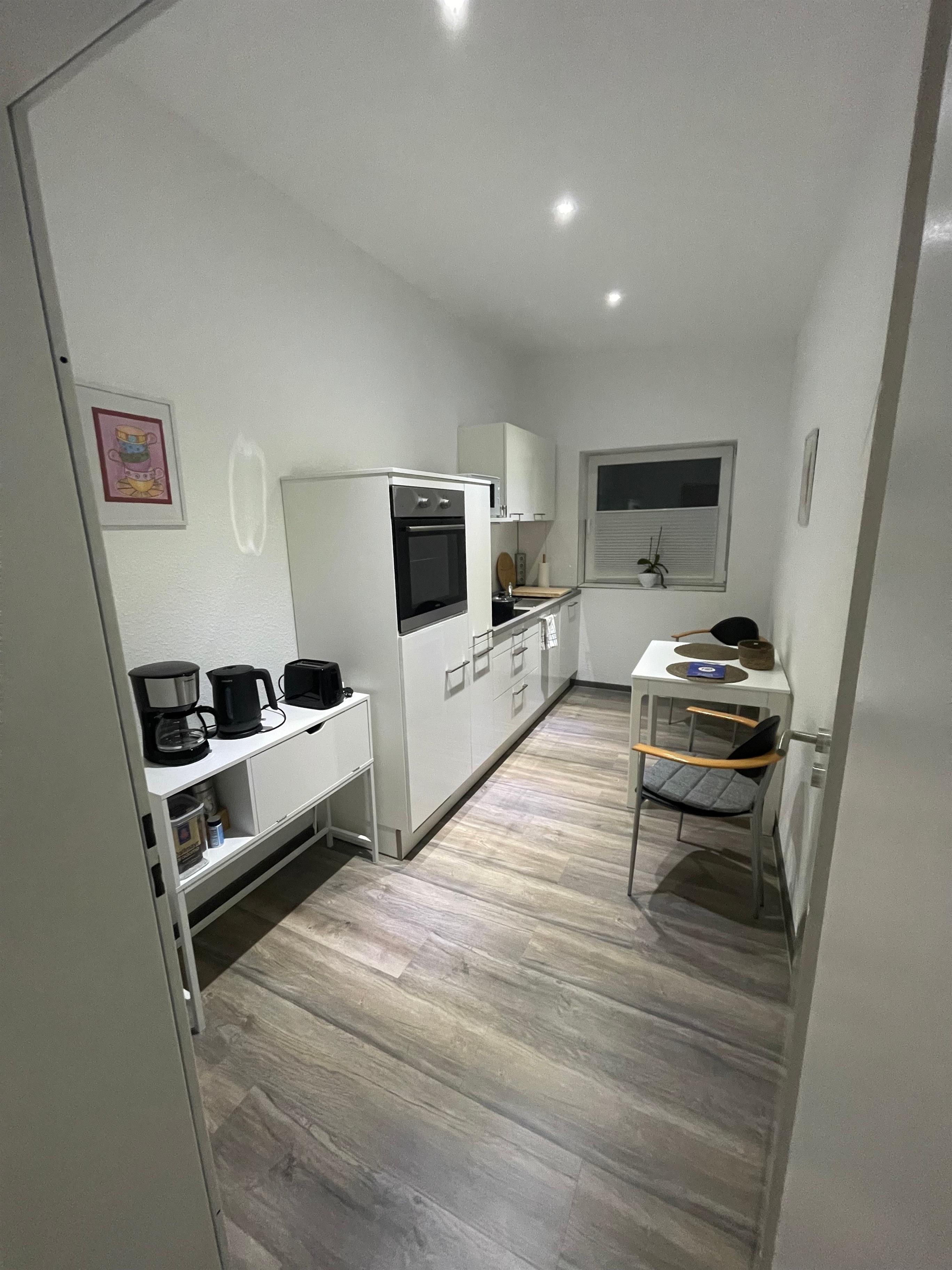 Die Küche in der Ferienwohnung ist mit allen Geräten Ausgestattet, Wasserkocher, Kaffeemaschiene usw.