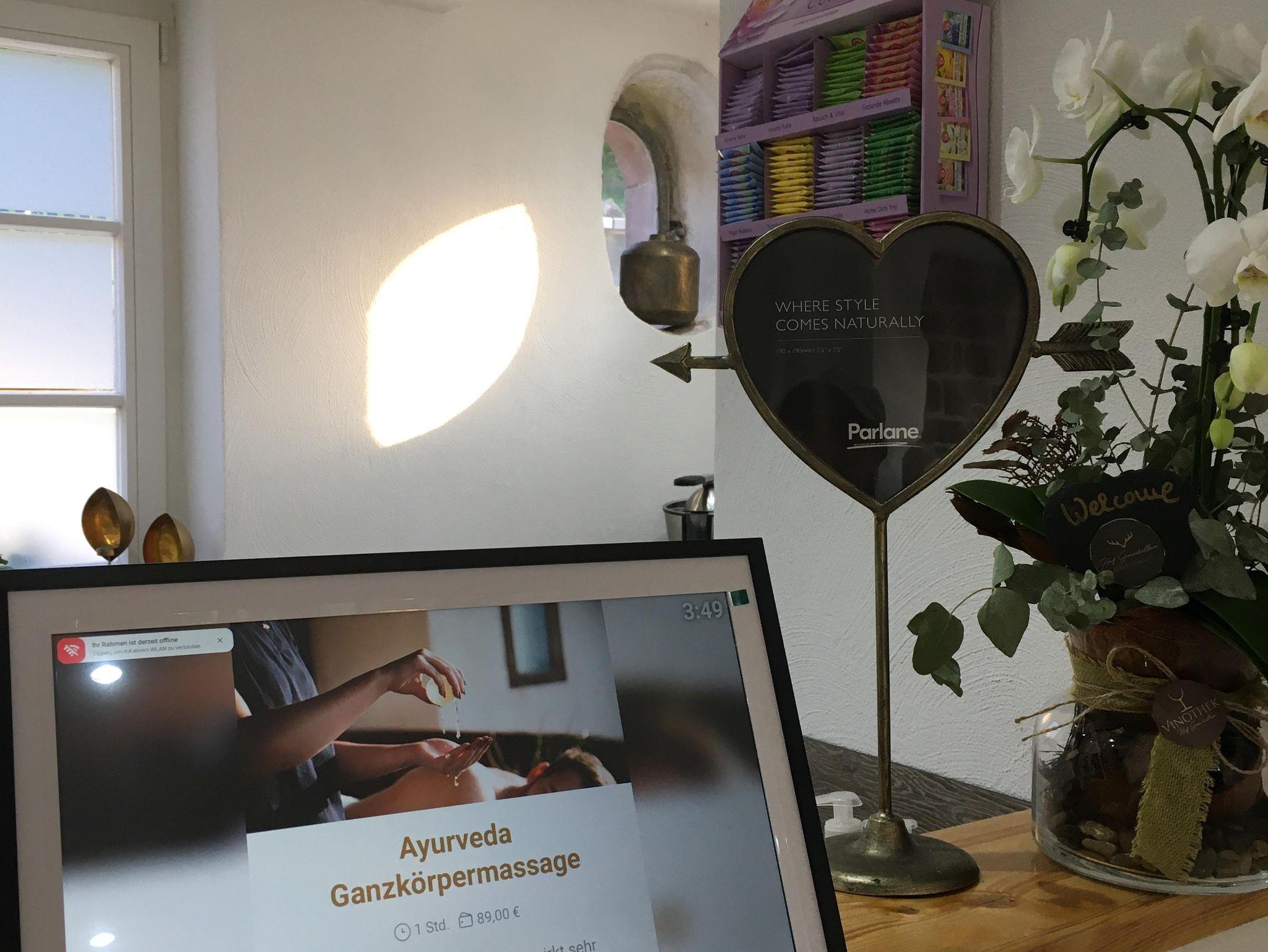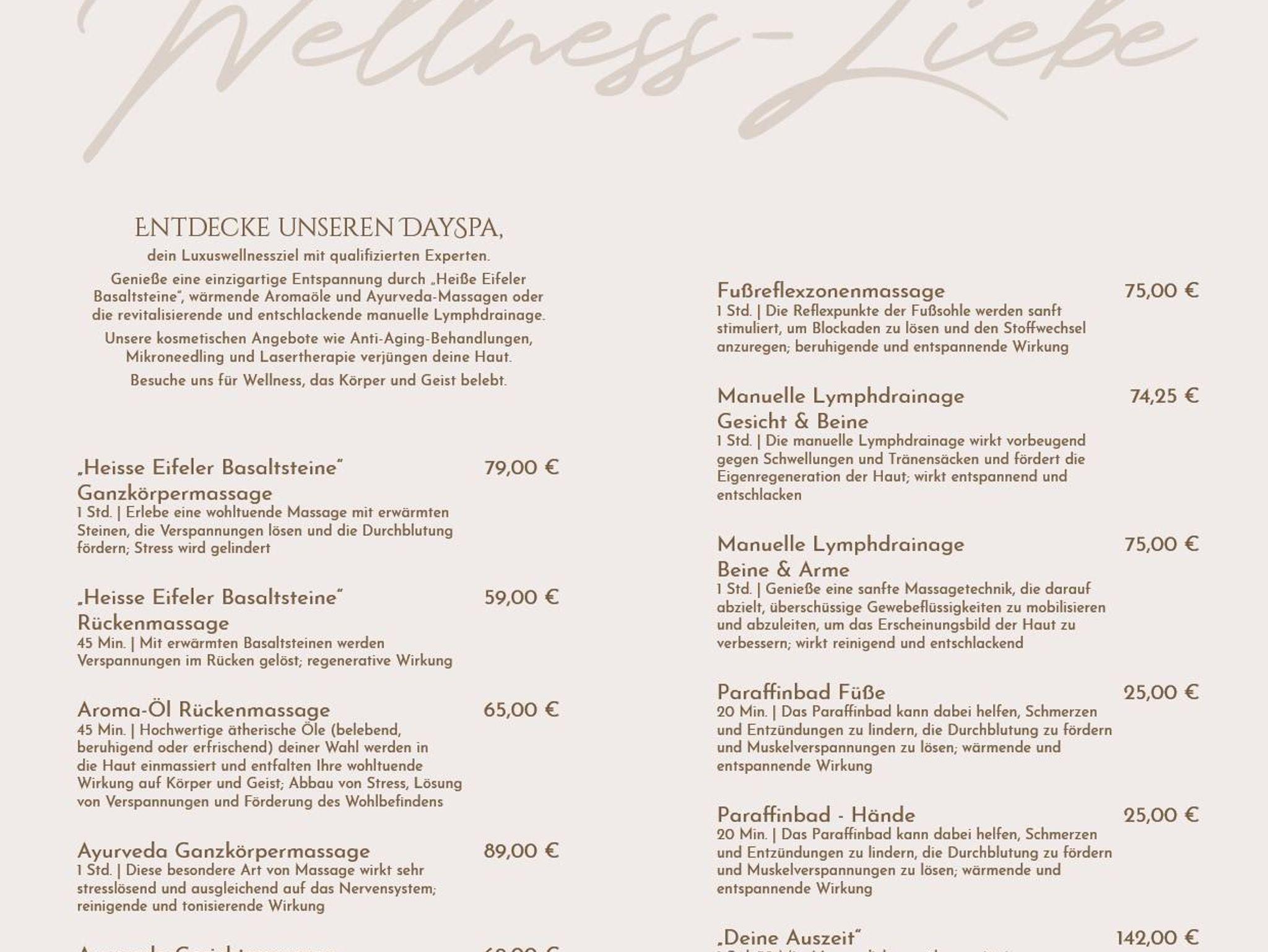 Der Hof lädt mit einer kleinen Parkanlage hinter dem Anwesen zum Verweilen und Entspannen ein. Seit 2024 bieten wir in unserem eigenen DaySpa Relaxanwendungen und Kosmetik für unsere Gäste an. Ab Dezember 2024 werden in der neuen kleinen Vinothek tolle regionale Weine zum Probieren vorgestellt. Eine eigene Vinothek bietet den Gästen die Möglichkeit, eine sorgfältige Auswahl an regionalen Weinen in gemütlicher Atmosphäre zu genießen und sich über die Besonderheiten der Weine aus der Region zu informieren.