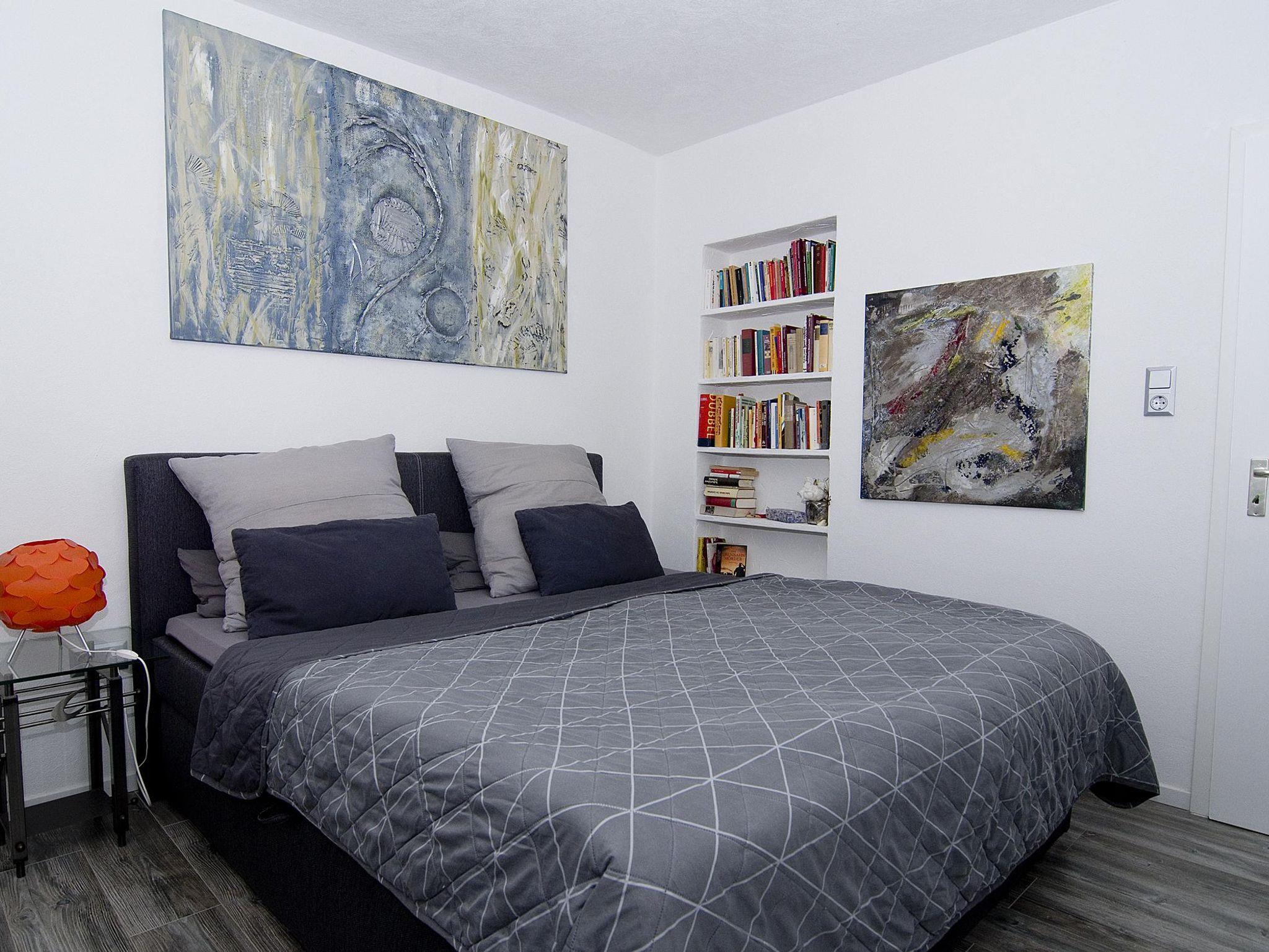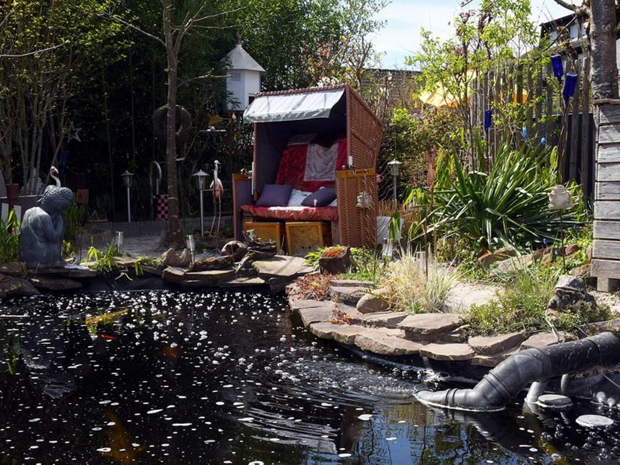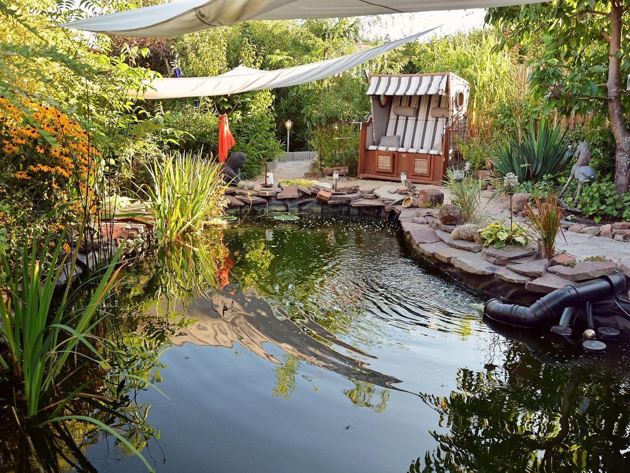 Die FEWO im Erdgeschoss ist modern eingerichtet und besteht aus einem großen Wohn- Ess- und Küchenbereich, 2 Schlafzimmern und einem großzügigen Bad mit Wanne, Dusche und WC. Die ebenerdige Terrasse bietet einen wunderschönen Blick auf den großzügigen Gartenteich mit wertvollen Kois und weiteren Sitzgelegenheiten (Strandkorb). Im Untergeschoss, ebenerdig mit der Straße, befindet sich ein weiteres Schlafzimmer mit Etagenbett und separatem Gäste-WC.