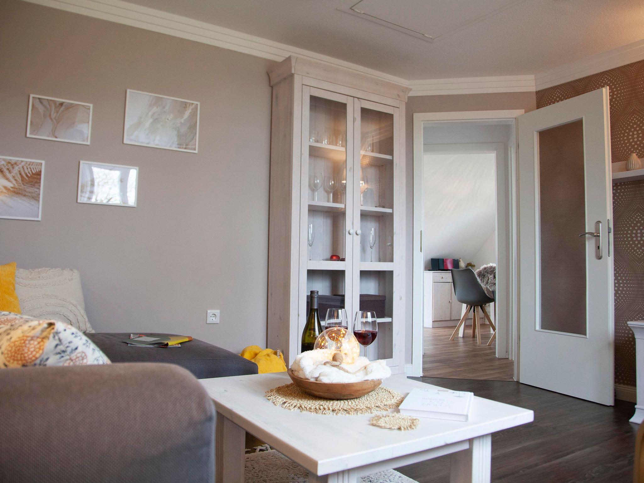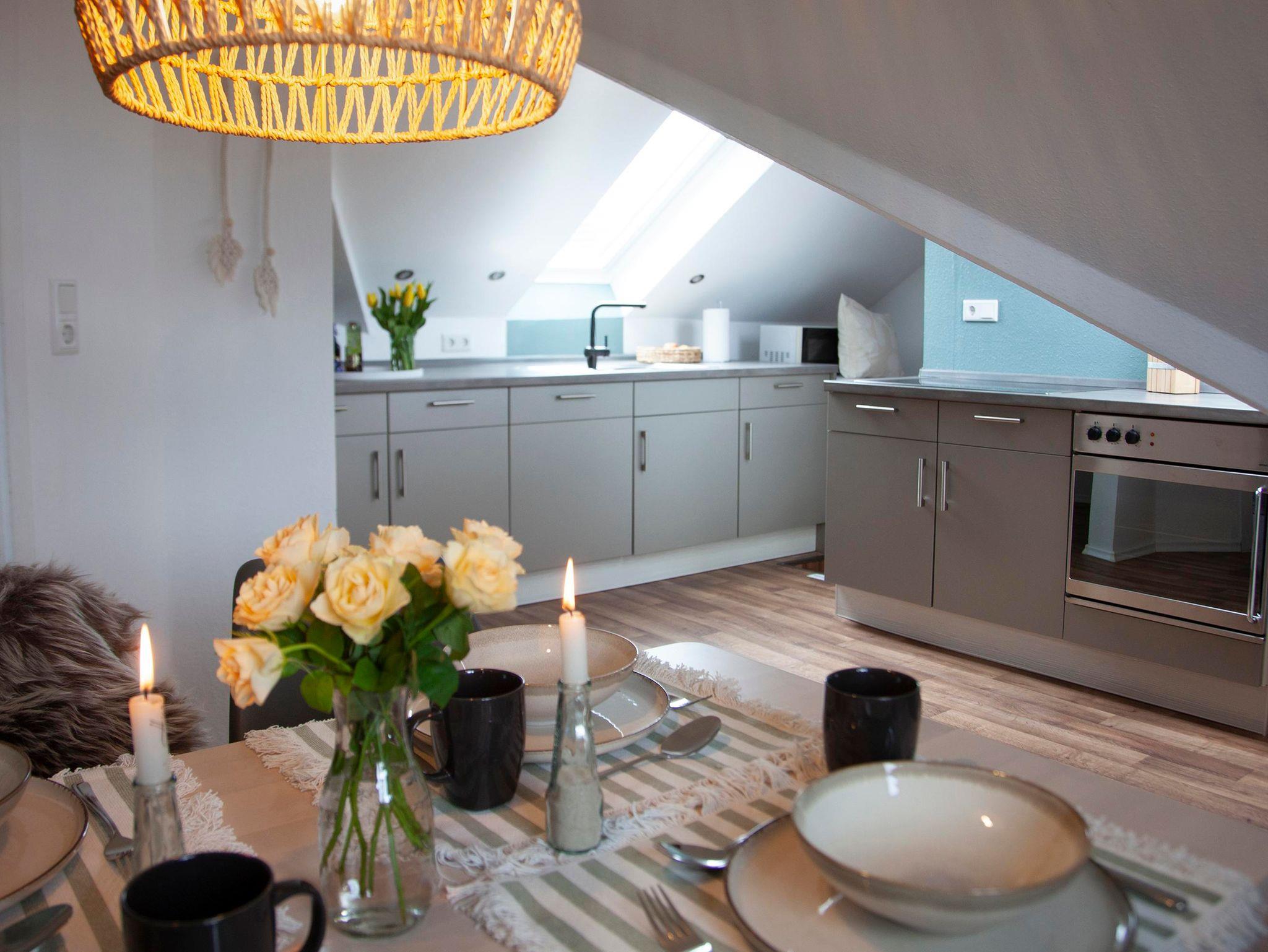 Die Nichtraucherwohnung verfügt über zwei Schlafräumen, einer komplett eingerichteten Küche, Wohnzimmer mit SAT-TV, DVD-Player, Telefon/Flatrate für das deutsche Festnetz sowie Internetflatrate und ein Bad mit Badewanne.