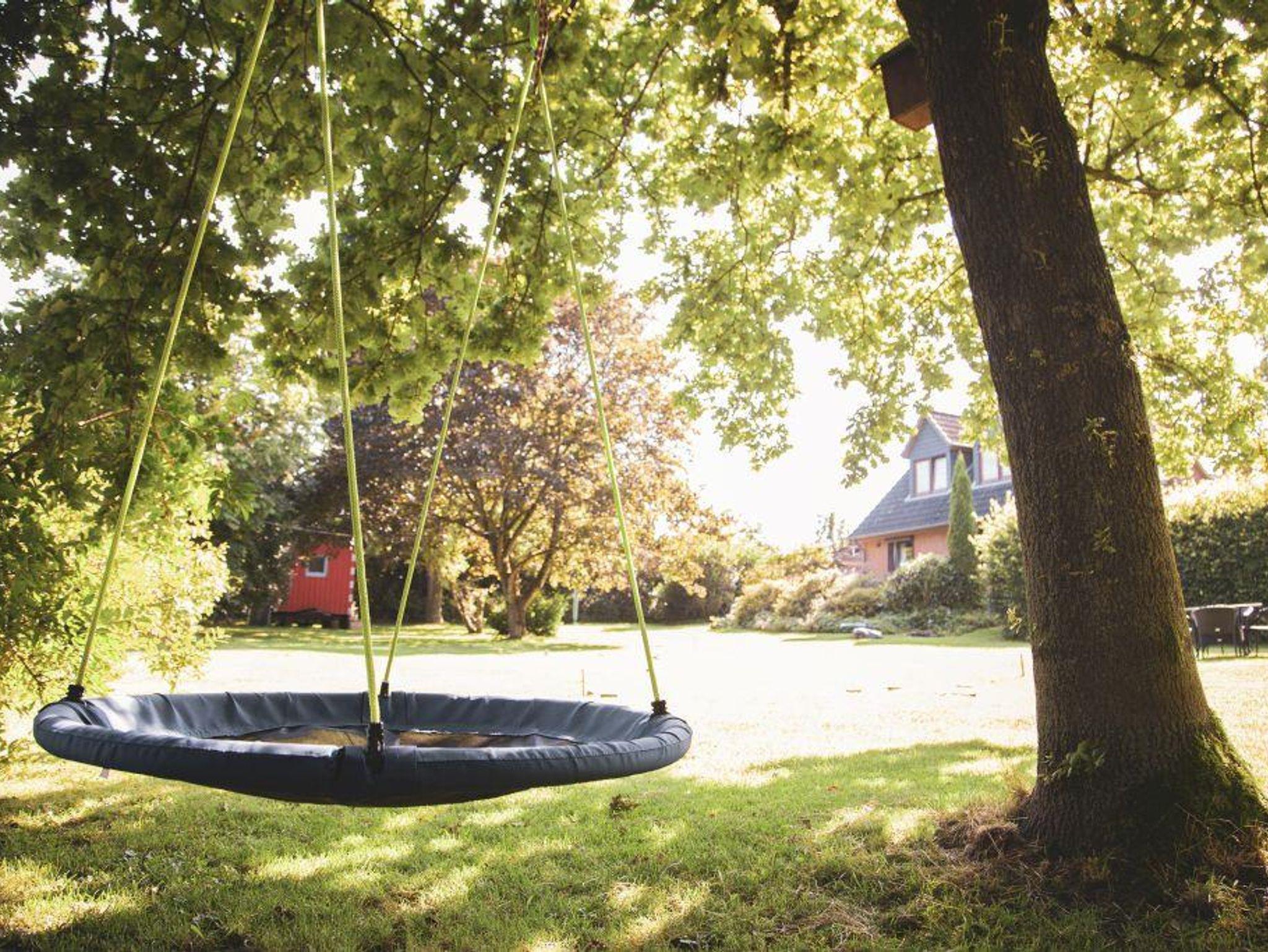 Die moderne, neu eingerichtete Ferienwohnung liegt auf einem großen Grundstück (4.000 qm) mit einer Gartensauna und bietet Erwachsenen sowie Kindern viel Platz zum Erholen und zum Spielen. Für die Kleinen gibt es eine Schaukel und eine Hüpfburg.