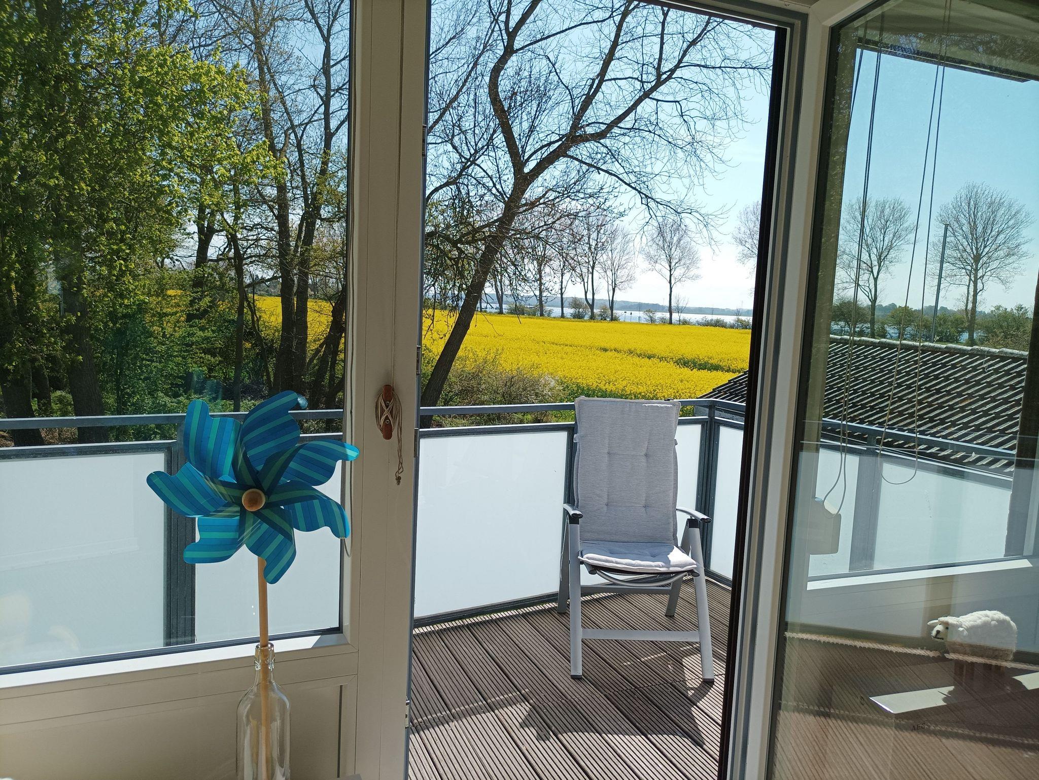 Auf dem Balkon können Sie den Schleiblick genießen.