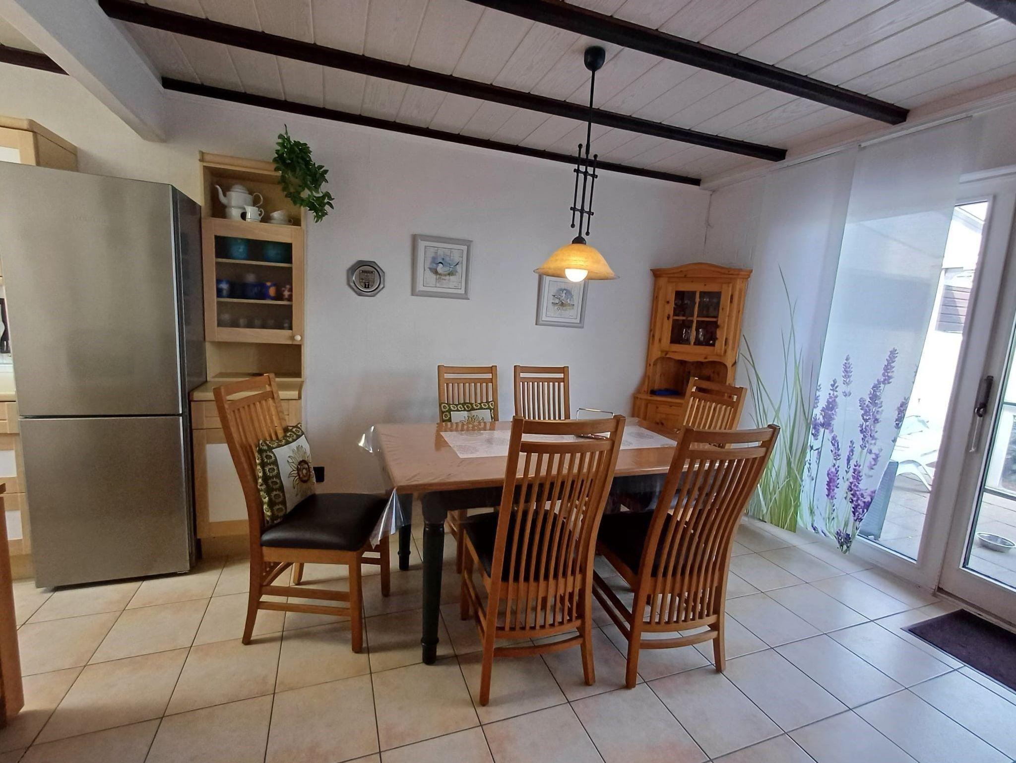 Über einen kleinen Flur im Eingangsbereich erreichen Sie das Wohnzimmer mit Esszimmer. Die bequemen Sitzmöbel sowie ein moderner Flachbild-Fernseher sorgen für Entspannung. Die an das Esszimmer angrenzende Einbauküche ist komplett ausgestattet, so dass das Kochen richtig Spaß macht. Im Wohnzimmer fällt Ihr Blick direkt über die Terrasse, mit Gartenmöbeln in den Garten, dieser lädt zum Verweilen ein. Hier können Sie so richtig abschalten und den Ruheliegen die Tage genießen.