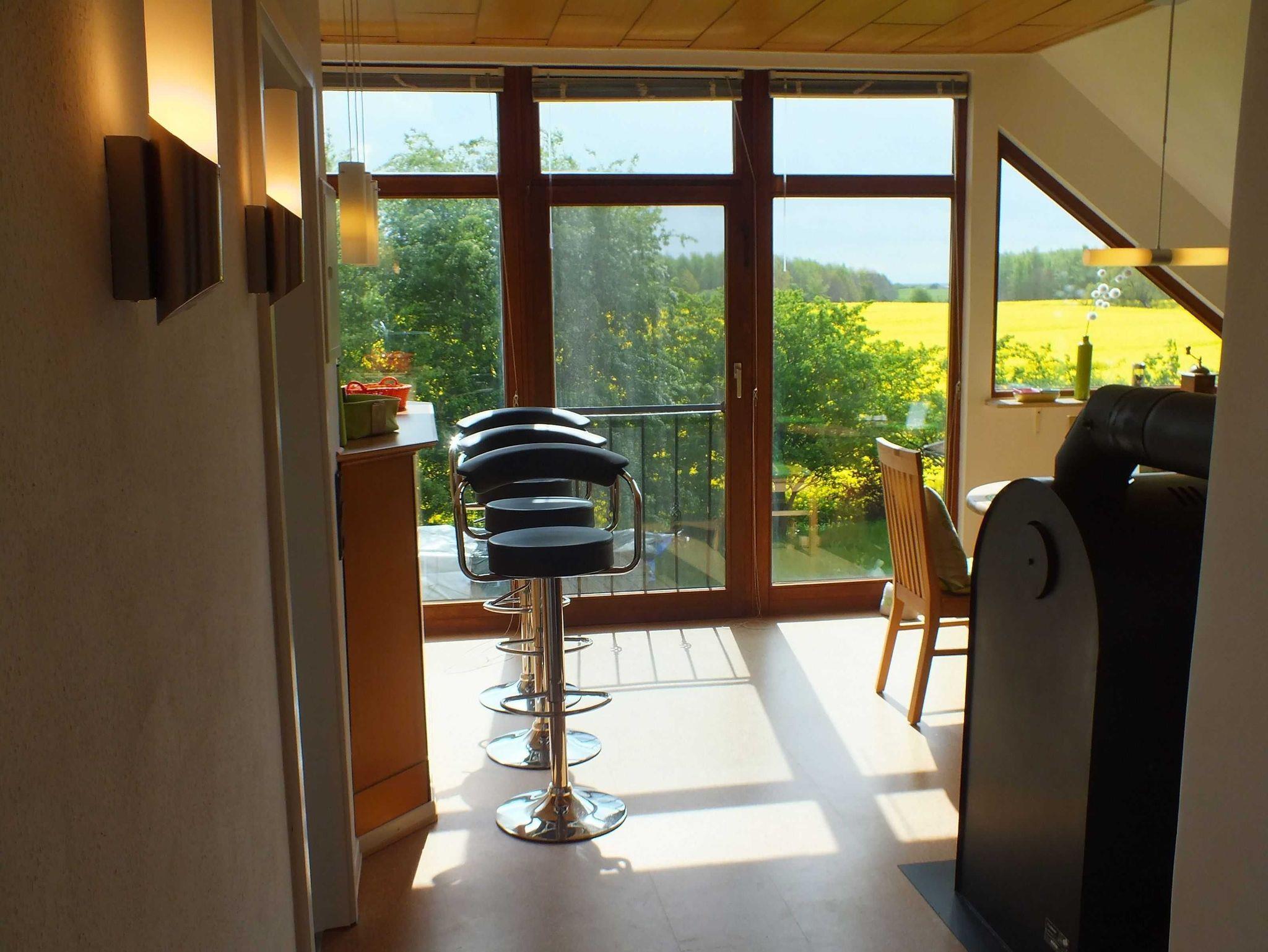 - Wohn-/ Essbereich mit Kaminofen und offener Küche