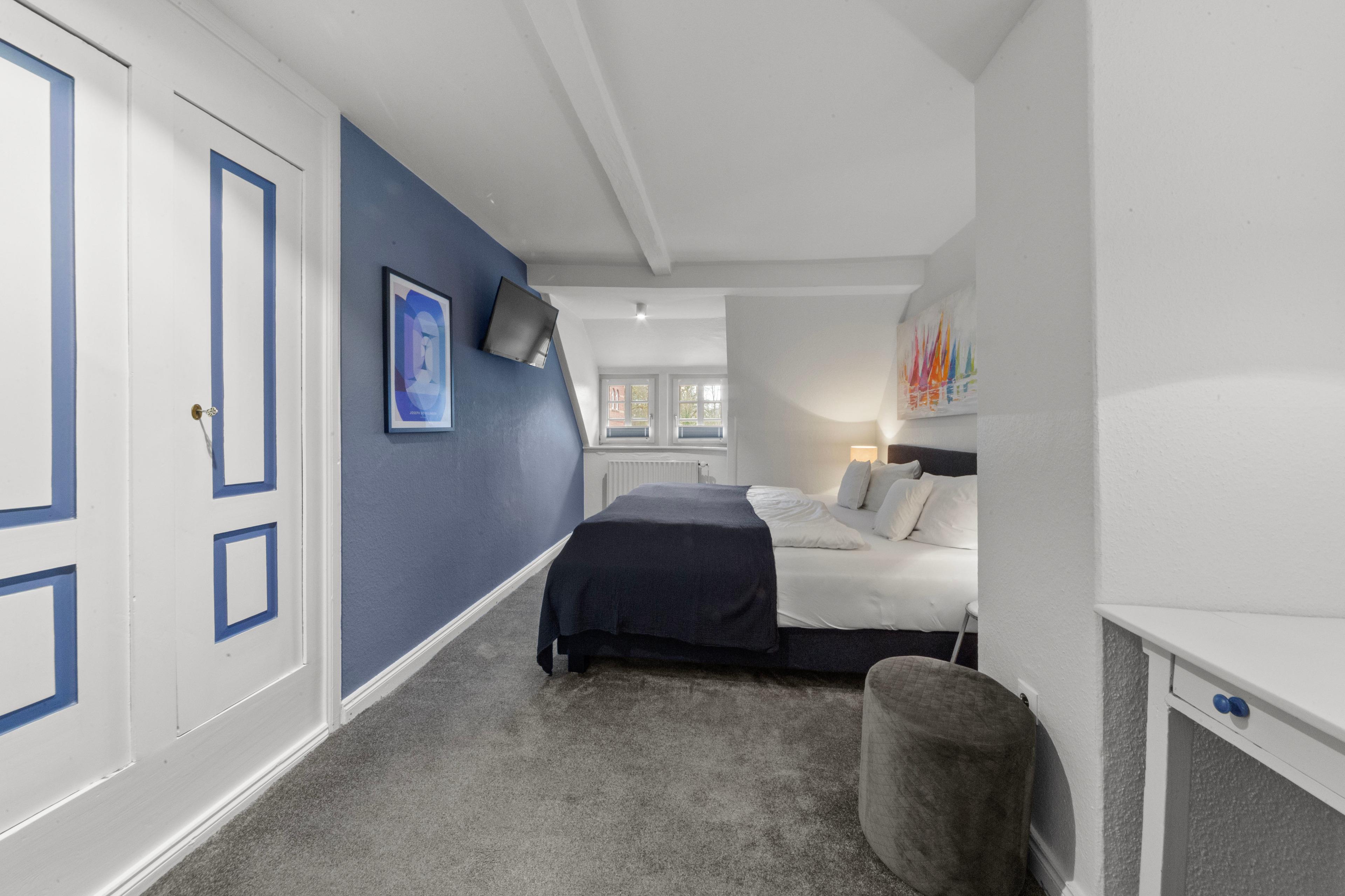 1 Schlafzimmer mit 1x Doppelbett und TV
