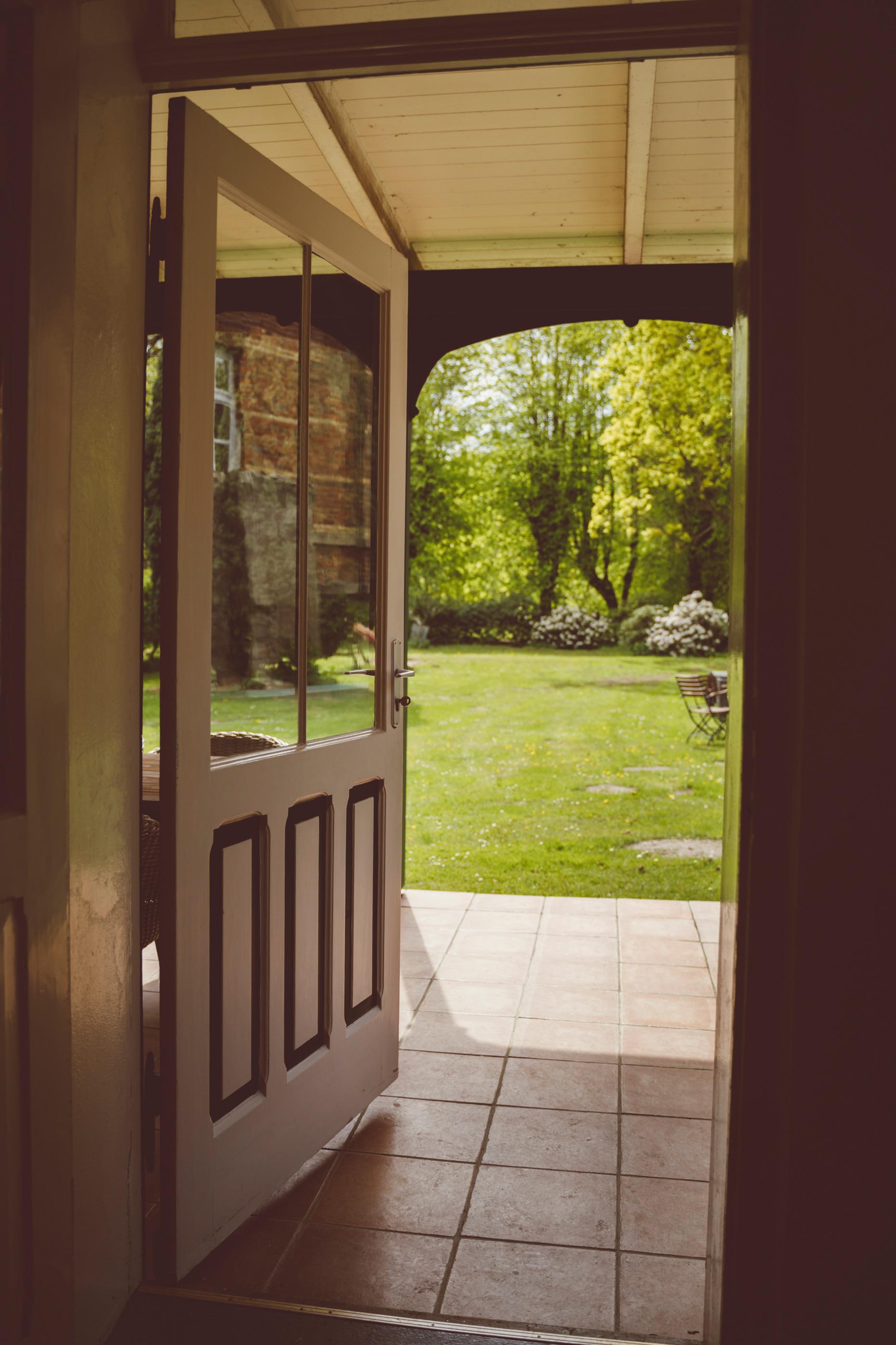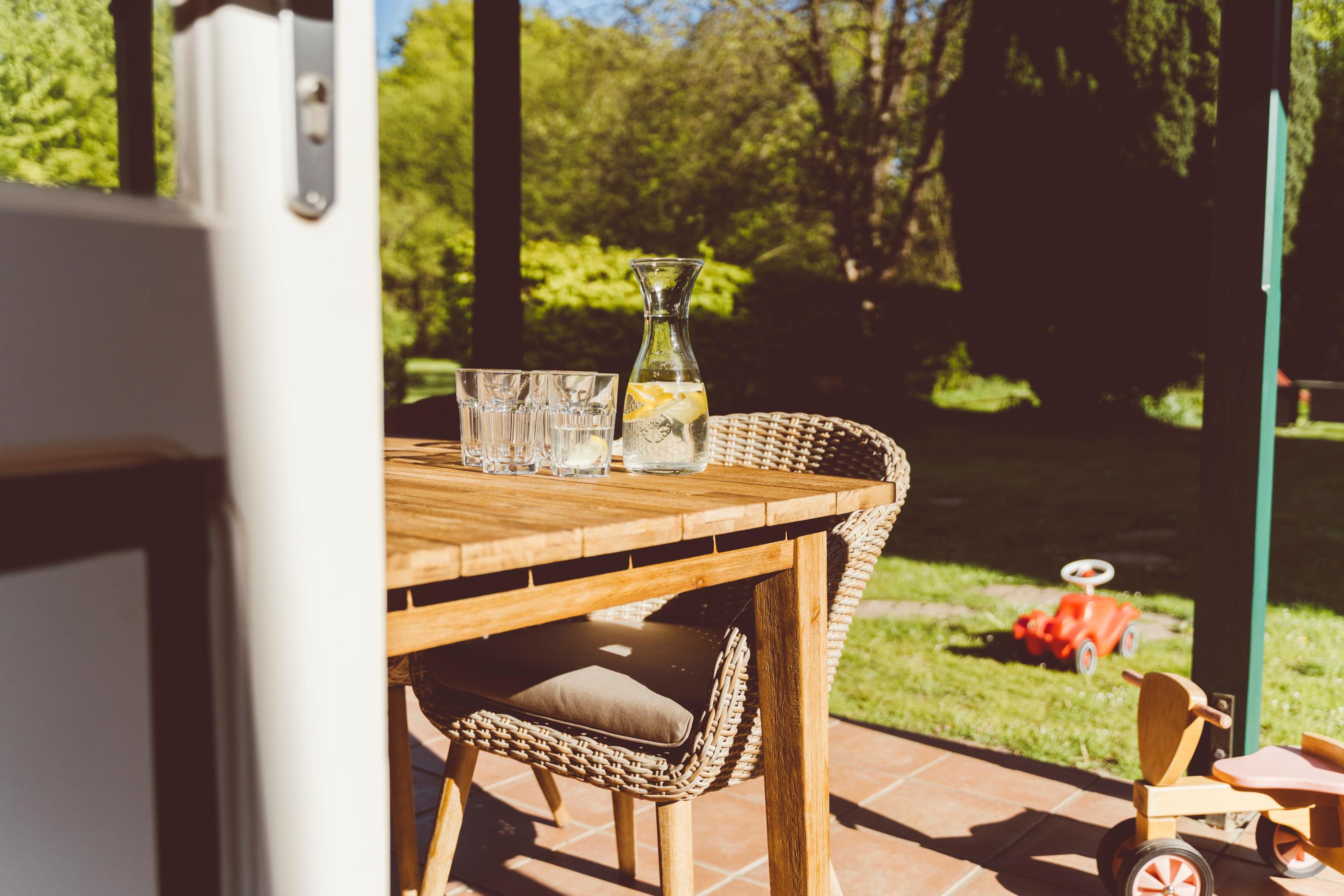 überdachte Terrasse mit Blick in den Park