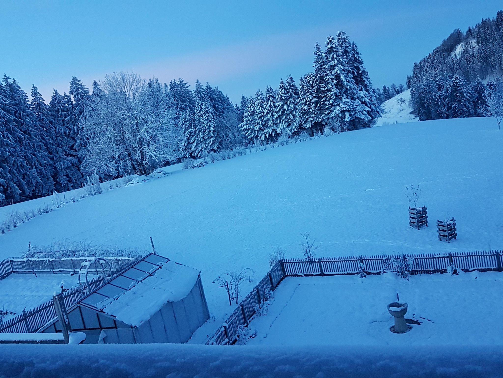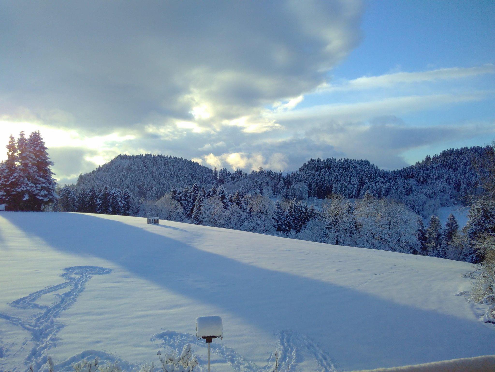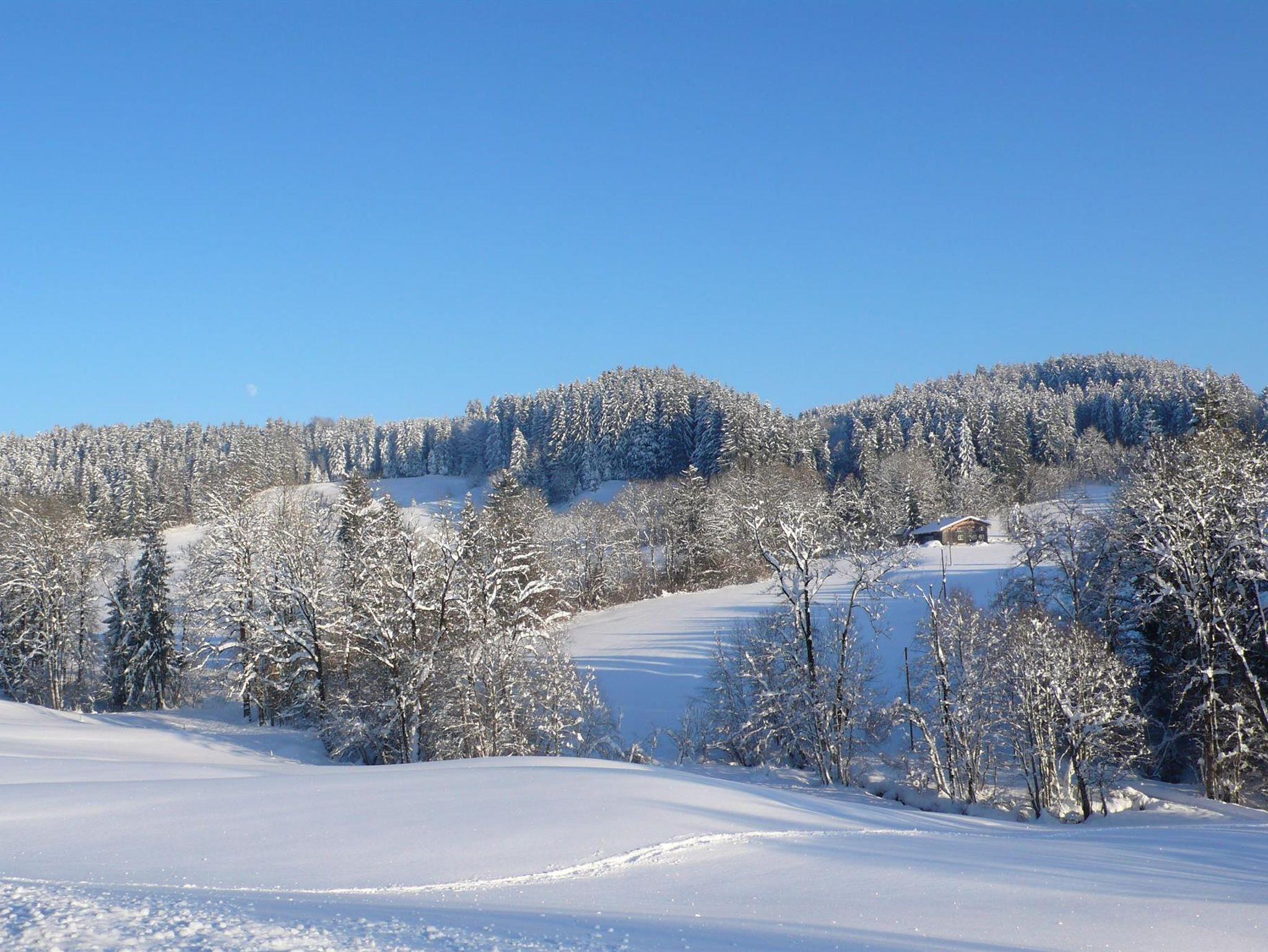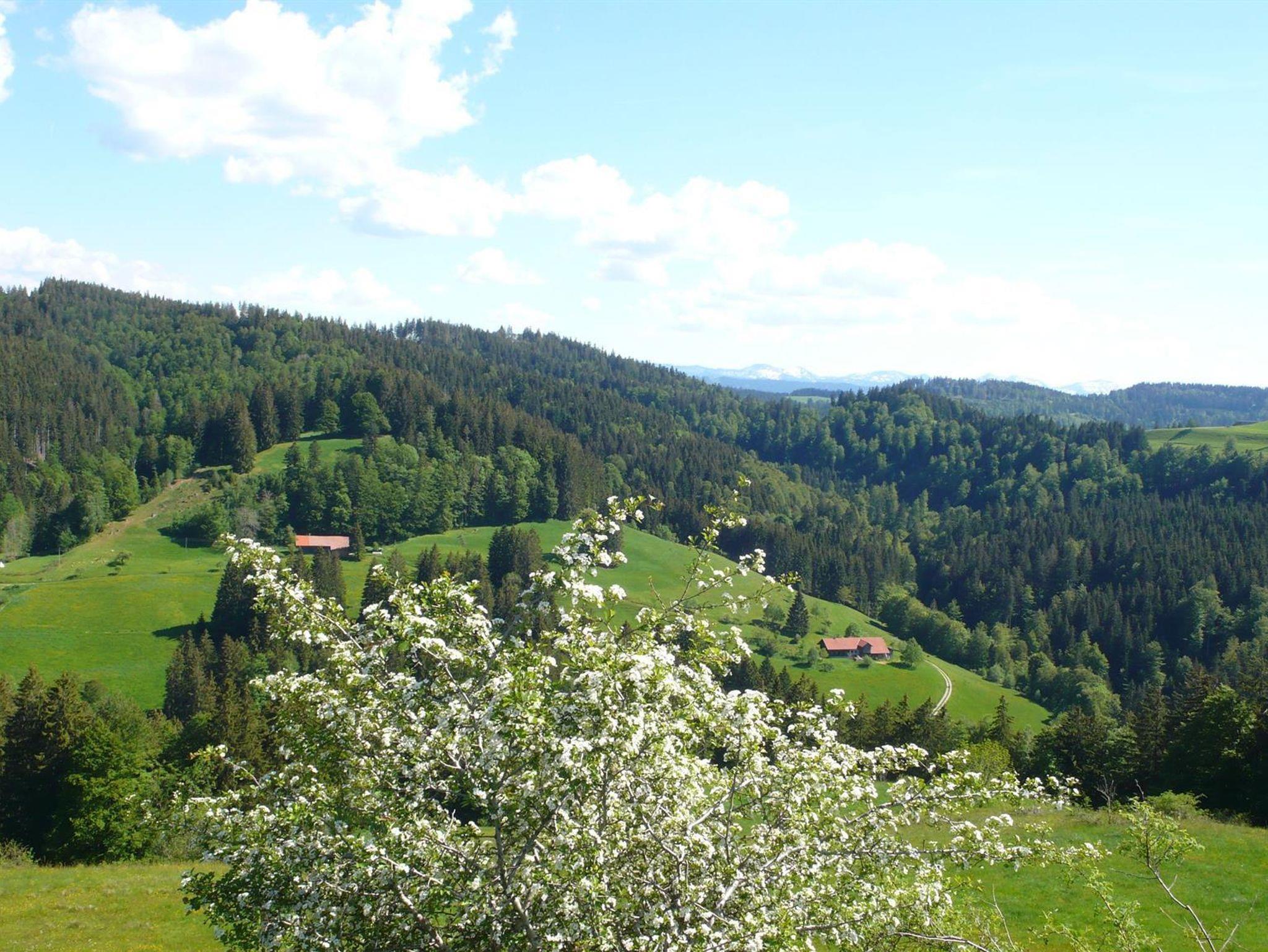 Inmitten von Wiesen, Wäldern und Bergen ist unsere Ferienwohnung ein idyllischer Ort, an dem Sie sorglose Urlaubstage verbringen können.