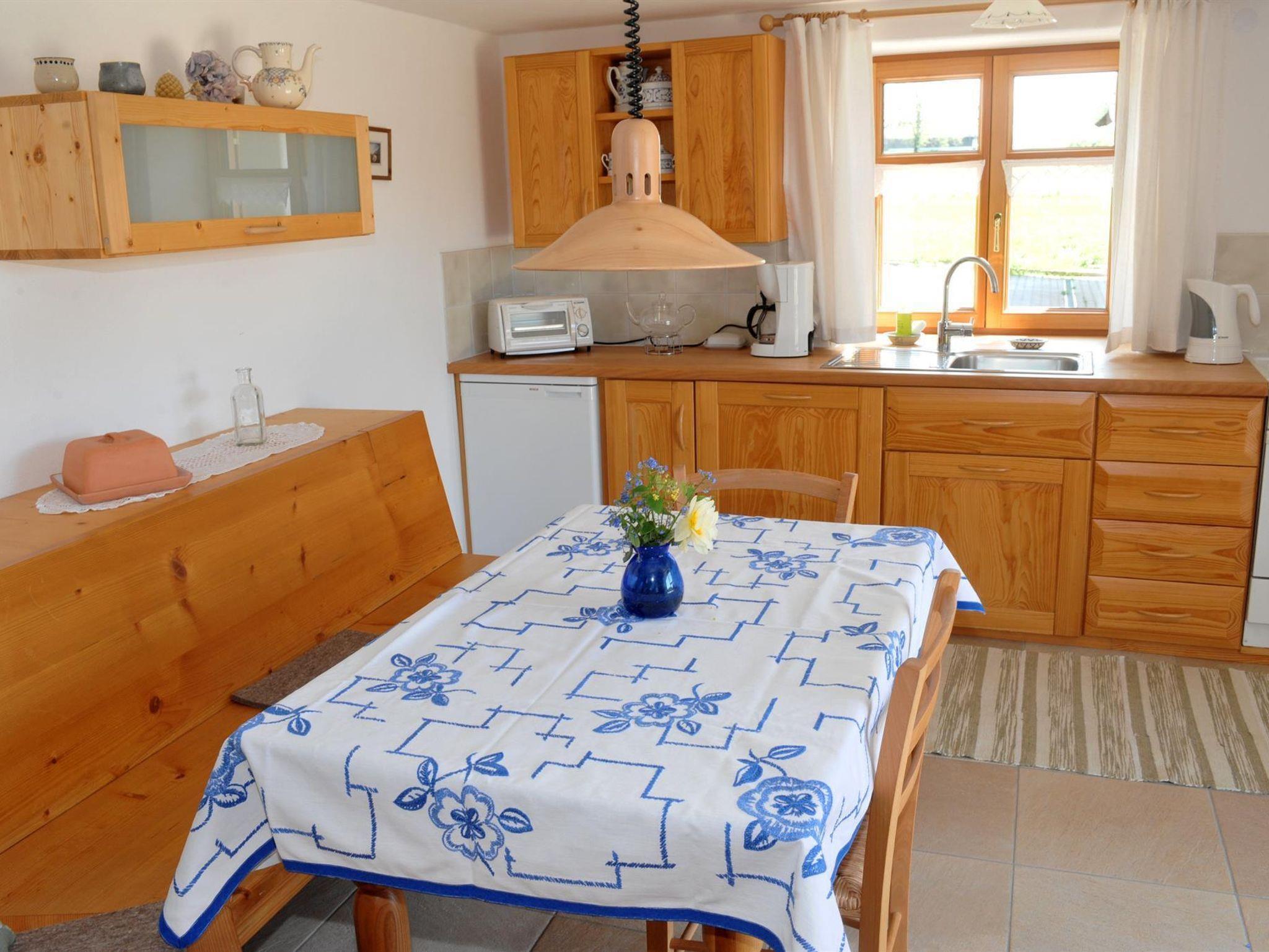 Die 35qm große Wohnküche ist gemütlich, mit einer kleiner Bibliothek, vielen CD`s und Kartenmaterial für Wander-, Radtouren oder persönlichen Ausflugtipps ausgestattet. Bei Buchung erhalten Sie eine ausführliche Inventarliste, die Ihnen Entscheidungen beim Packen erleichtert.