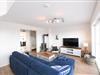 Der bliver hyggeligt i stuen, hvor en hyggelig siddegruppe indbyder til at nyde en aften ved pejsen på dårlige vejrdage. Smart TV med Telekom Home Entertainment-programmet tilbyder også indendørs underholdning.