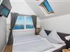 Ferieboligens afslapningsområde er på anden etage. Det store soveværelse har en fantastisk udsigt over havnen. Fald i søvn under stjernerne, et ovenlys giver jer ikke kun mulighed for at se stjernehimlen, men også de drømmeagtige skyformationer, der er så karakteristiske for norden. I det andet soveværelse inviterer to enkeltsenge jer til at drømme.