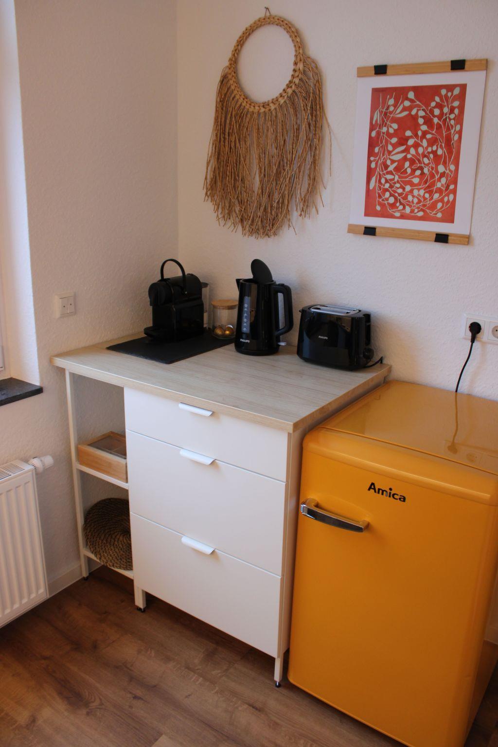 - Wasserkocher inkl. 3 Teesorten und Toaster.