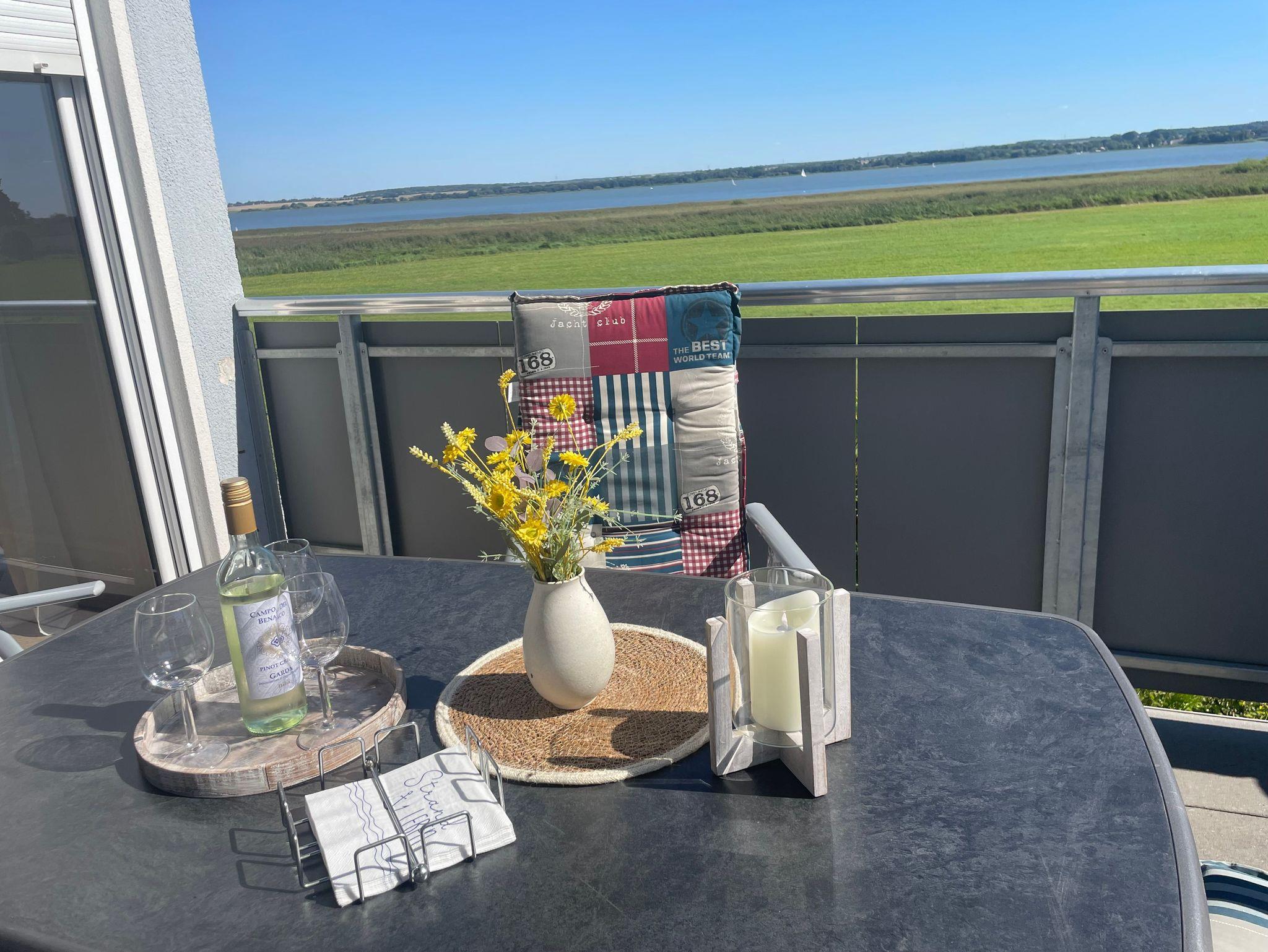 Die großzügige Terrasse mit Seeblick bietet nicht nur Erholung, sondern auch Naturerlebnisse: Mit dem vorhandenen Fernglas können Sie Vögel in ihrem natürlichen Lebensraum beobachten.