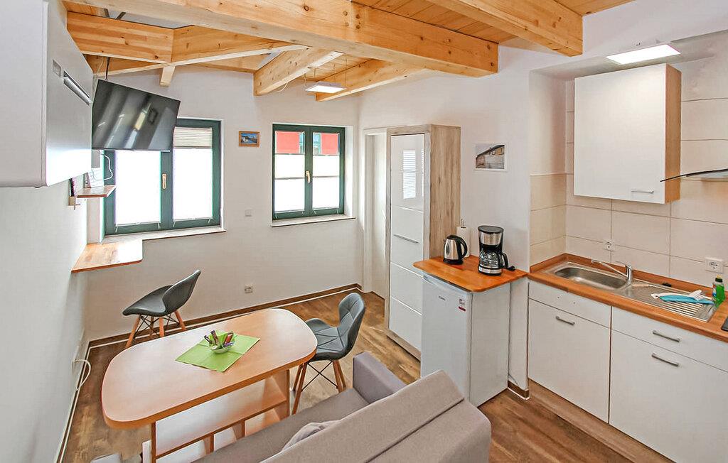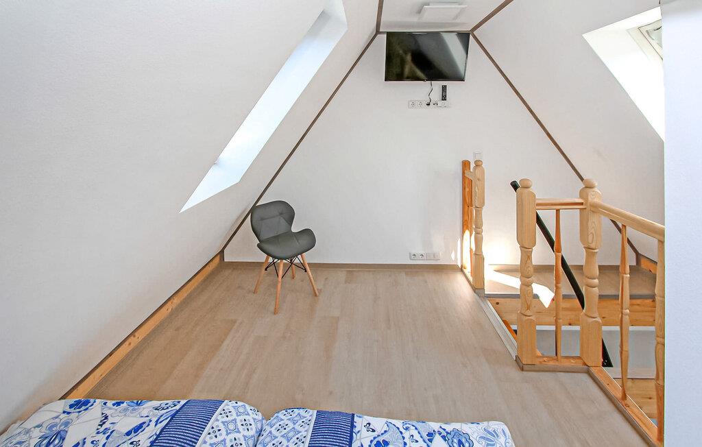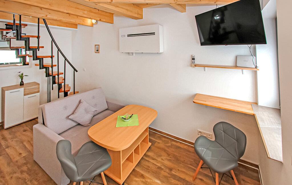 Denne lejlighed ligger på første sal. Det har et opholdsområde (polstrede møbler, skrivebord, smart-tv), et åbent soveområde på loftet med en dobbeltseng og tv (adgang via en stejl, pladsbesparende trappe), et åbent tekøkken (elkomfur, køleskab, spisestue). område, diverse køkkenmaskiner) og et badeværelse med brus/toilet. Der er også moderne aircondition, automatiske vinduer, gratis trådløs internetadgang og et internetaktiveret smart-tv.