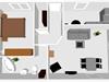 Stueetage: (entre, Køkken(kogeplade, elkedel, brødrister, kaffemaskine, mikrobølgeovn, køleskab, fryser), stue / spisestue(enkeltsovesofa, Fjernsyn, spisebord, radio), soveværelse(dobbeltseng), badeværelse(badekar, håndvask, toilet, føntørrer, Håndklæder inkl.), pulterkammer) terrasse, havemøbler, parkering, dam, Parasol, strygebræt, strygejern