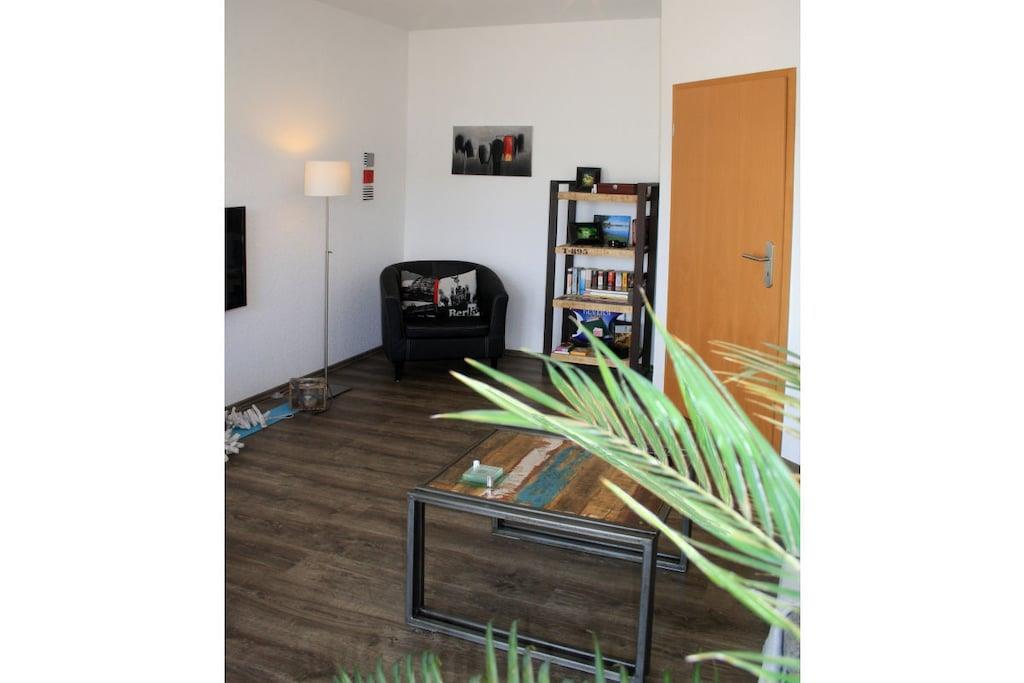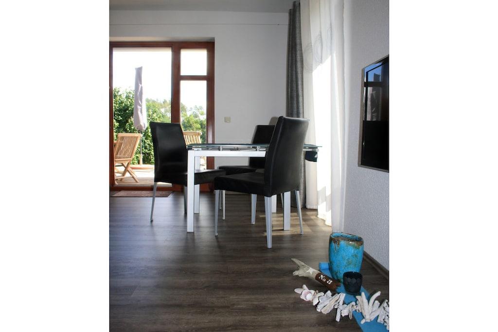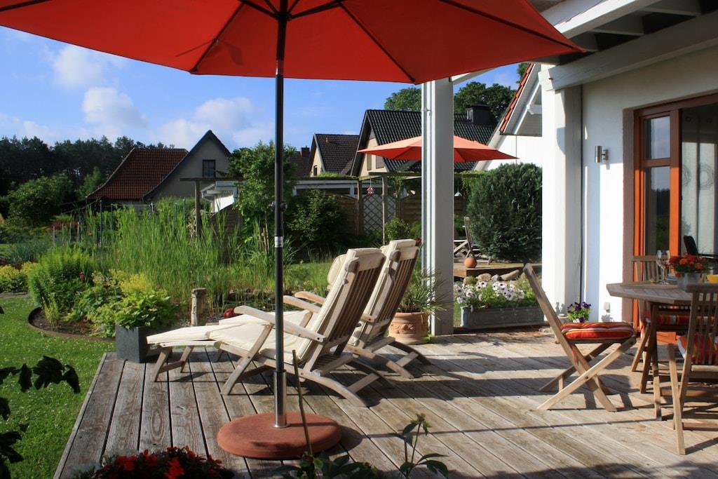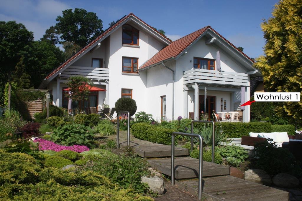 Moderne design, beroligende farver og specialfremstillede billeder skaber en feel-good atmosfære, hvor du straks føler dig ankommet og hjemme. Lejligheden i den rolige udkant af Malchow har egen parkeringsplads, terrasse og indgang. Med den store terrasse vender den ud mod haven og enge. Møbler af høj kvalitet med attraktive funktioner tilbyder alle bekvemmeligheder ved en moderne livsstil for 2 voksne. Haveområdet med liggestole og dam inviterer dig til at blive hængende. Bagerst i haven er der en strandstol, hvor du kan slappe af og lade blikket vandre. En Ruf-seng af høj kvalitet sikrer en fredelig søvn.