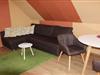 I træder ind i den nyindrettede ferielejlighed via en separat udvendig trappe med tilhørende tagterrasse og egen indgang. I stuen er der spisebord med 2 stole, sovesofa og smart-tv samt radio. Soveværelset har en dobbeltseng (160cm x 200cm) med natborde og et klædeskab. Køkkenet er udstyret med køleskab, keramisk kogeplade, vask, opvaskemaskine, mikroovn, kaffemaskine, brødrister, elkedel, æggekoger, service og bestik. Et stort brusebad, et toilet og en håndvask med spejl samt en lille gang er også i lejligheden. En parkeringsplads under en carport er tilgængelig. To cykler og internetforbindelse kan benyttes gratis.