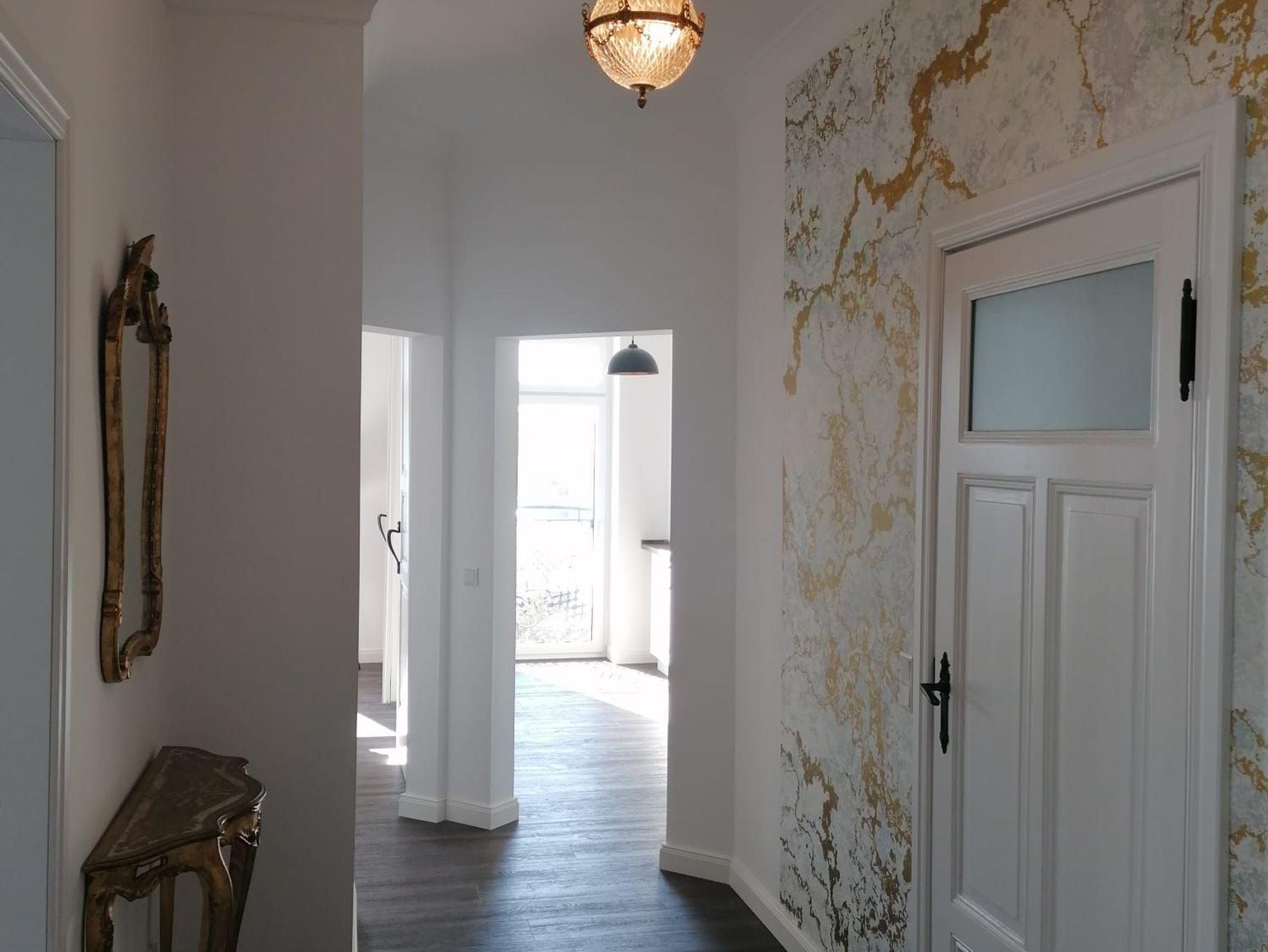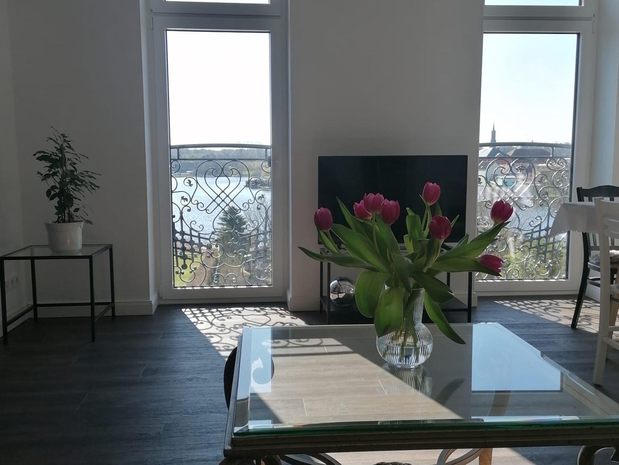 Die modern eingerichtete Ferienwohnung befindet sich im 1. OG eines Mehrfamilienhauses, welches z. T. vermietet ist. Der anliegende Garten ist von der Nutzung ausgenommen. Die Ferienwohnung ist 84m² groß sowie voll ausgestattet und verfügt über eine offene Küche, die auch abgetrennt werden kann (Schiebetür). Das gemütliche Wohnzimmer ist mit einem Kamin und Flachbildschirm ausgestattet, wobei noch das Lesezimmer zu erwähnen ist. Vom Wohnzimmer aus hat man einen traumhaften Blick auf den Malchower See, sowie die Malchower Insel. Das Schlafzimmer verfügt über ein Doppelbett (180 cm x 200 cm), Schrank und Sitzmöglichkeiten. Wäschepaket ist inklusive. Alle Räume sind mit elektrischen Rollos ausgestattet und verfügen über WLAN. Parkmöglichkeiten befinden sich vor der Tür, können jedoch nicht reserviert werden. Ihre Fahrräder können Sie vor dem Haus im Fahrradständer abstellen. Ein kleiner Balkon, der über den Hausflur zu erreichen ist, runden das Bild der modernen Wohnung ab. Gleich neben der Unterkunft befindet sich ein öffentlicher Zugang zur Wasserstraße mit einer Bank zum Verweilen. Ein Spielplatz (0,9 km entfernt) sowie Bootsverleih (0,9 km entfernt) finden Sie im Ort. Die Wohnung ist nach Qualitätskriterien der DTV- Klassifizierung mit 5 Sternen ausgezeichnet.