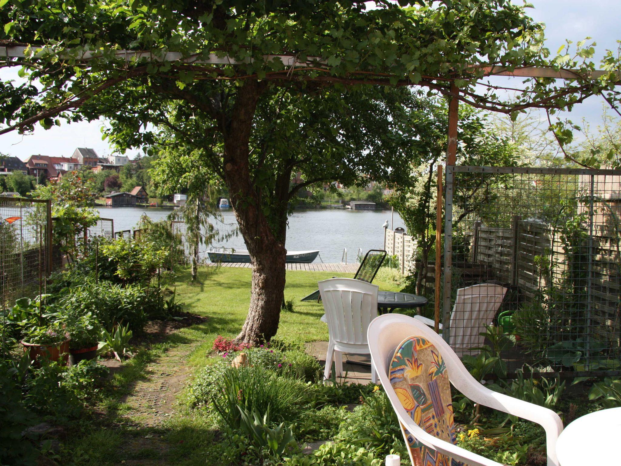 Hochwertig ausgestattetes Ferienhaus in schöner Altstadtlage im Garten am See mit zwei Schlafräumen, für bis zu vier Personen. Terrasse, Liegewiese, Bademöglichkeit. Liegeplatz für Gast-Boot und und Mitbenutzung eines Ruderbootes nach Absprache möglich. Ebenerdig befindet sich der Wohnbereich mit Küchenzeile sowie das Bad mit Dusche und WC. Über eine Treppe gelangt man auf eine Empore und zu den beiden Schlafräumen, eines mit Doppelbett, das Andere mit einem 1,40 m breiten Bett .
