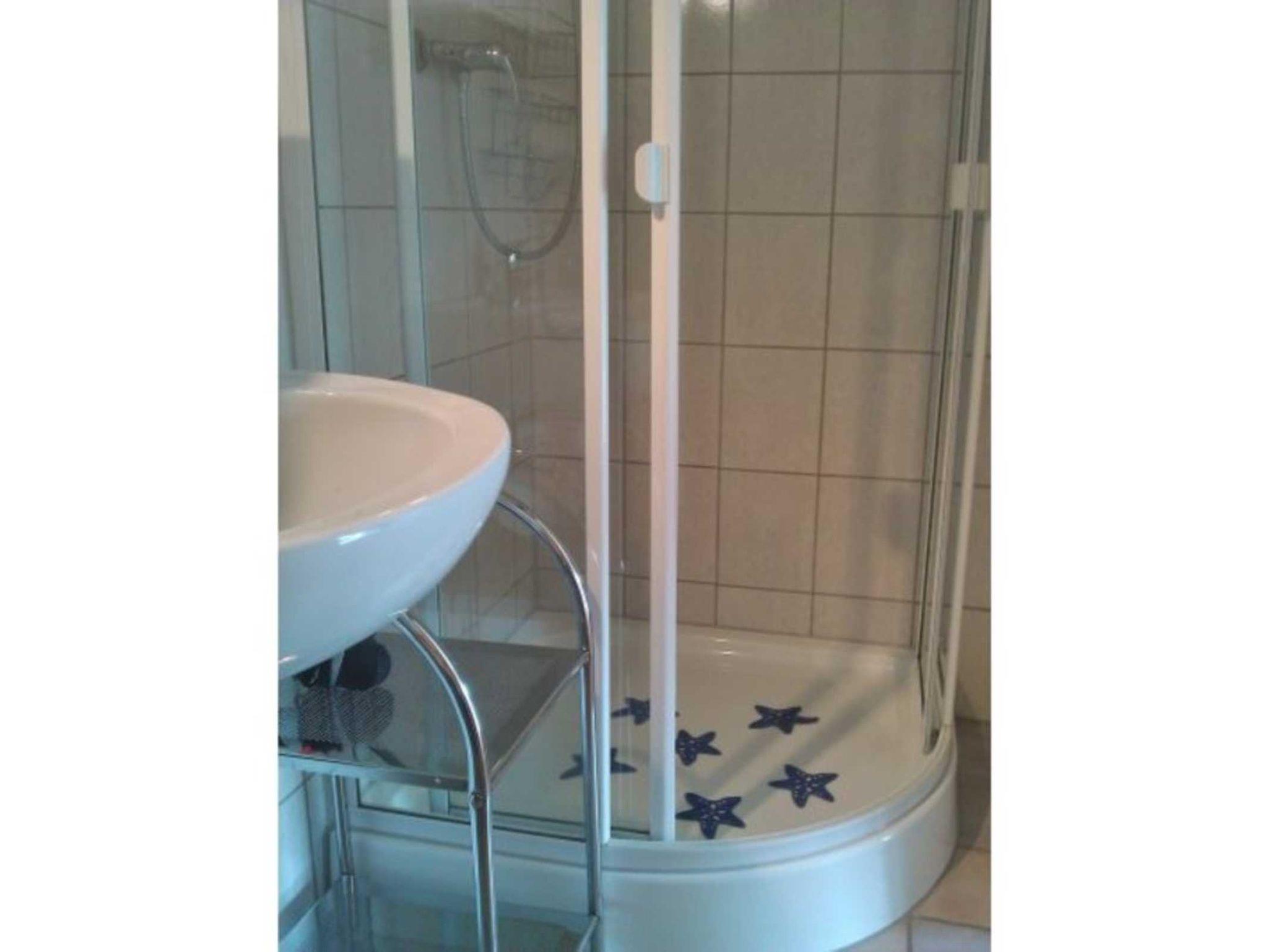 Im Erdgeschoß befindet sich die offene Küche mit Sitzgruppe, sowie das Duschbad. Die obere Etage besteht aus Wohnbereich und Schlafzimmer. Die Schlafmöglichkeit für die 3. Person befindet sich im Schlafzimmer (transportables Bett) oder im Wohnzimmer (Schlafliege). Zur Wohnung gehört eine Terrasse mit Grillkamin und eine Liegewiese. Für ihr Fahrzeug steht ein umzäunter Parkplatz zur Verfügung.