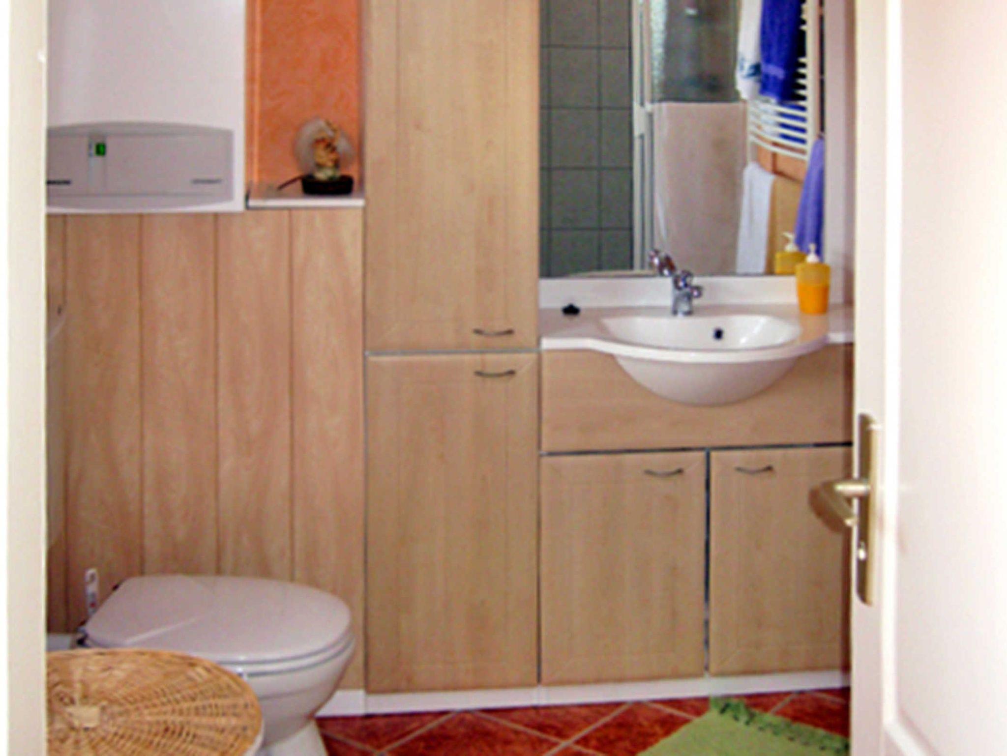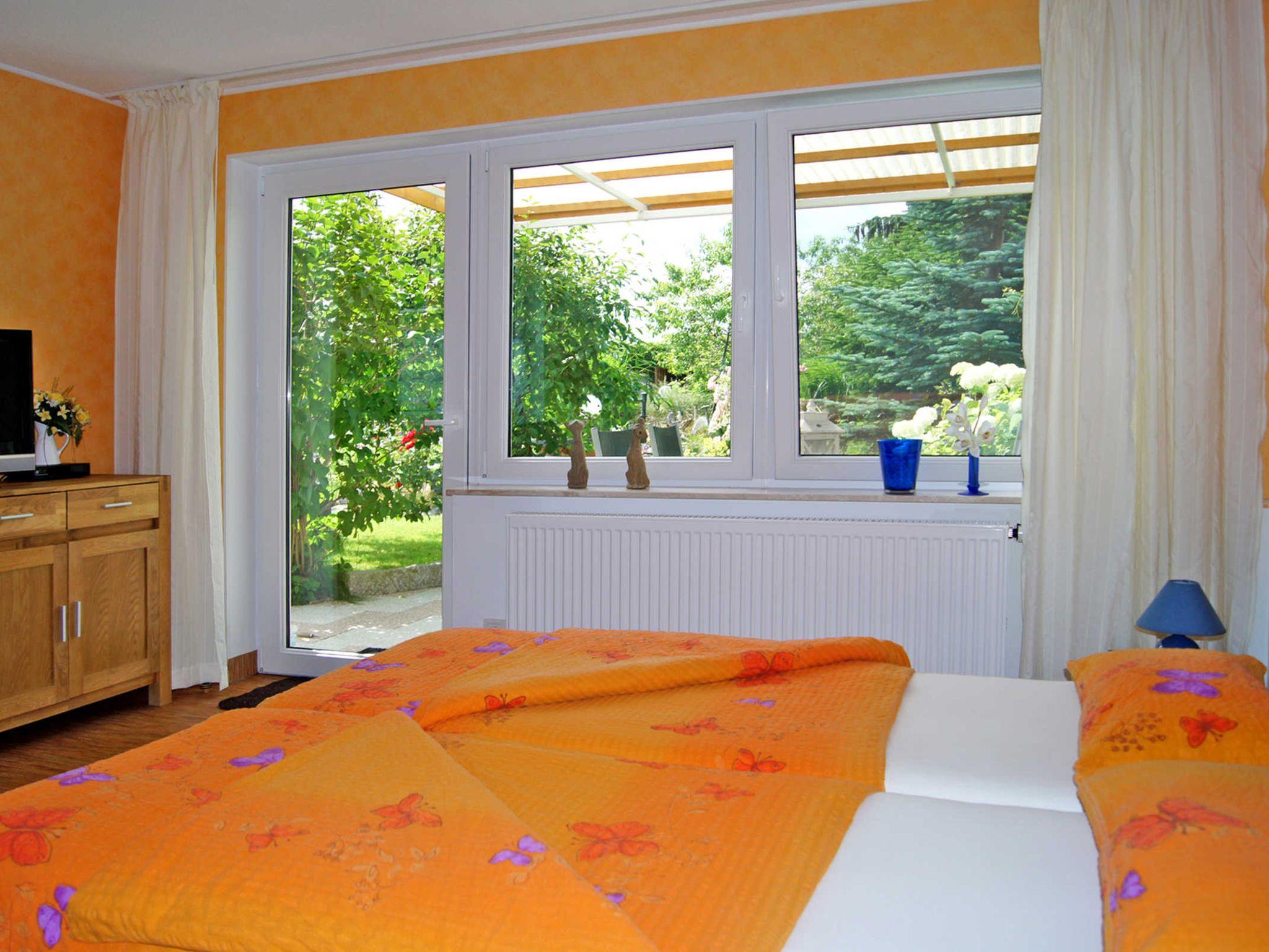 Vom Wohnzimmer geht es in das erste kleine Schlafzimmer und von dort geht es in das große Schlafzimmer mit Terasse. Das erste Schlafzimmer ist mit einem Doppelbett (160x200), zwei Nachtschränken und Kleiderschrank ausgestattet. Das zweite, sehr geräumige Schlafzimmer verfügt über Doppelbett (180x200), Nachtschränke, zwei Sessel und Anrichte mit TV.