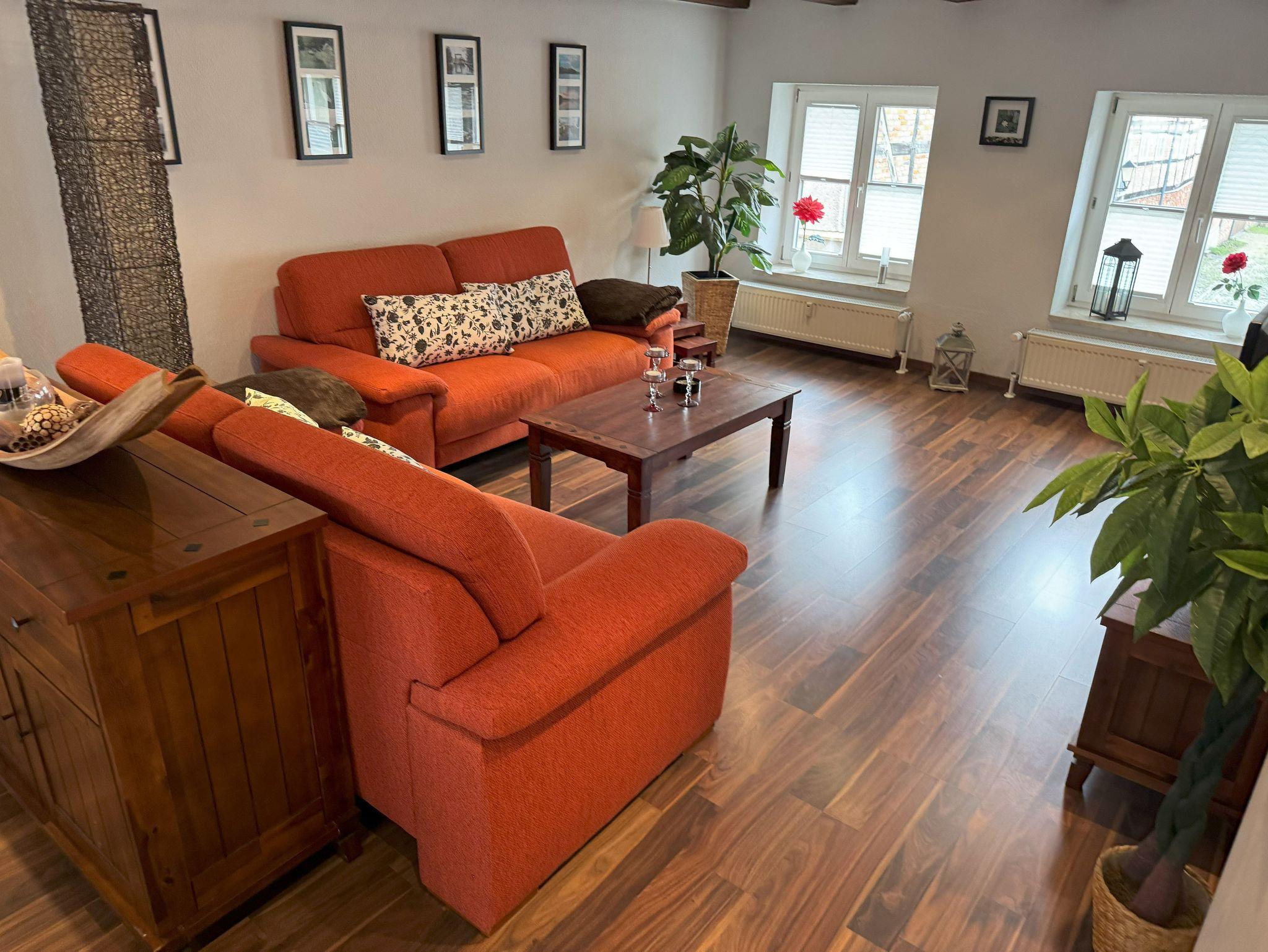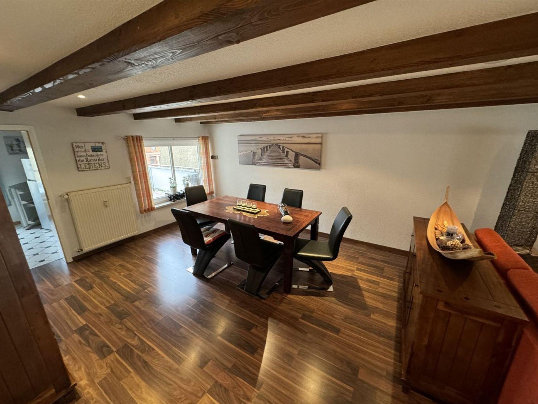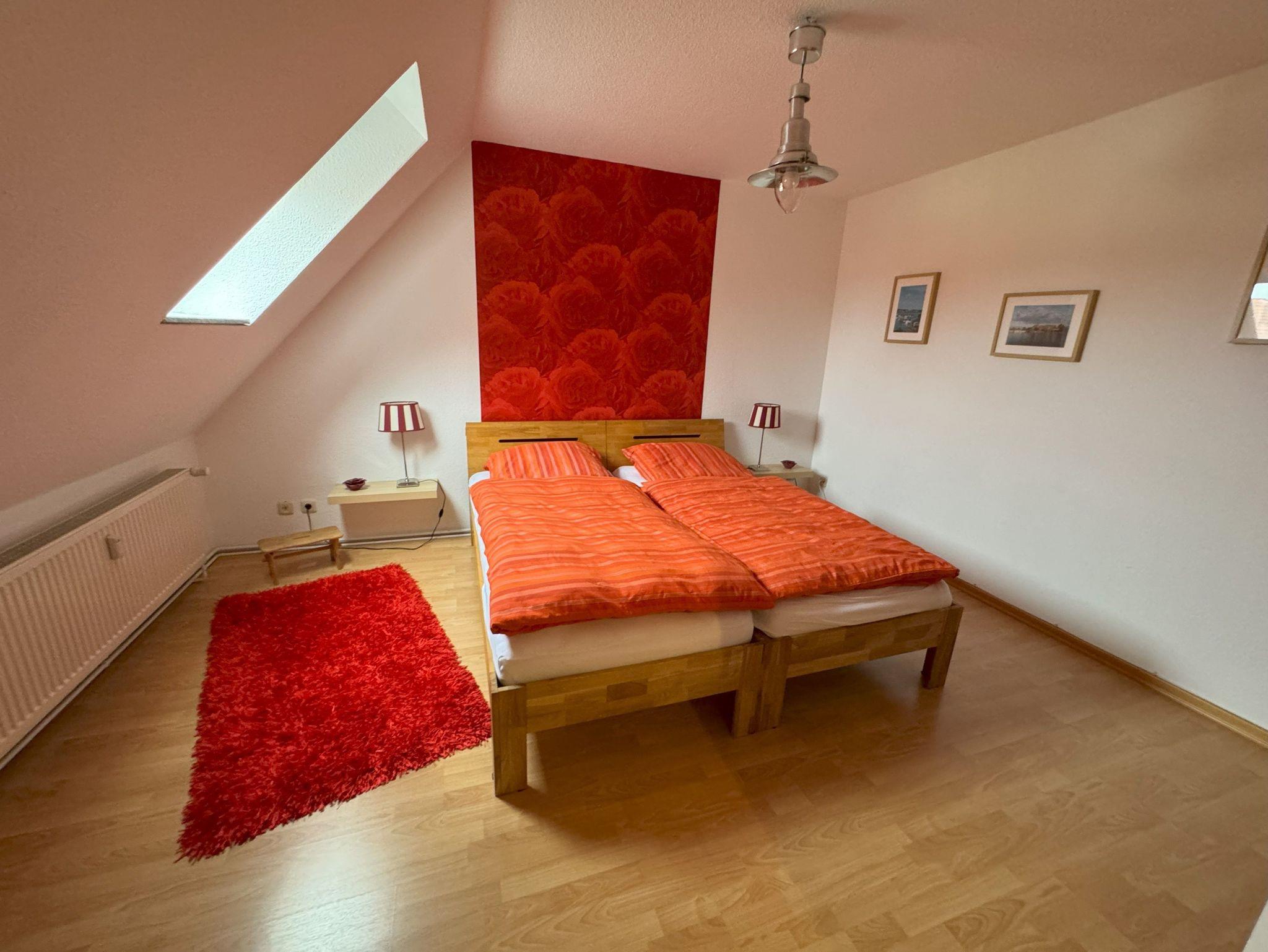 Die Ferienwohnung verfügt über zwei komfortable Schlafzimmer. Ein Schlafzimmer ist mit einem Doppelbett ausgestattet, das bei Bedarf auch getrennt werden kann, während das zweite Schlafzimmer zwei Einzelbetten bietet. Der offene Wohn- und Essbereich schafft eine helle und freundliche Atmosphäre und grenzt direkt an den Balkon an. Das Badezimmer ist mit einer Dusche und einem WC ausgestattet. Zusätzlich steht ein separates Gäste-WC zur Verfügung, was den Wohnkomfort abrundet.