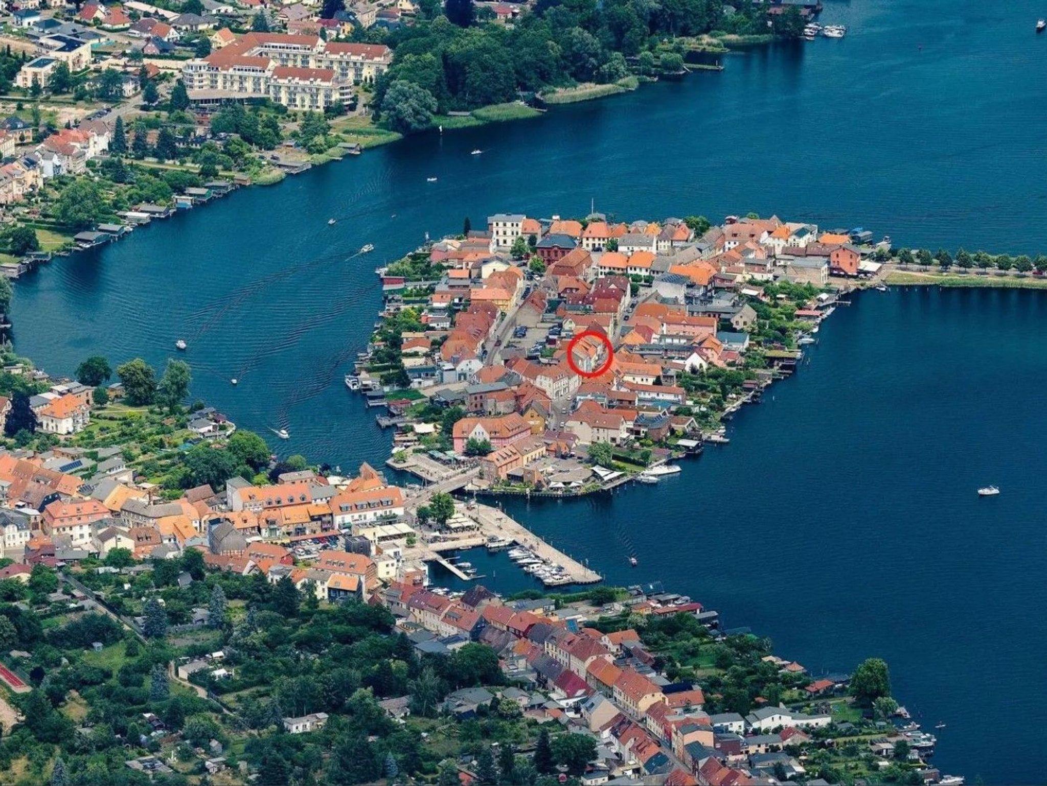 Das Inseldomizil Melina befindet sich in zentraler Lage direkt auf der Insel in Malchow und liegt im 1. und 2. Obergeschoss eines gepflegten Doppelhauses. Ein gemütlicher Balkon lädt zum Verweilen im Freien ein und bietet einen angenehmen Platz für entspannte Stunden. Für Gäste steht ein Parkplatz direkt hinter dem Haus zur Verfügung. Zudem gibt es eine praktische Abstellmöglichkeit für Fahrräder, so dass Ausflüge in die Umgebung bequem gestartet werden können.