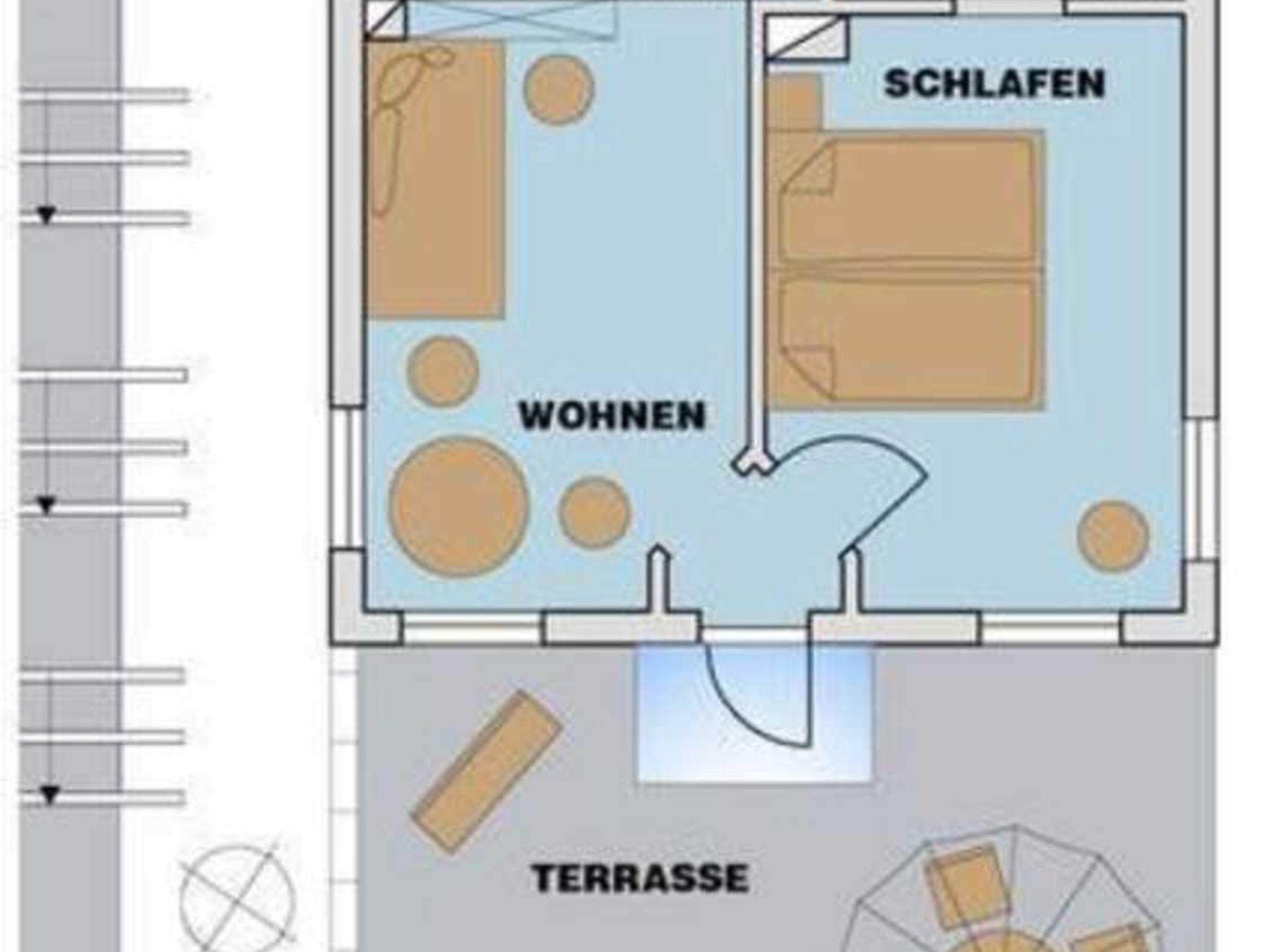 Die 30 qm große Ferienwohnung verfügt über ein Wohnzimmer mit elektrischen Kamin, einem Schlafzimmer, Bad und Pantryküche. Die eigene Terrasse lädt zum Grillen und Entspannen ein.