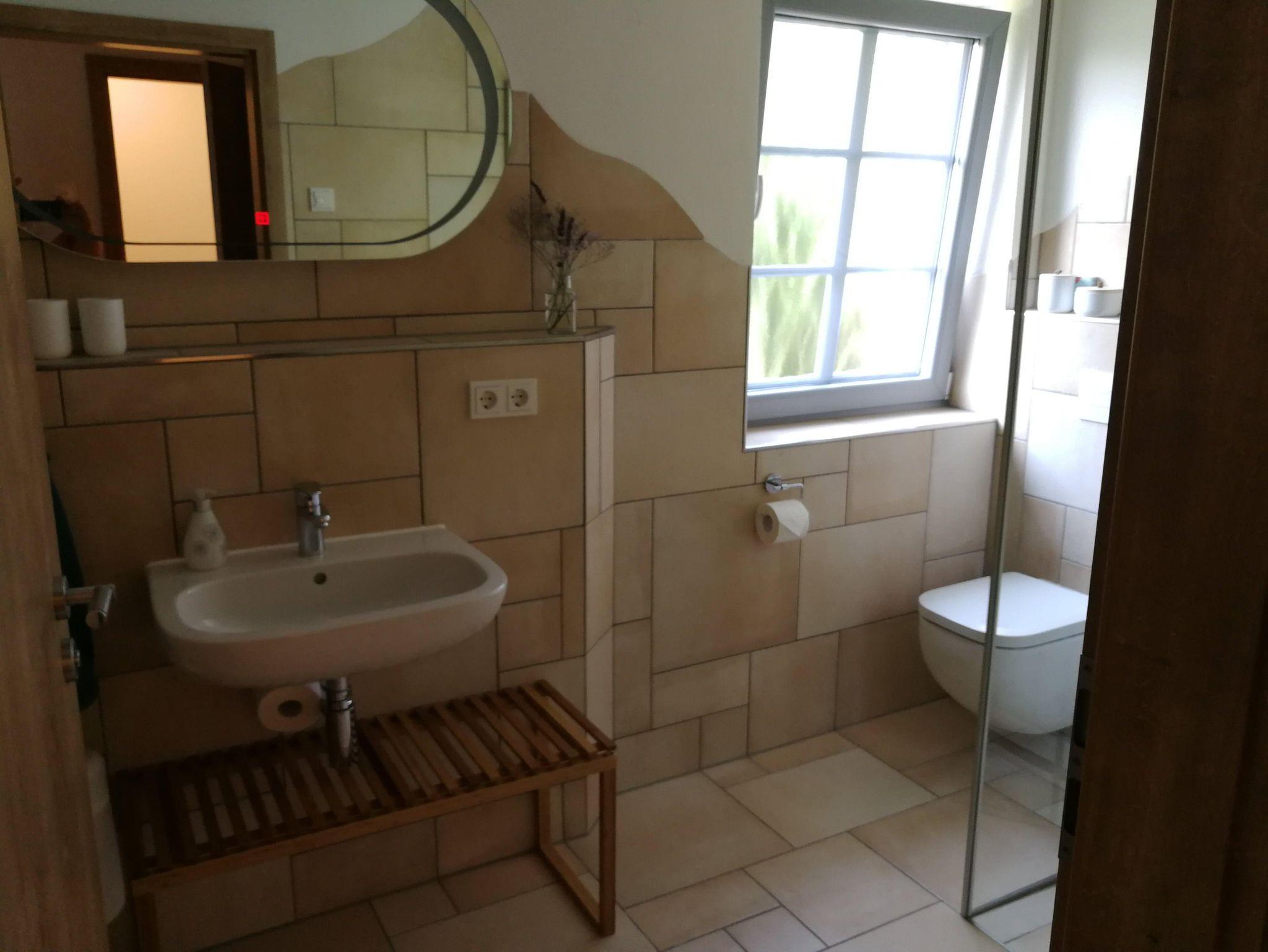 Die 5 Sterne FeWo Landblick bietet Ihnen auf ca. 90 qm 3 Schlafzimmer mit Doppelbett 1800 x2000 inkl. Bettwäsche/ Handtücher und jeweils separat dazugehörigem Bad mit Fenster für bis zu 8 Personen, 1 Küche sowie ein Wohnzimmer. Erreichbar ist sie über eine Außentreppe sowie einen Plattformlift.