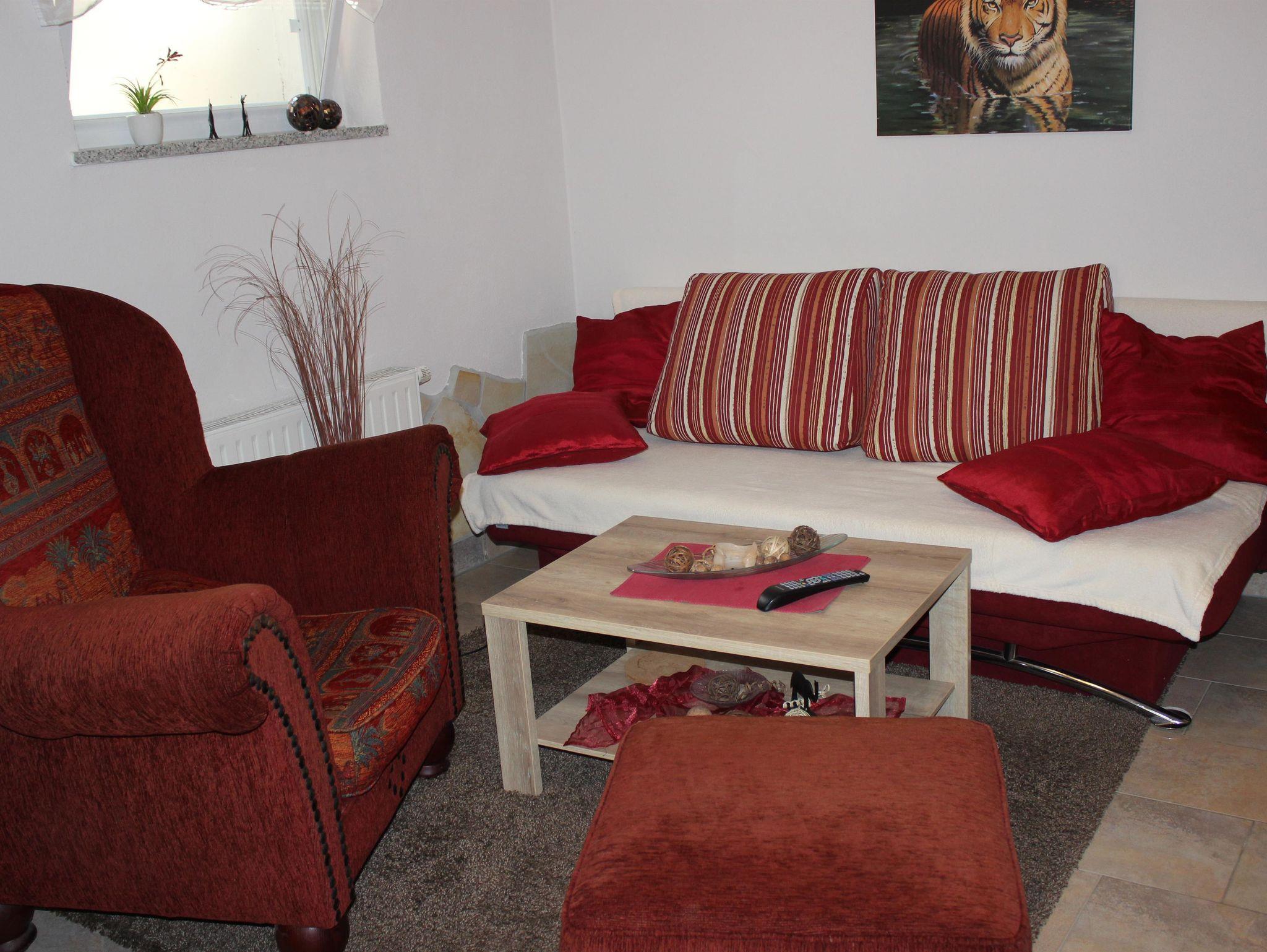 Diese gemütlich eingerichtete Ferienwohnung bietet auf rund 54 m² ausreichend Platz für bis zu 5 Personen und ist damit ideal für Familien geeignet. Das großzügige Wohnzimmer mit Kamin, TV und Radio lädt zu entspannten Stunden ein, während die voll ausgestattete Küche mit Ceran-Kochfeld und Backofen zum gemeinsamen Kochen einlädt. Im Badezimmer stehen Dusche und WC zur Verfügung.