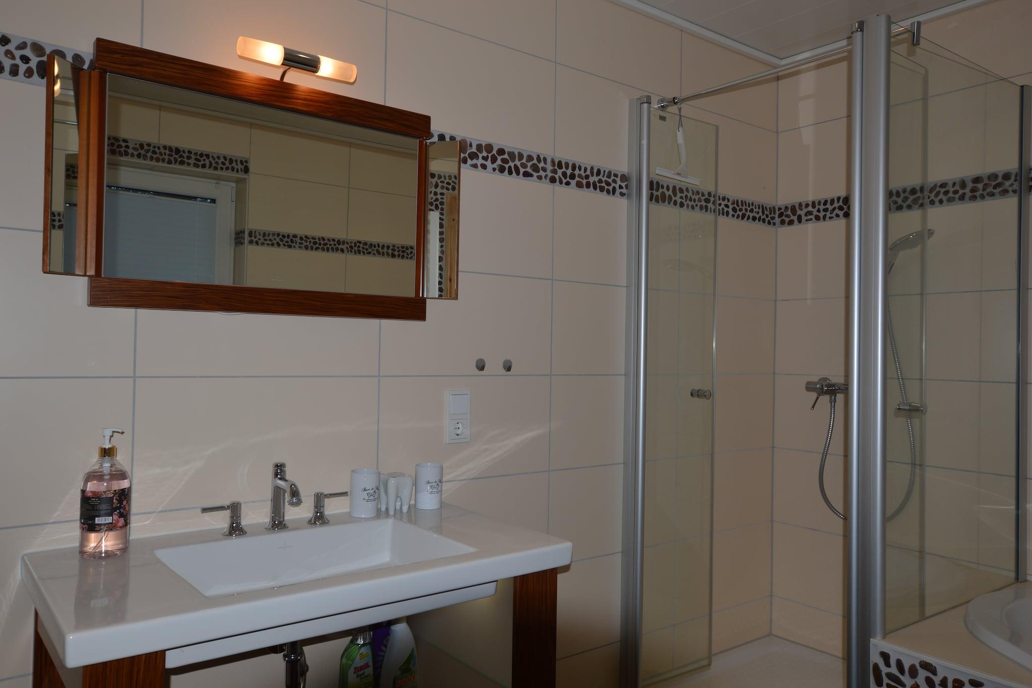 Denne kæledyrsfri ferielejlighed i Manderscheid tilbyder en fredelig flugt i hjertet af Eifel-regionen. Beliggende kun 1 km fra byens centrum og omgivet af frodig skov, er det ideelt for par eller små familier, der ønsker at udforske områdets naturlige skønhed og middelalderlige charme. De berømte tvillingeslotte Manderscheid, Niederburg og Oberburg ligger i nærheden og tilbyder en fantastisk udsigt og et indblik i regionens rige historie. Vandrestien Manderscheider Burgenstieg er et must for friluftsentusiaster. Lejligheden på første sal har et fuldt udstyret køkken med komfur, ovn, mikroovn, opvaskemaskine og køleskab med fryser. Stuen/spisestuen har tv, spisebord og hyggeligt opholdsområde. To soveværelser med dobbeltsenge giver afslappende nætter, og badeværelset har badekar med bruser. En privat balkon og parkering på stedet tilføjer til bekvemmeligheden, hvilket gør det til en behagelig base for dit Eifel-eventyr. Det omkringliggende område er kendt for sine naturskønne stier, vulkanske landskaber og charmerende byer. Nyd lokale retter på De Port Wein Café eller prøv regionale specialiteter på Restaurant MundArt, begge inden for gåafstand.