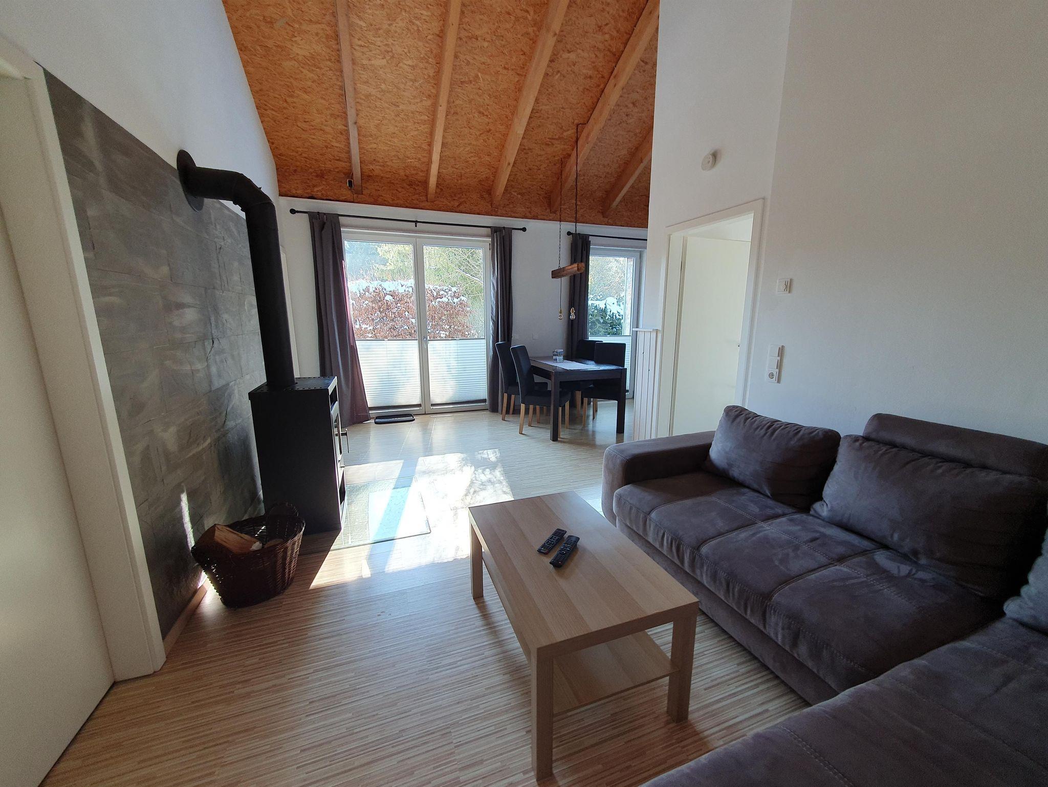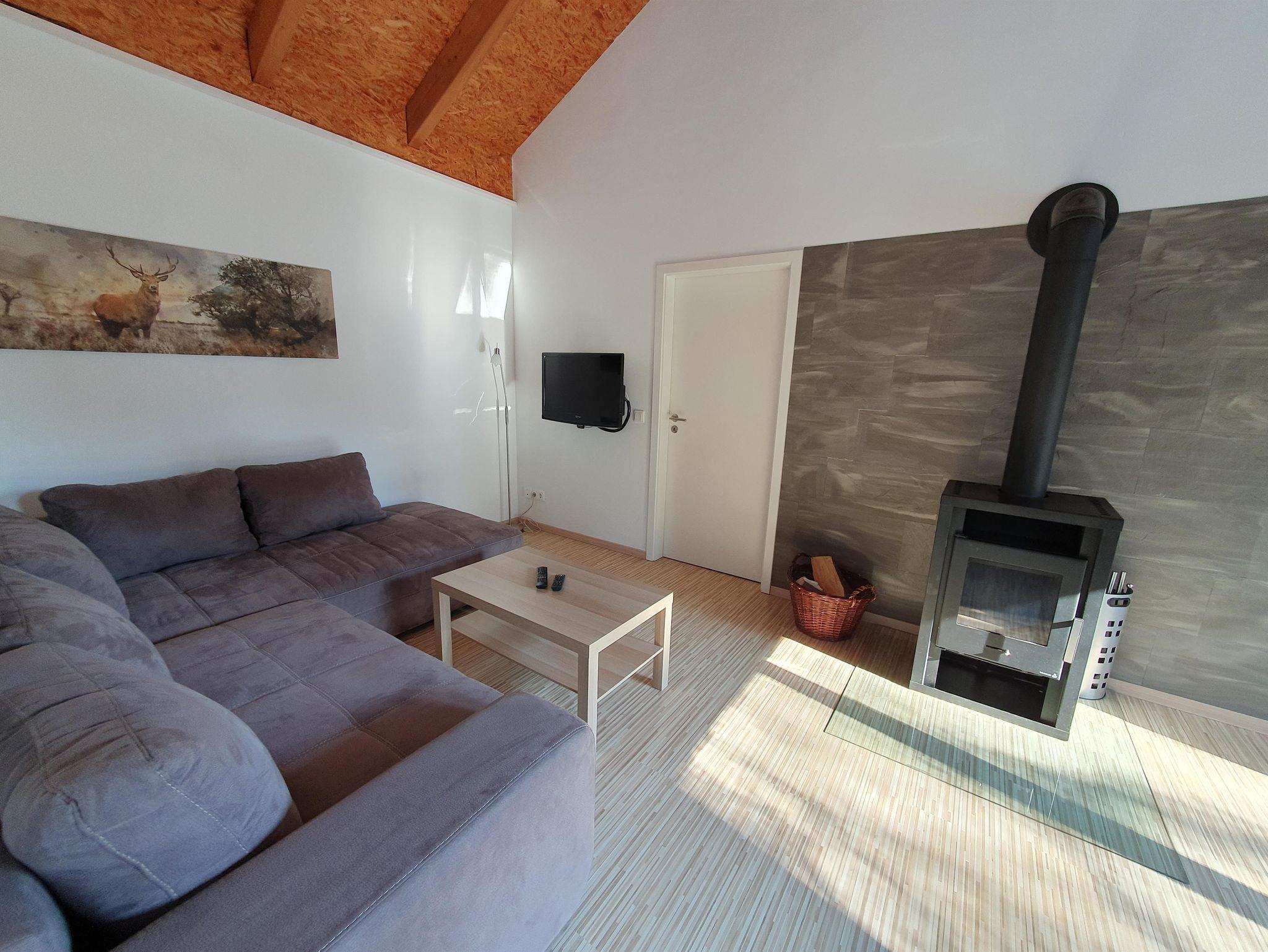 Das Ferienhaus 2 verfügt über ein Wohnzimmer, zwei Schlafzimmer, eine offenen Küche mit Essplatz sowie über ein Bad mit Dusche und WC. Das Wohnzimmer ist mit einem Ausziehsofa ausgestattet, auf welchem nötigenfalls noch zwei Personen schlafen können. Weiterhin befindet sich ein Kamin im Wohnzimmer sowie der Essplatz mit 4 Stühlen. Ein Schlafzimmer ist mit einem Doppelbett ausgestattet, das zweite Schlafzimmer verfügt über zwei Einzelbetten. Die Küche ist mit sämtlichen Küchengeräten ausgestattet. Der PKW kann direkt am Haus geparkt werden.