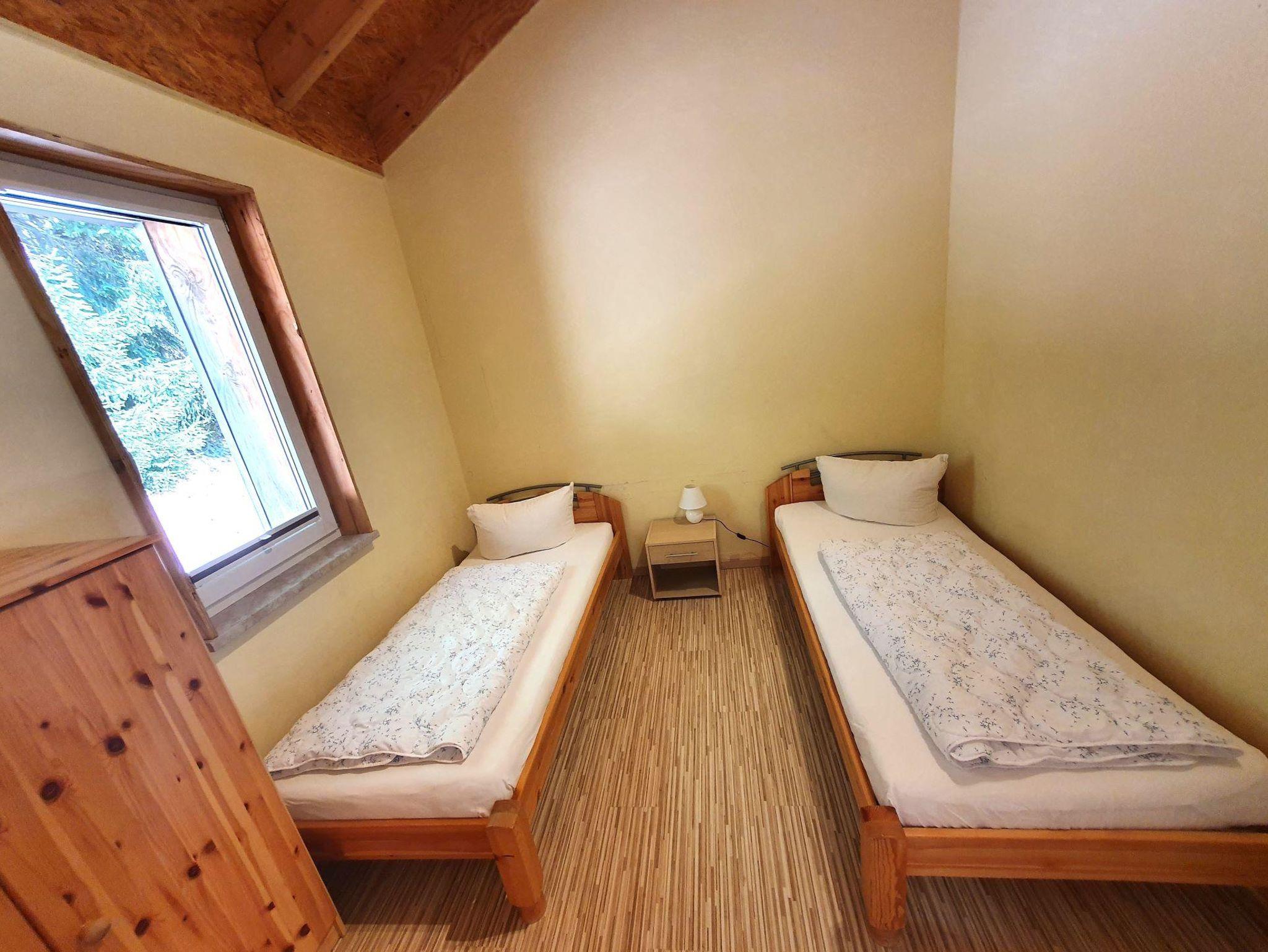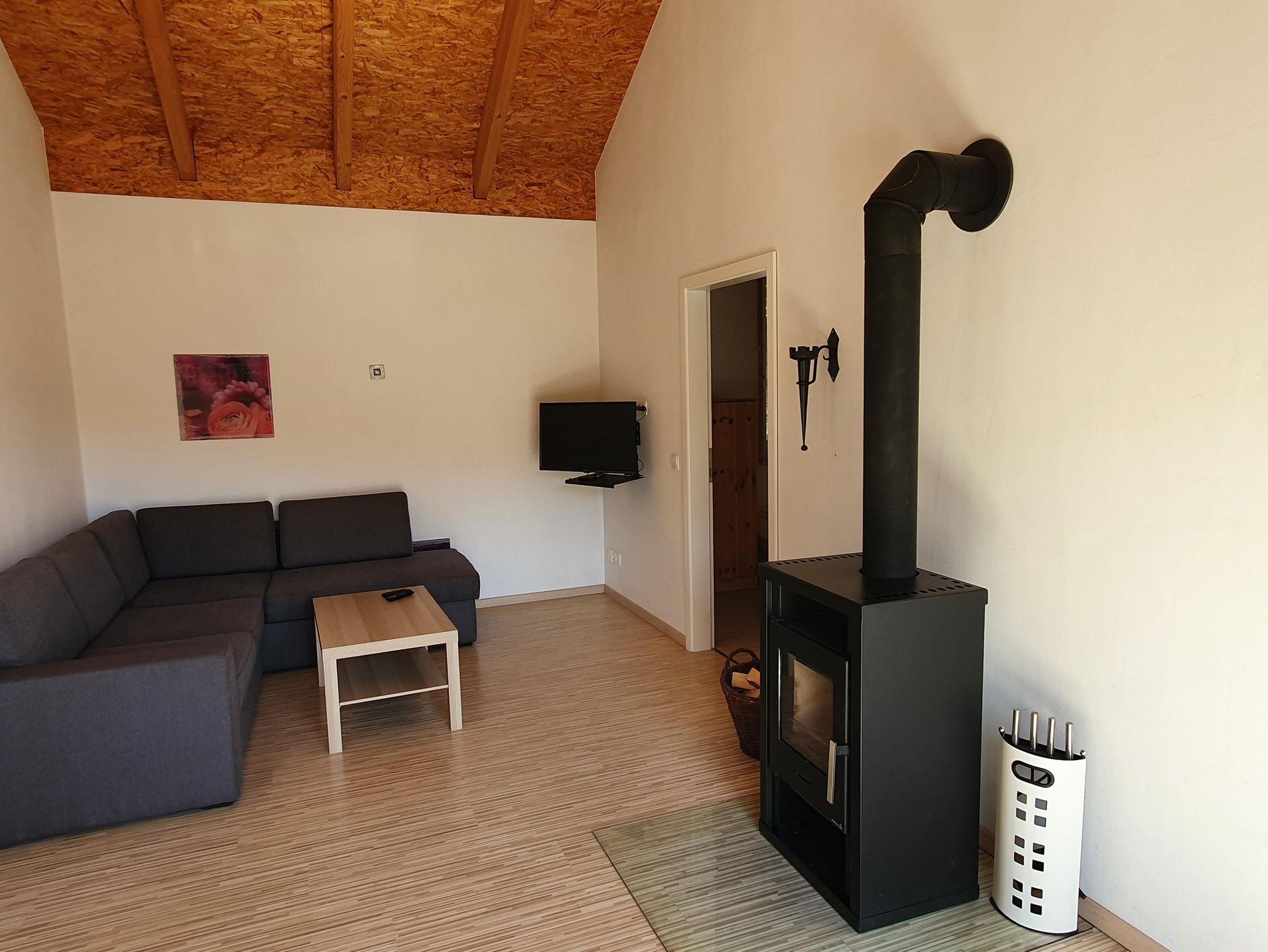 Das Ferienhaus 6 verfügt über ein Wohnzimmer, zwei Schlafzimmer, eine offenen Küche mit Essplatz sowie über ein Bad mit Dusche und WC. Das Wohnzimmer ist mit einem Ausziehsofa ausgestattet, auf welchem nötigenfalls noch zwei Personen schlafen können. Weiterhin befindet sich ein Kamin im Wohnzimmer sowie der Essplatz mit 4 Stühlen. Ein Schlafzimmer ist mit einem Doppelbett ausgestattet, das zweite Schlafzimmer verfügt über zwei Einzelbetten. Die Küche ist mit sämtlichen Küchengeräten ausgestattet. Der PKW kann direkt am Haus geparkt werden.