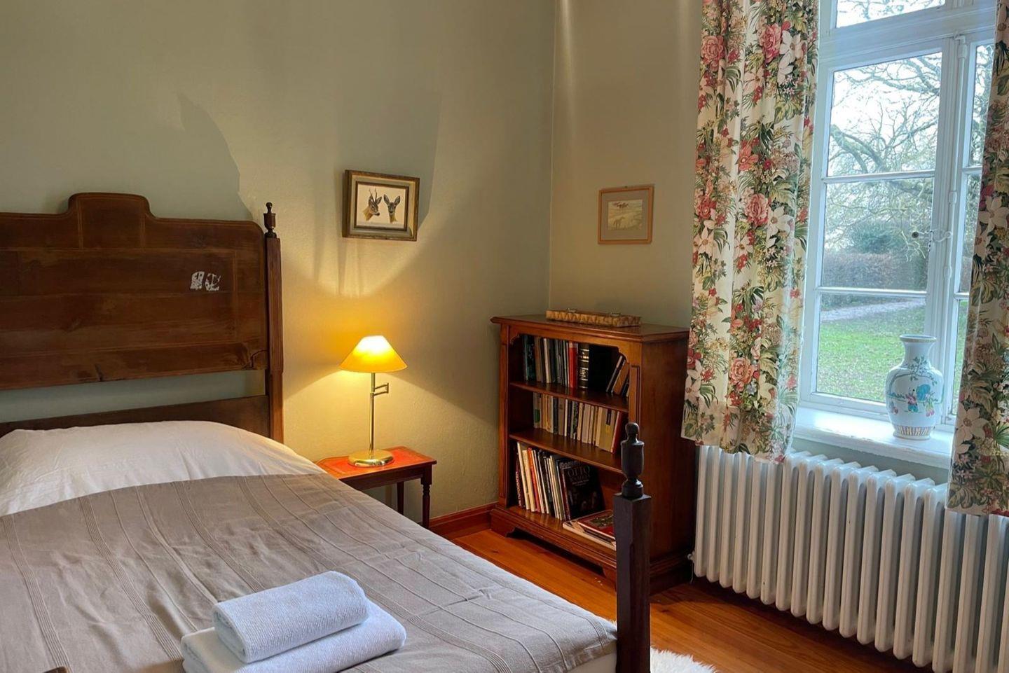 Idyllisch liegt das so genannte Pächterhaus in absoluter Alleinlage. Hinter dem bescheidenen Namen verbirgt sich ein prachtvolles Gutshaus aus dem frühen 19. Jahrhundert mit 9 Schlafzimmern und 5 Badezimmern, einem großzügigen Wohnbereich bestehend aus Wohnzimmer, Salon, einem Esszimmerund Wintergarten sowie einer bestens ausgestatteten Küche. Der prachtvolle Garten mit seinem alten Baumbestand ist einzigartig und steht den Gästen exklusiv zur Verfügung.