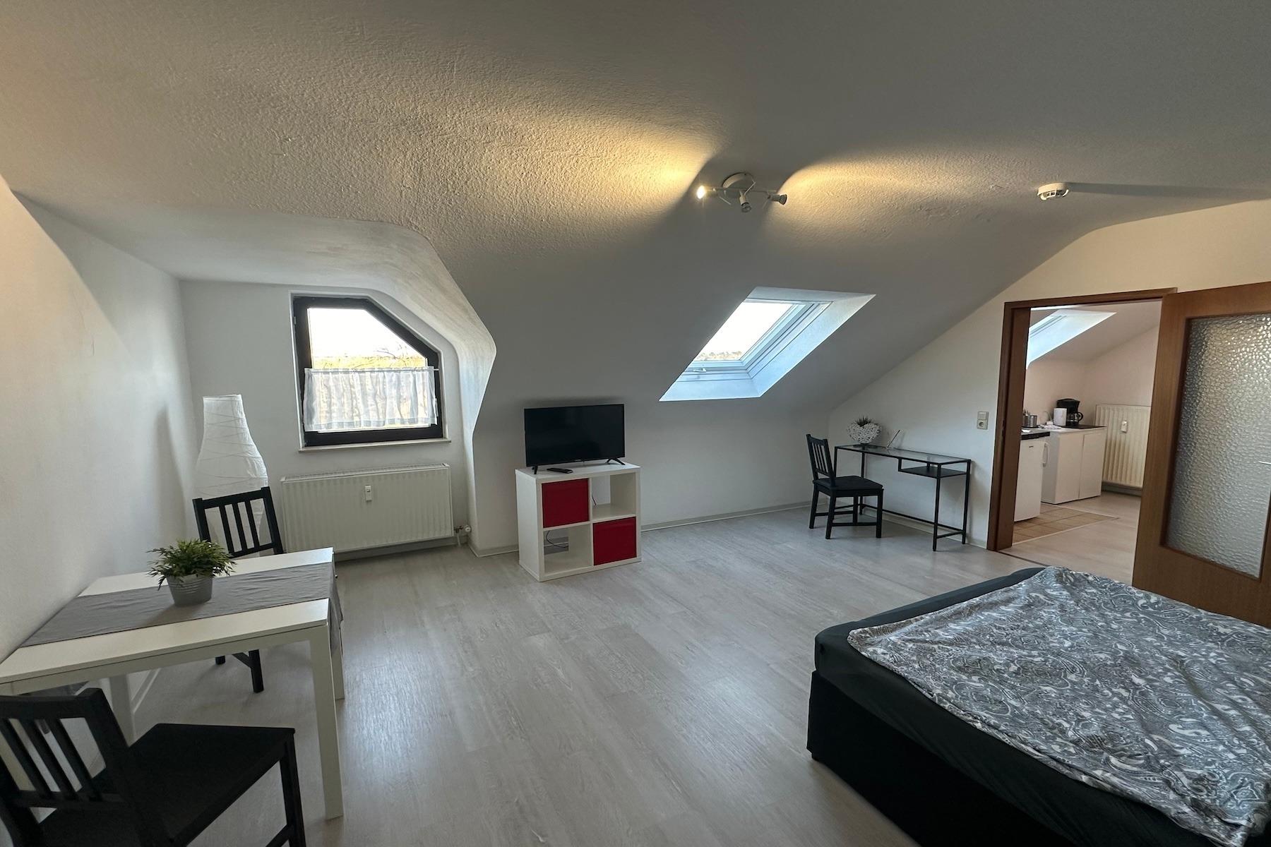 - quiet, cental and very good traffic connection! - shops of the everyday life, like supermarket, butcher, baker, drugstore, banks, are to be reached etc. comfortably on foot. - the city bus stop is in immediate nearness. From here they are at approx. 20 minutes directly in the city center - Apartments are complete furnished. We have a bed 140x200, TV, table, chairs, couch, cabinet, own kitchen, own bathroom with shower. Washing machines and dryers are in the house. - free parking infront of the house - All apartments with own Wifi-Internet -200 meters away I a nice lake in summertime for swimming and waterskiing