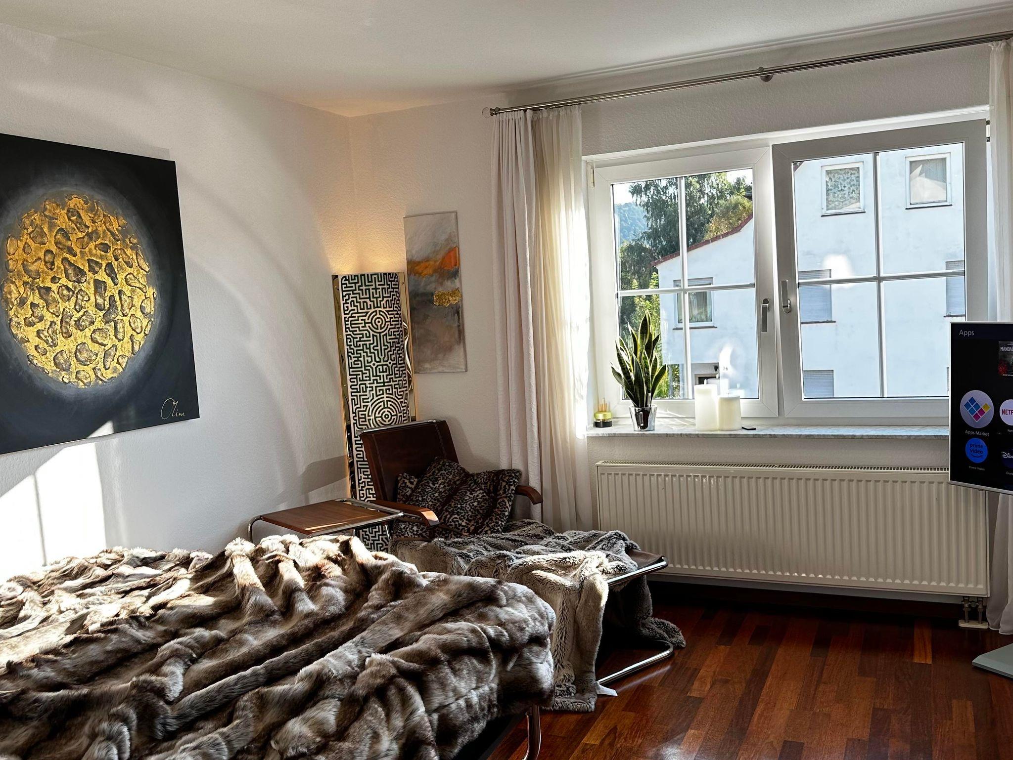 Ausstattung: neuwertig, Massivholzmöbel, Kamin, Lederschlafcouch, Parkett, 2 TV, Loewe Media Center, Radio DVD, CD, JOOP! Designerbad mit Wanne, WMF professioneller Kaffeevollautomat, Mikrowelle, Exklusive Bulthaup Küche, Miele Waschmaschine und Trockner, W-Lan (Internet) mit iPad.Alle Apartments sind 5*****Sterne zertifiziert DTV. Deutscher Touristik Verband.