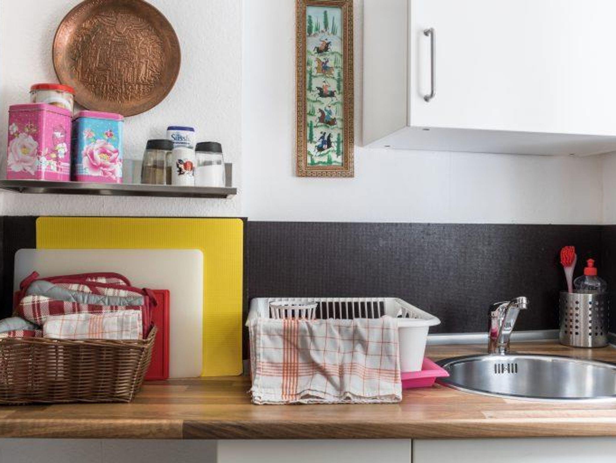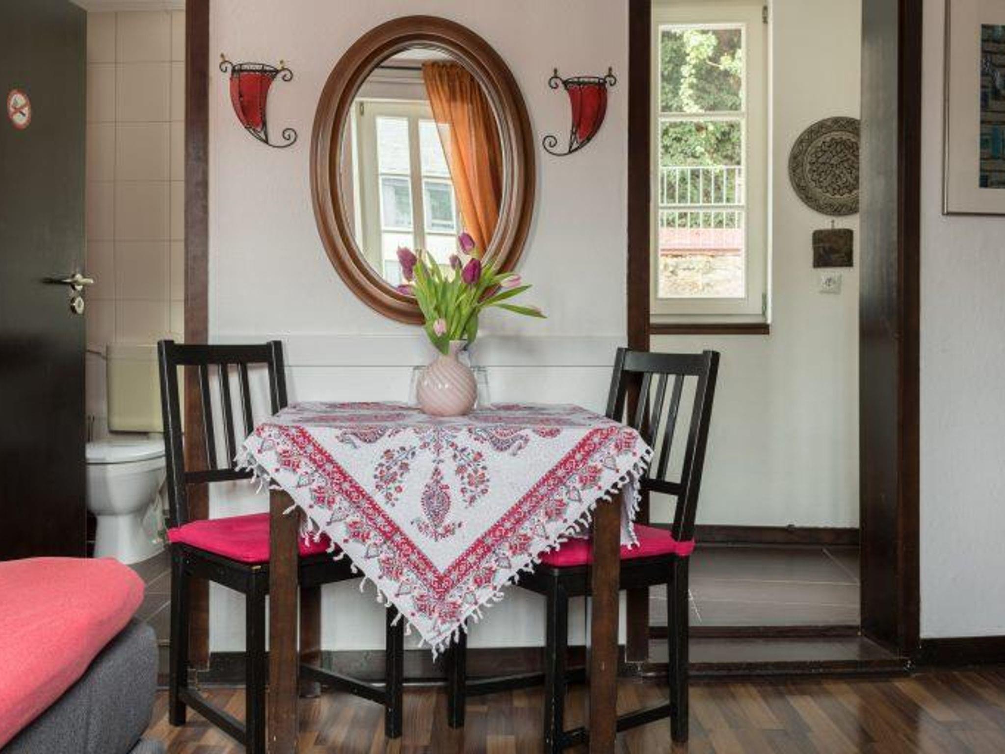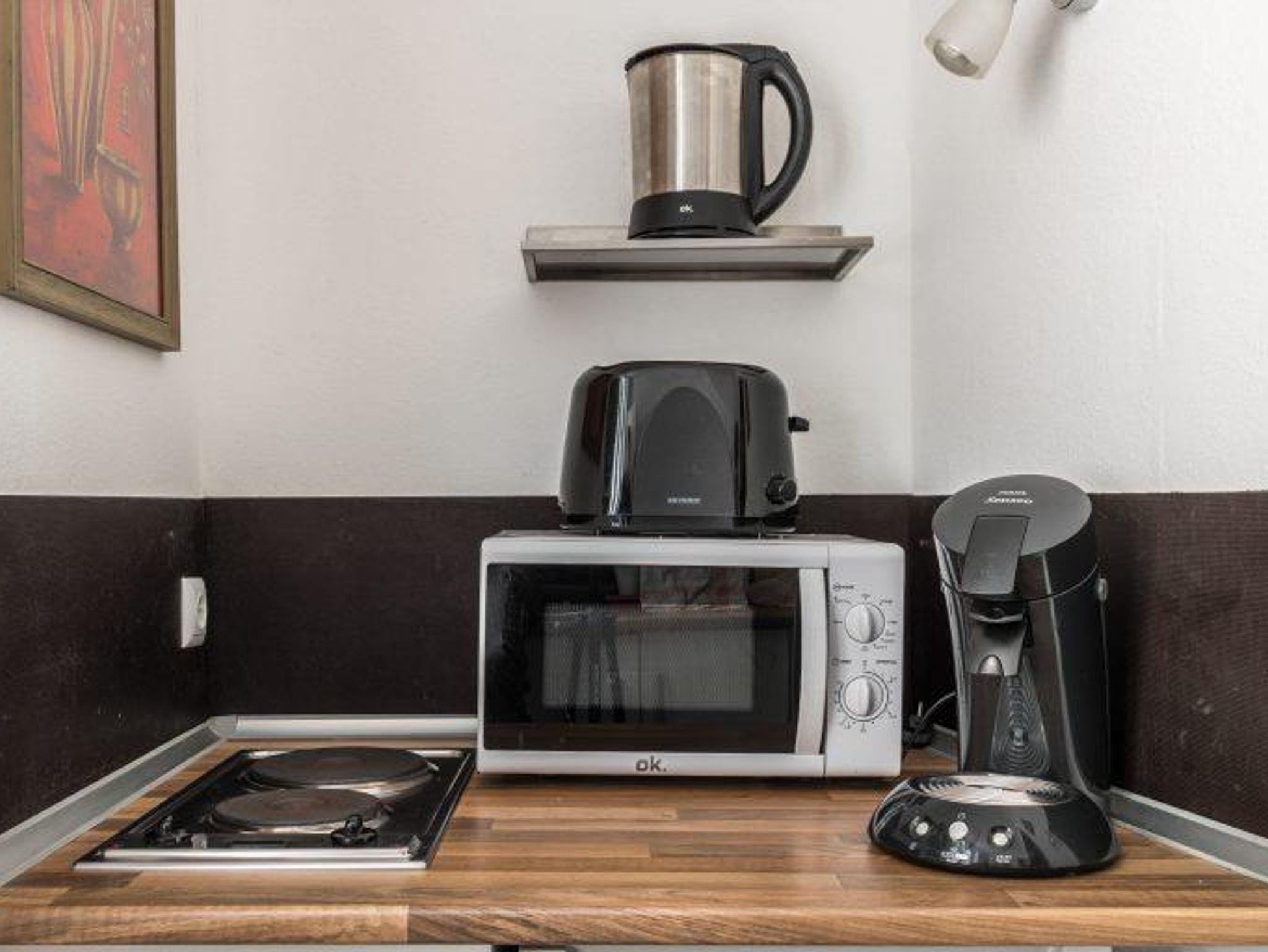 Alle Küchen sind vollausgestattet: Senseo-Kaffeemaschine, Wasserkocher, Herd mit zwei Platten, Besteck, Gläser, Teller, Töpfe, Pfannen, Geschirrtücher, Spülmittel, Kühlschrank mit Gefrierfach. Kaffee, verschiedene Teesorten, Milch und Zucker sowie Gewürze und Salz zum Kochen stehen in allen Suiten zur Verfügung. Der Essbereich bietet Ihnen einen Esstisch mit ausreichend Sitzgelegenheiten.
