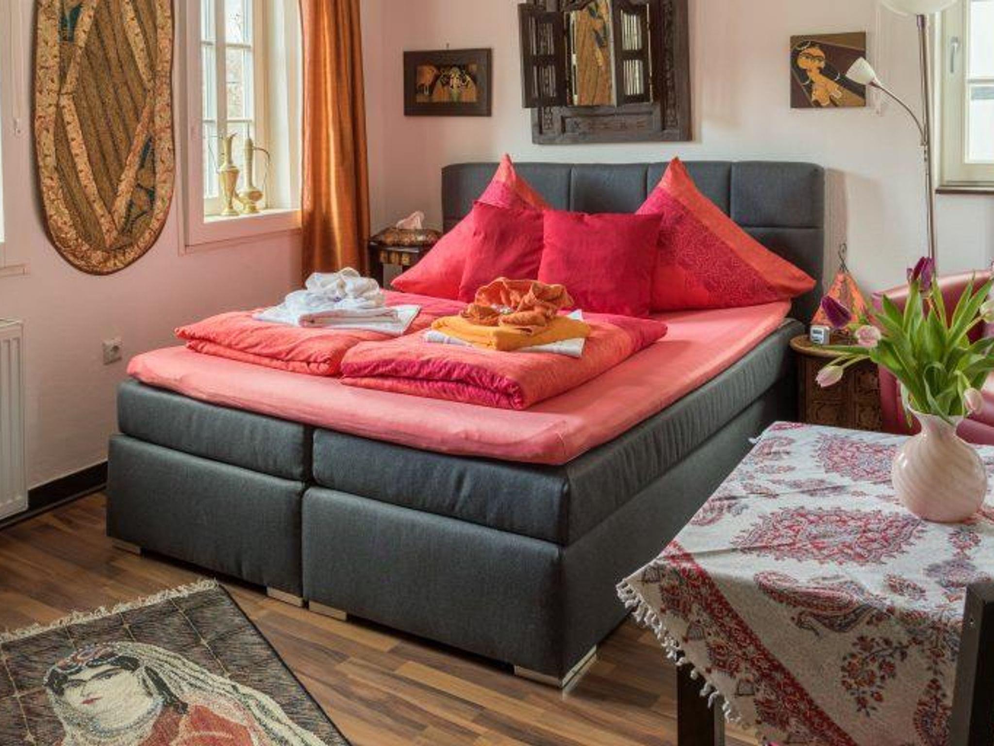 Im 1.Obergeschoss liegt die Orient-Suite als 1-Zimmerappartement. Sie bietet Ihnen ein Doppelbett (1,60×2,00m) in außergewöhnlicher, orientalischer Atmosphäre und eine separate Küche. Das Bad ist mit einer Badewanne ausgestattet.