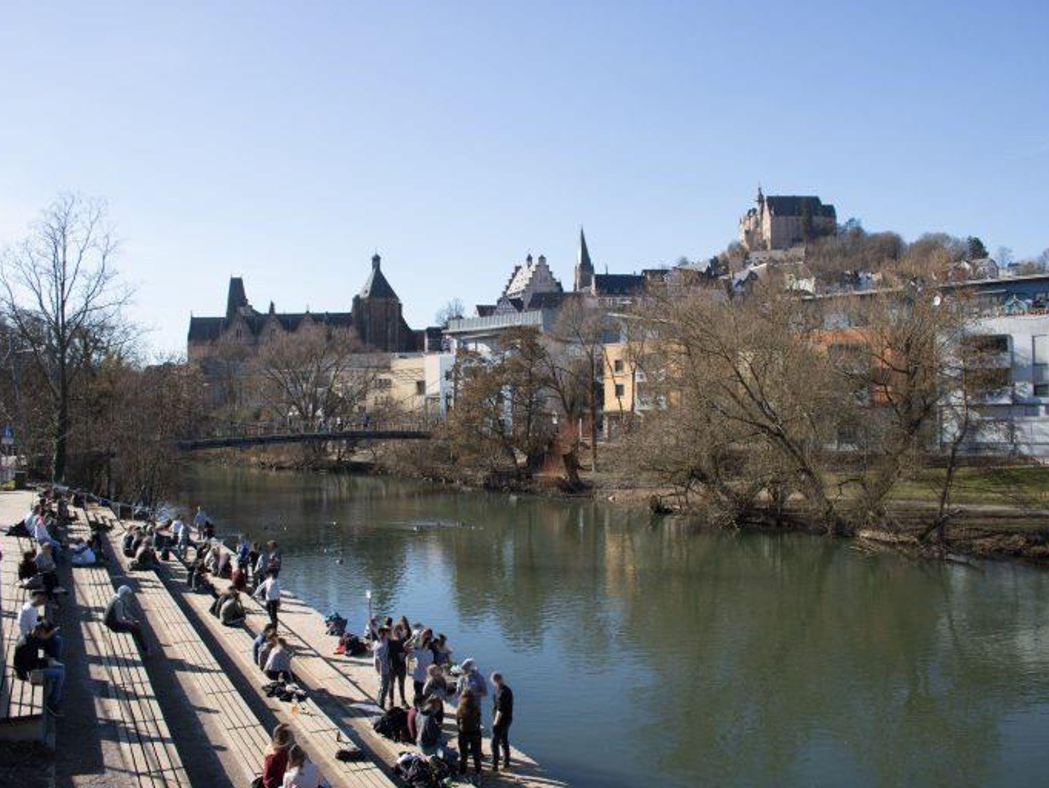 Sie führt hinauf von der Lahnbrücke und vom modernen Zentrum in weniger als zwei Gehminuten Entfernung (mit einem Cineplex-Kino, Einkaufsmöglichkeiten, Restaurants, Bäckereien, Bushaltestelle, Bankautomaten etc. in unmittelbarer Nähe) zur Dominikanerpforte, der sogenannten Universitätskirche.