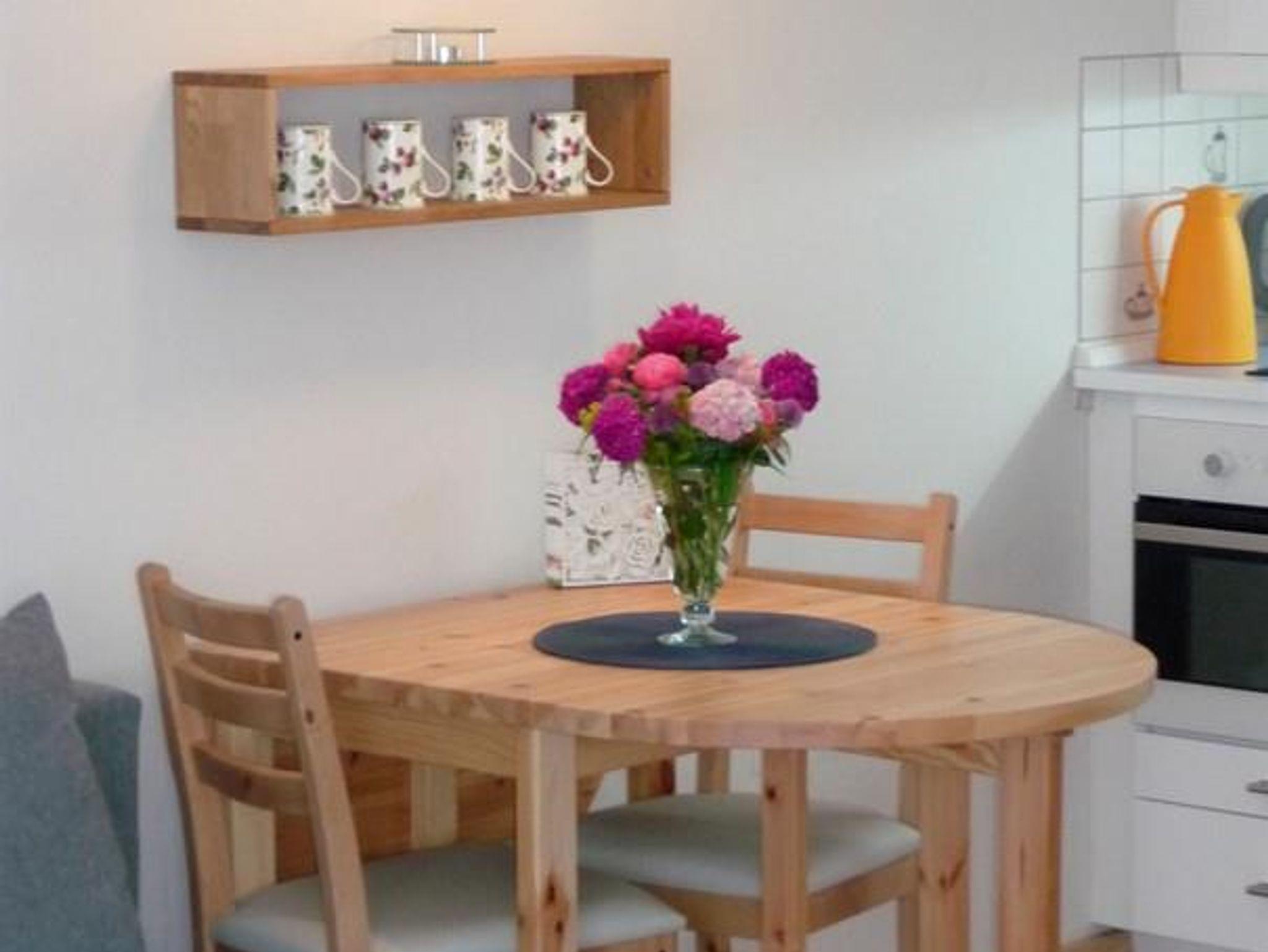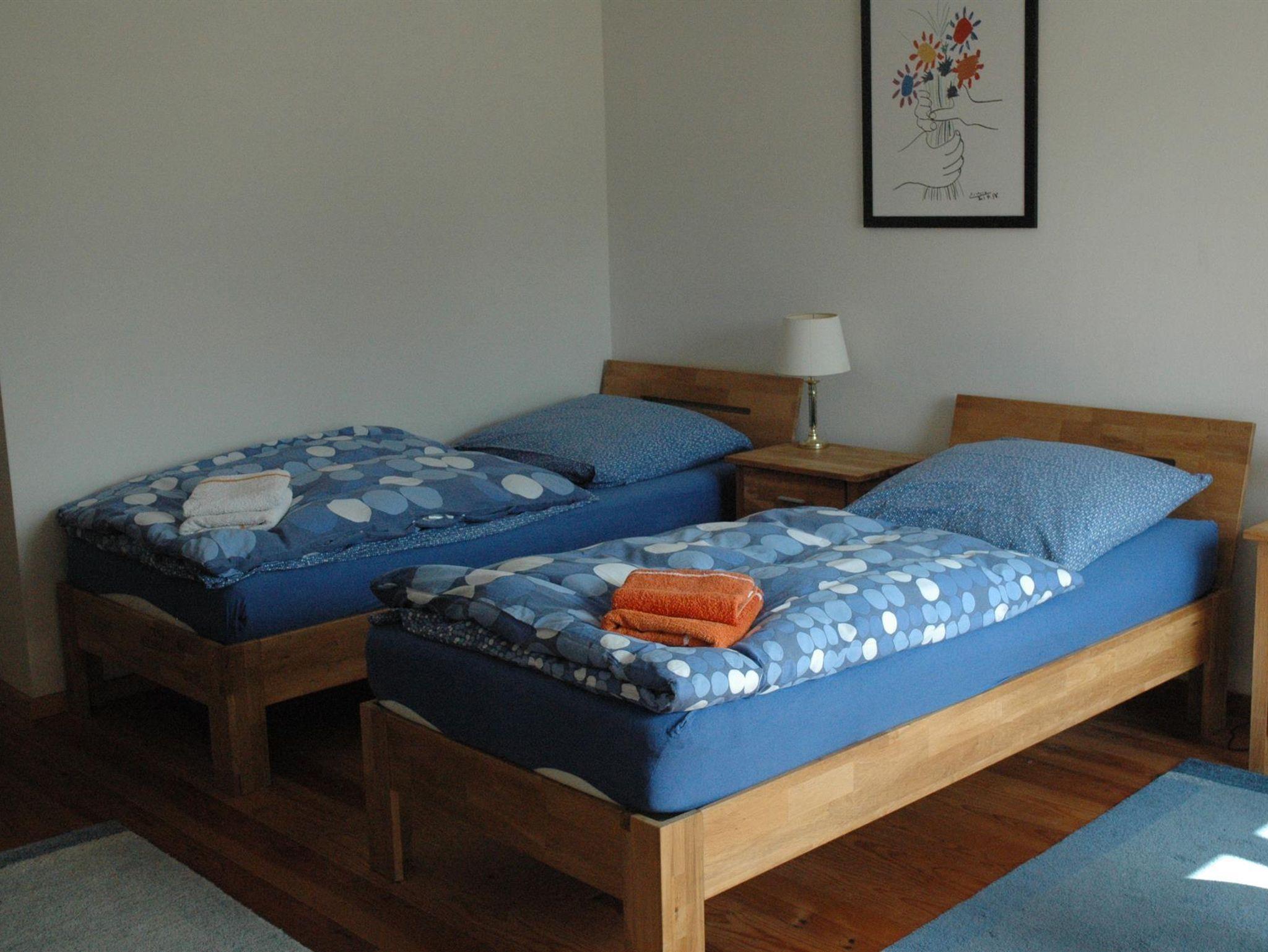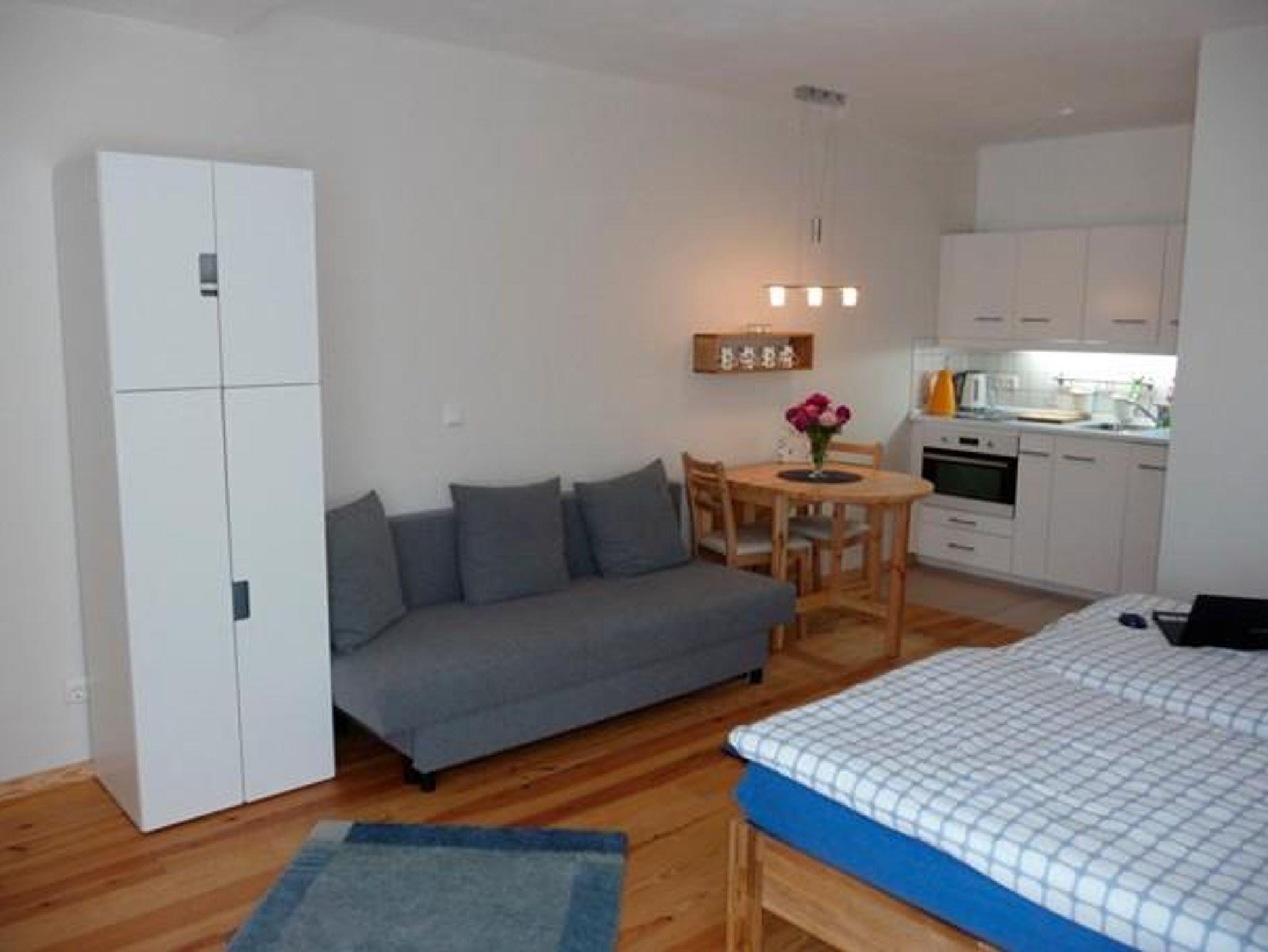 Das Apartment verfügt über einen separaten Zugang vom Garten aus. Es sind zwei Betten vorhanden, die zusammen oder auseinandergestellt werden können. Eine zusätzliche Schlafgelegenheit bietet eine Schlafcouch. Zur Ausstattung gehört eine Küchenzeile mit Kühlschrank und Gefrierfach, Induktionskochplatte und Mikrowellenbackofen. Ein Fernseher und WLAN-Anschluss ist vorhanden.