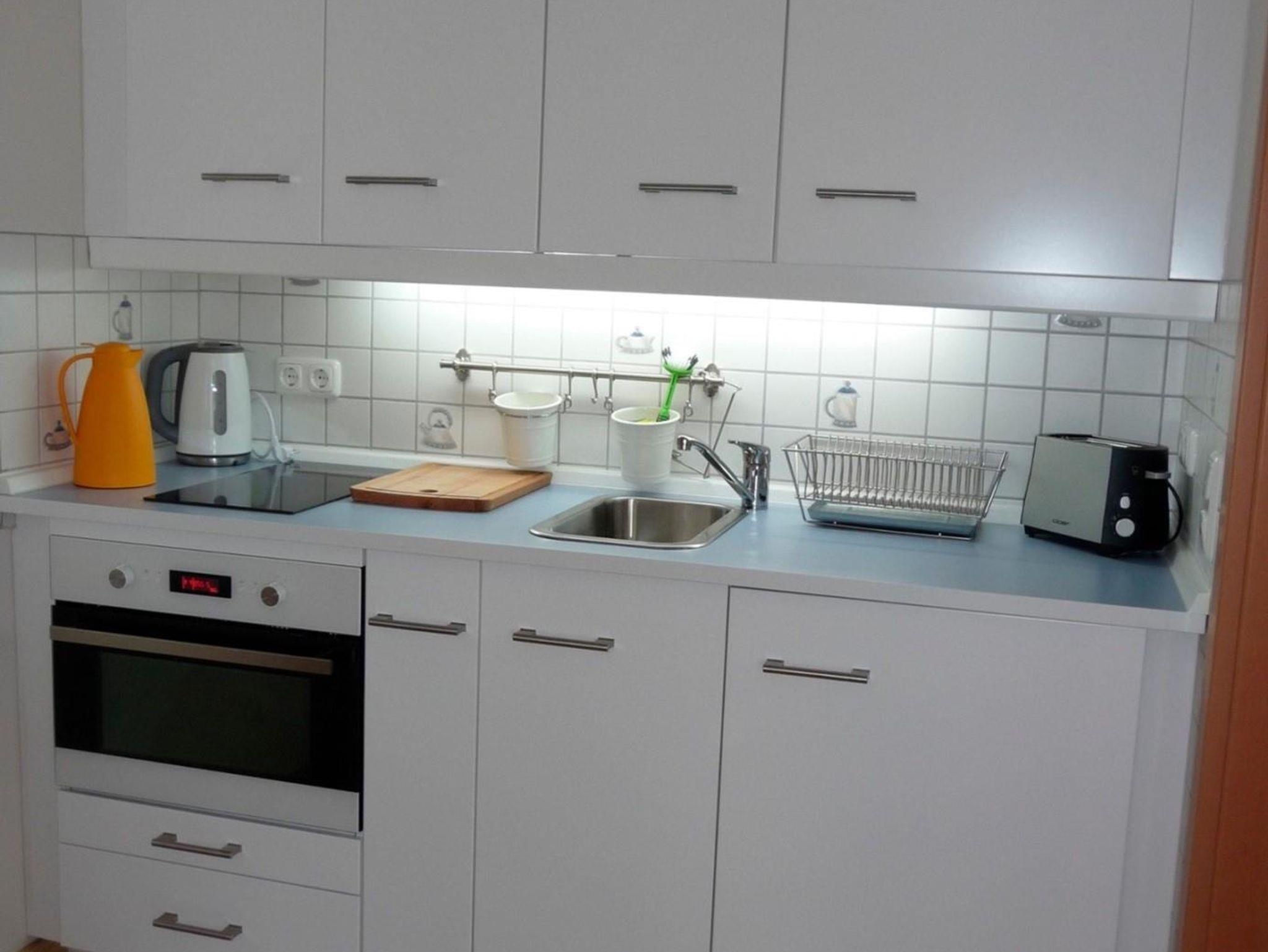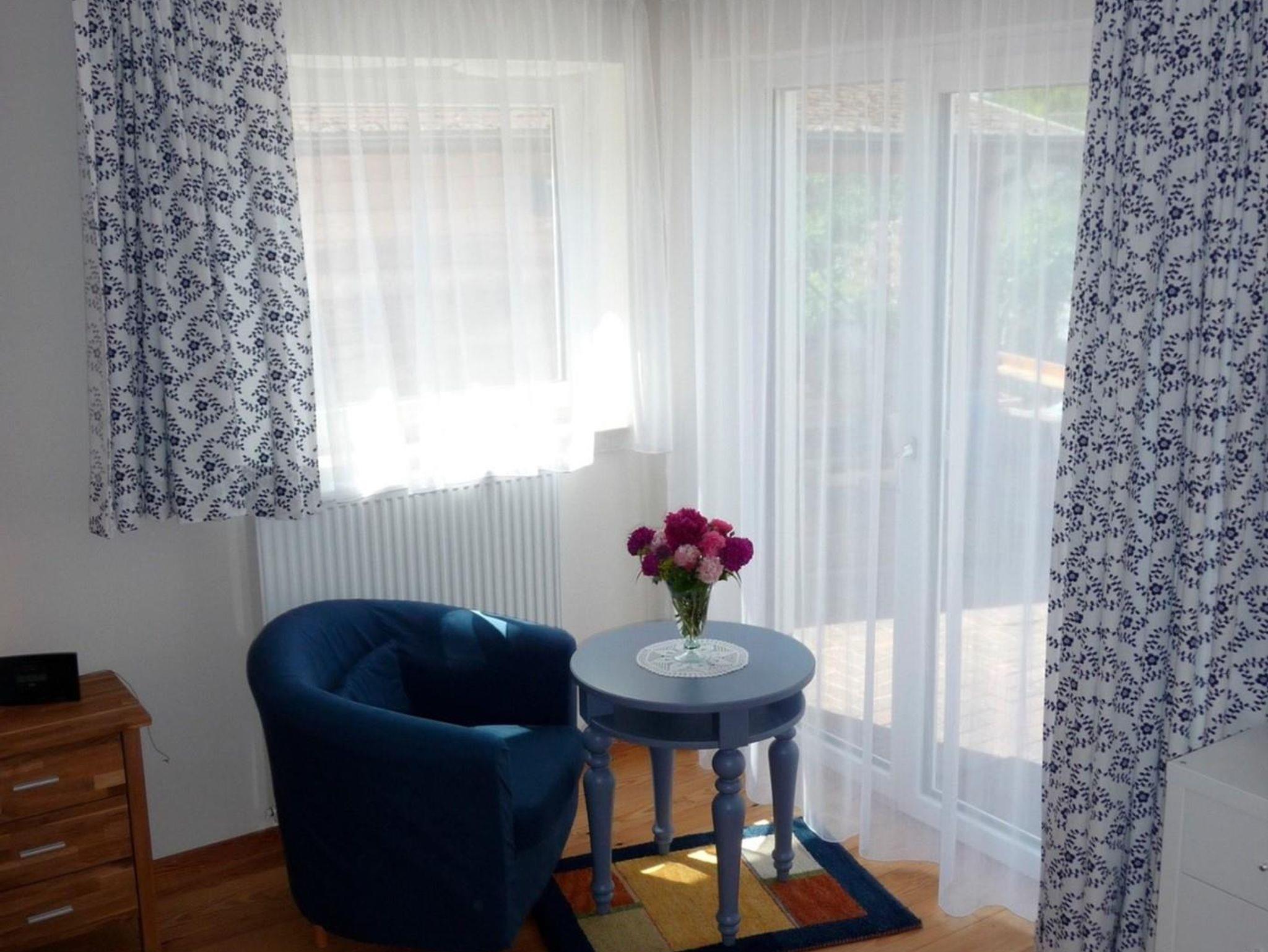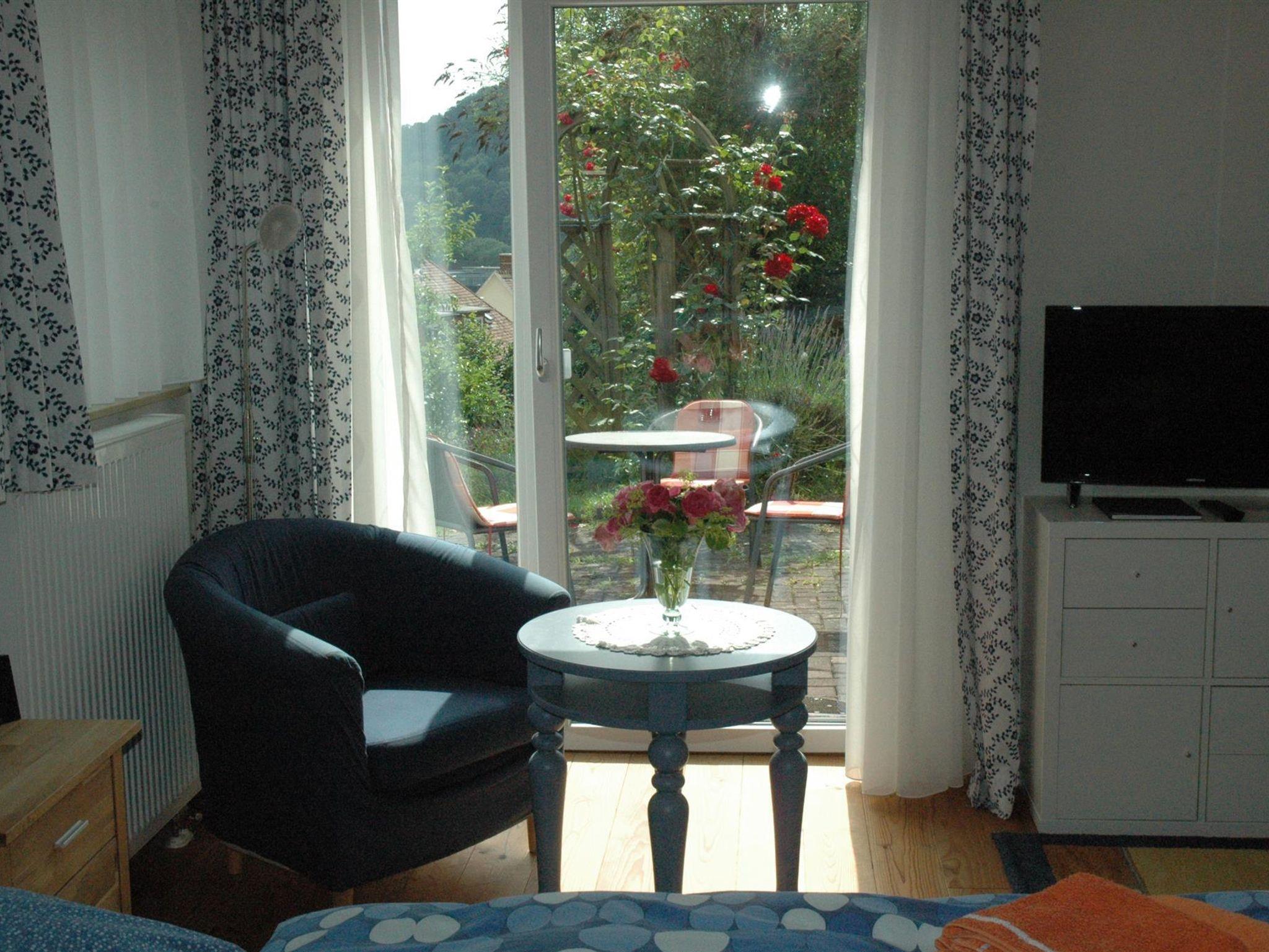 Das Apartment verfügt über einen separaten Zugang vom Garten aus. Es sind zwei Betten vorhanden, die zusammen oder auseinandergestellt werden können. Eine zusätzliche Schlafgelegenheit bietet eine Schlafcouch. Zur Ausstattung gehört eine Küchenzeile mit Kühlschrank und Gefrierfach, Induktionskochplatte und Mikrowellenbackofen. Ein Fernseher und WLAN-Anschluss ist vorhanden.