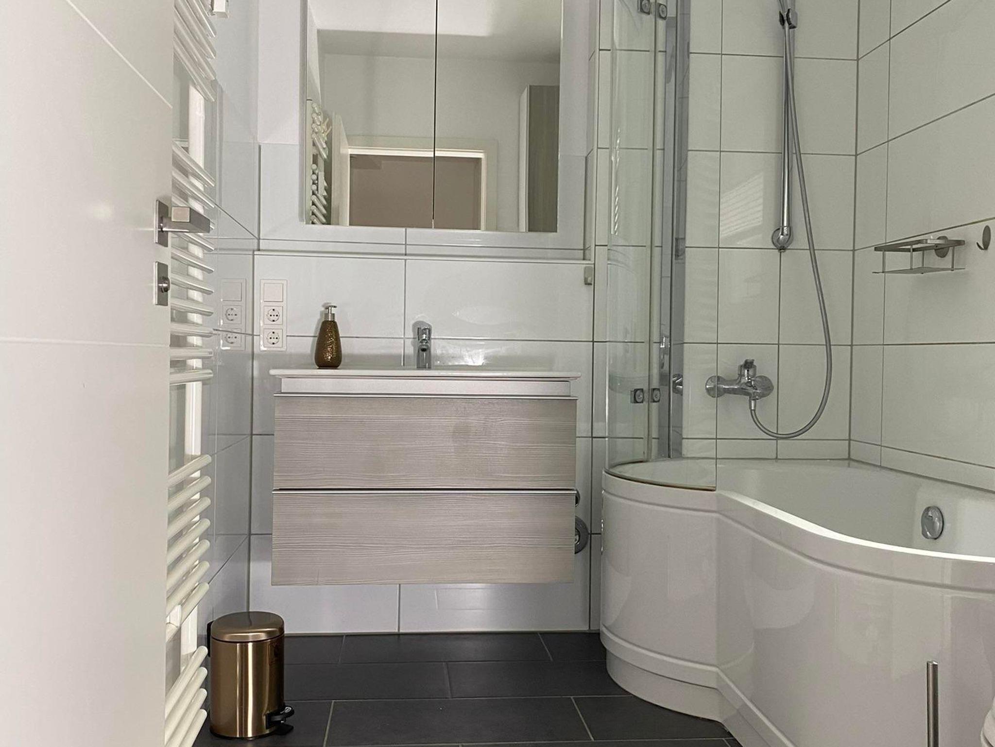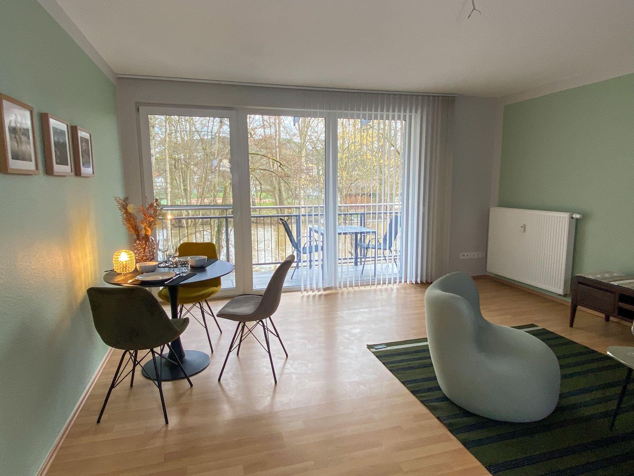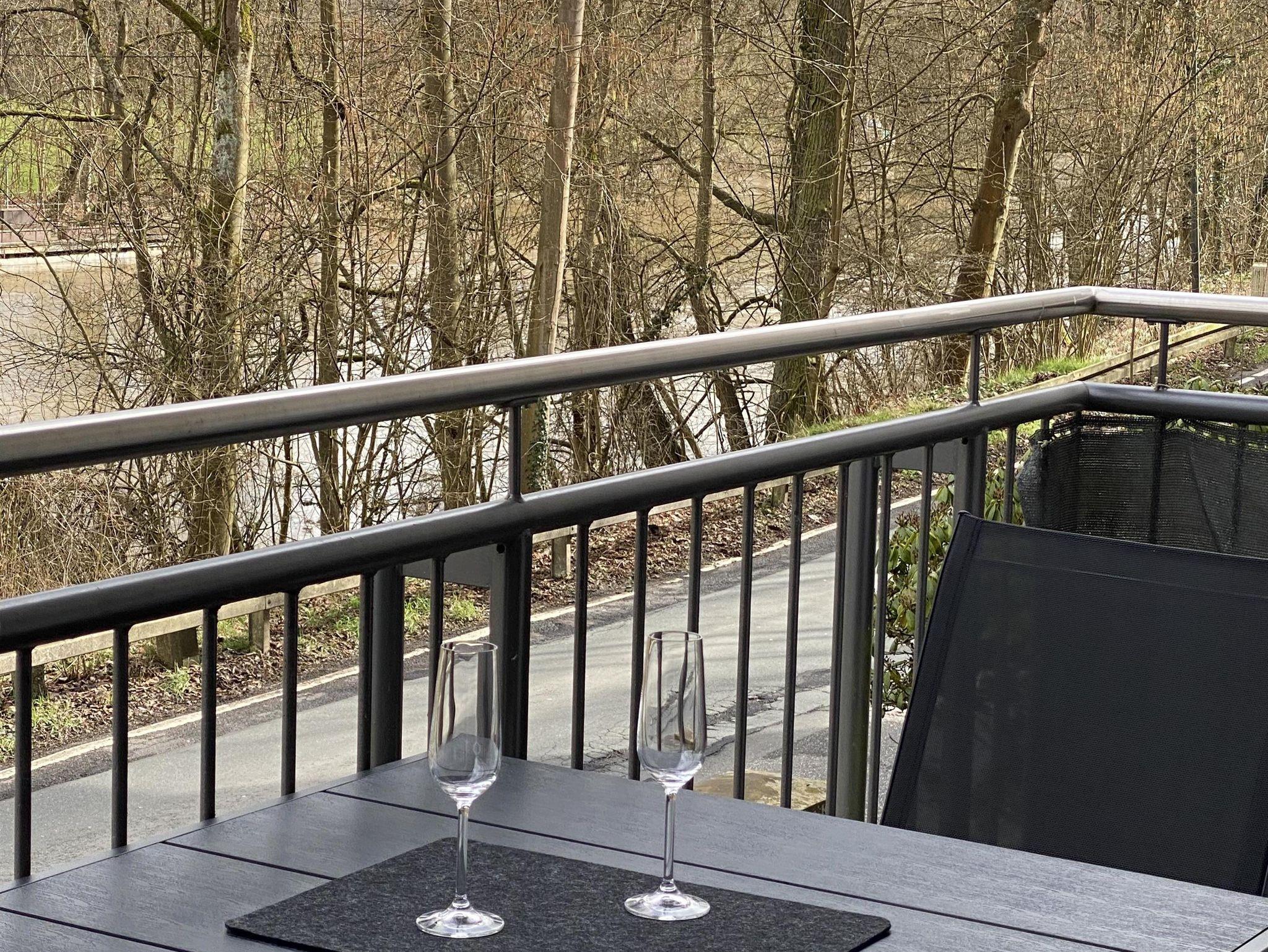 Die Wohnung verfügt einen überdachten Parkplatz sowie einen weiteren Parkplatz, ein Wohnzimmer, ein Schlafzimmer, eine Küche mit Induktionsherd, Spülmaschine, Kaffeevollautomaten, Toaster, Wasserkocher, Topfset der Firma Rössle sowie ausreichend Geschirr, Besteck und Kochutensilien. Ein großer Einbauschrank im Bereich des Flures sorgt für ausreichend Stauraum. Das moderne Bad verfügt über eine Badewanne mit einer Duschabtrennung und ist ebenfalls sehr geräumig und mit ausreichend Stauraum versehen. Der Balkon ist mit einem stabilen Tisch und 2 Stühlen möbliert. Hier lässt es sich wunderbar mit Blick auf die Lahn frühstücken. Zudem finden Sie einen hochwertigen Lafumastuhl, auf dem Sie wunderbar die Füße hochlegen und sich von Ihren Besichtigungen erholen können.