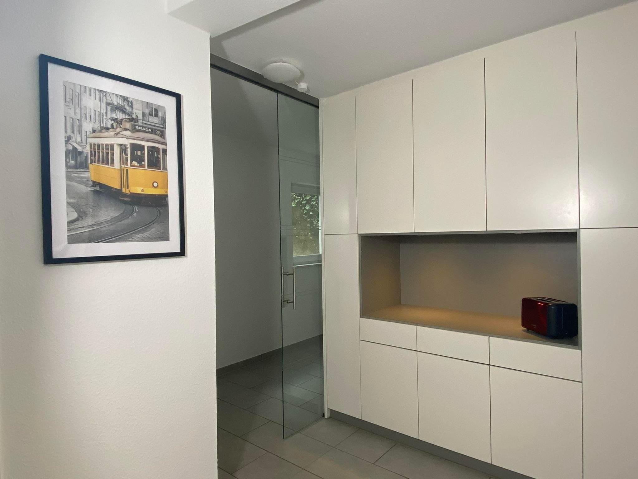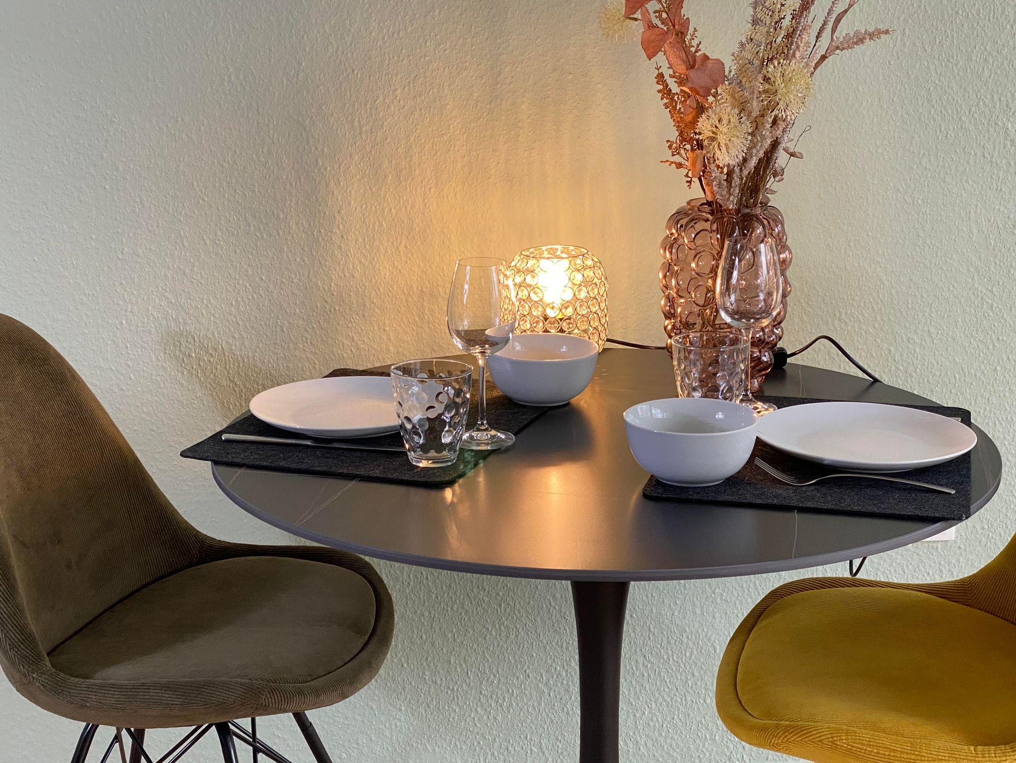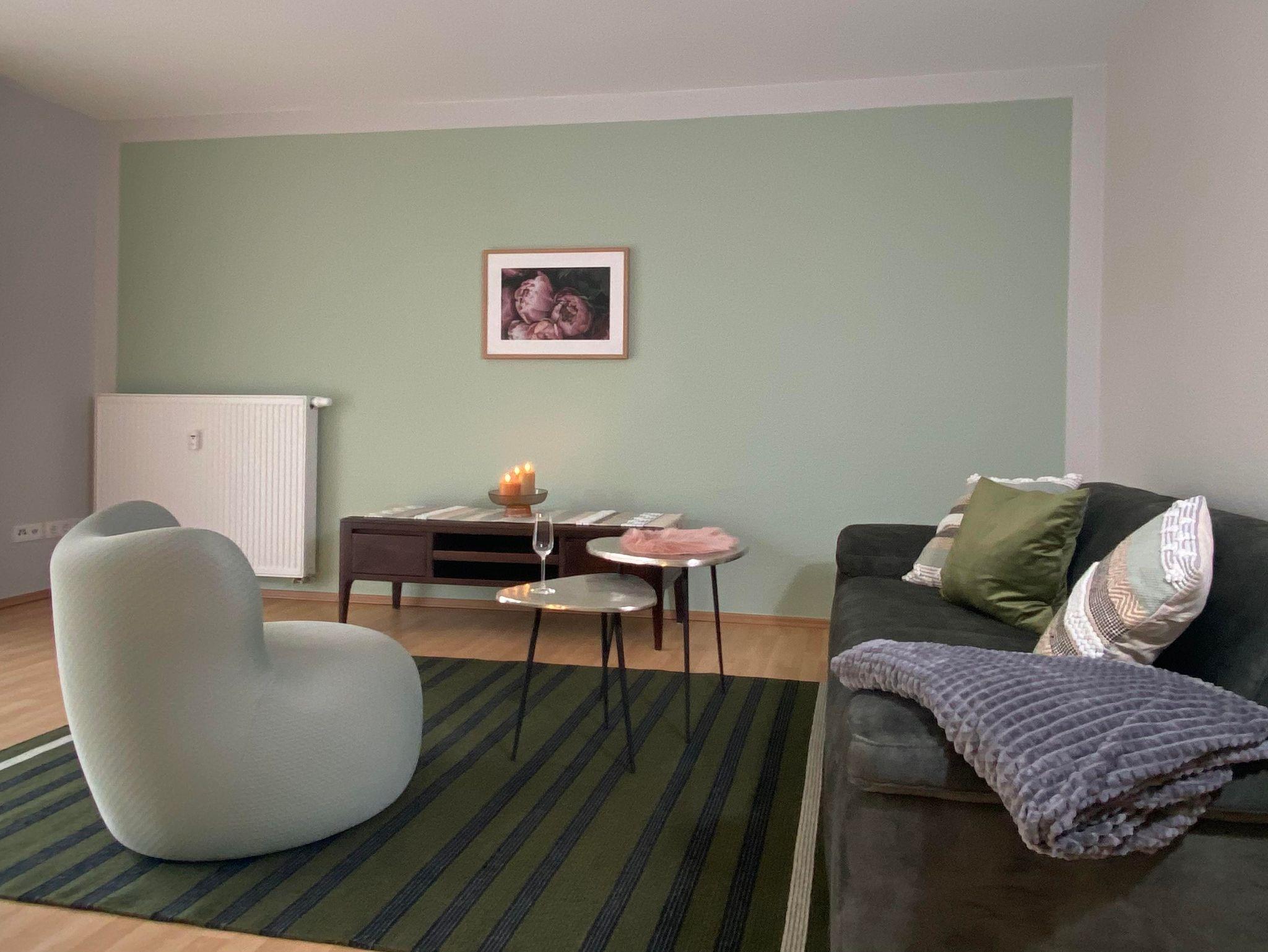 Die Wohnung verfügt einen überdachten Parkplatz sowie einen weiteren Parkplatz, ein Wohnzimmer, ein Schlafzimmer, eine Küche mit Induktionsherd, Spülmaschine, Kaffeevollautomaten, Toaster, Wasserkocher, Topfset der Firma Rössle sowie ausreichend Geschirr, Besteck und Kochutensilien. Ein großer Einbauschrank im Bereich des Flures sorgt für ausreichend Stauraum. Das moderne Bad verfügt über eine Badewanne mit einer Duschabtrennung und ist ebenfalls sehr geräumig und mit ausreichend Stauraum versehen. Der Balkon ist mit einem stabilen Tisch und 2 Stühlen möbliert. Hier lässt es sich wunderbar mit Blick auf die Lahn frühstücken. Zudem finden Sie einen hochwertigen Lafumastuhl, auf dem Sie wunderbar die Füße hochlegen und sich von Ihren Besichtigungen erholen können.