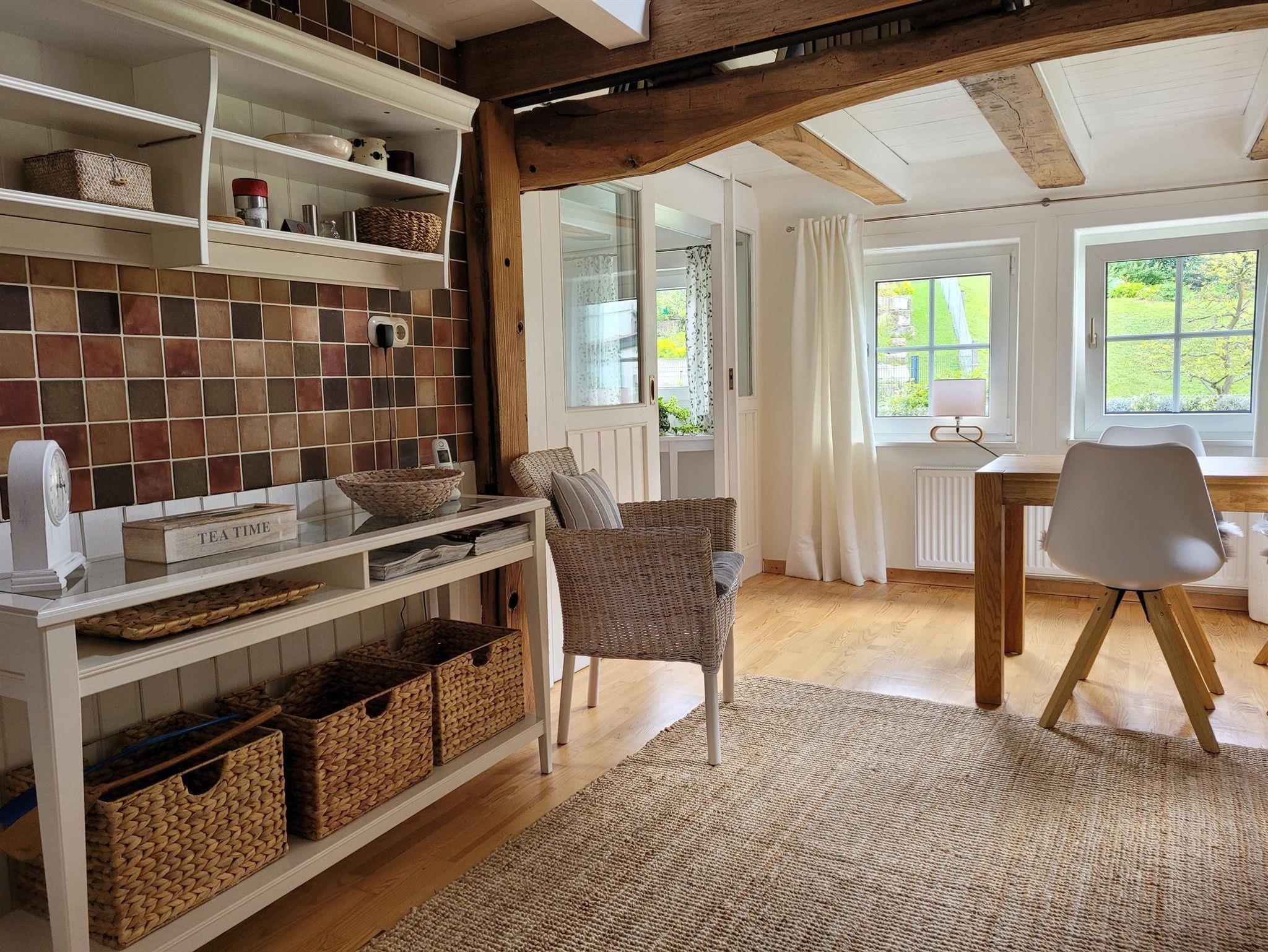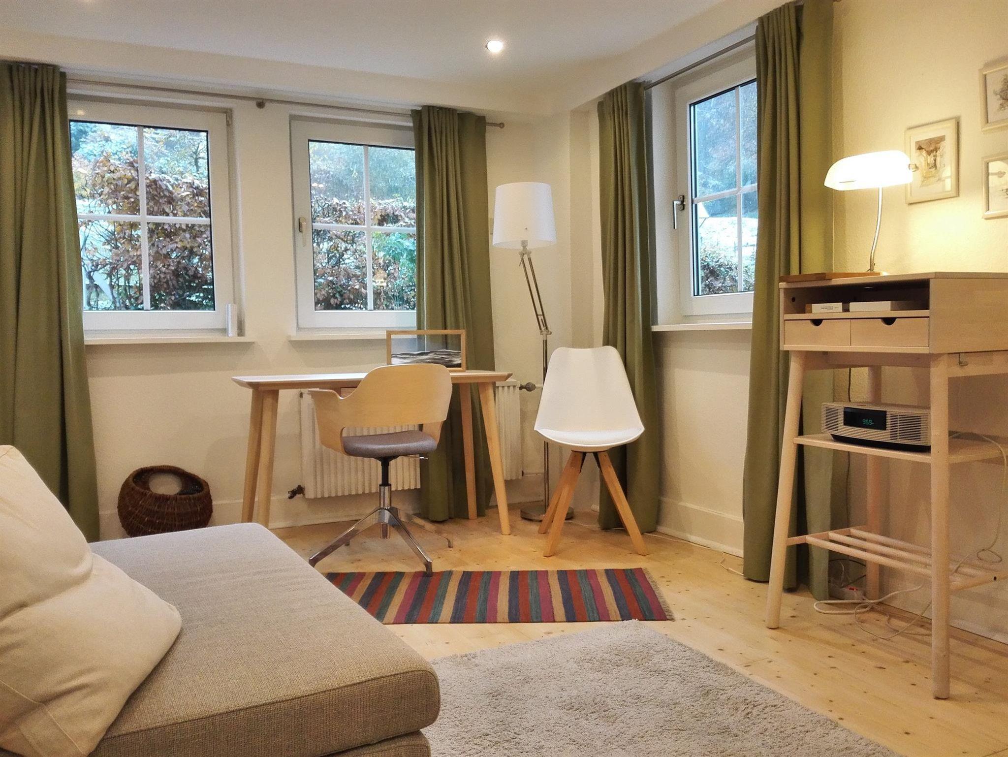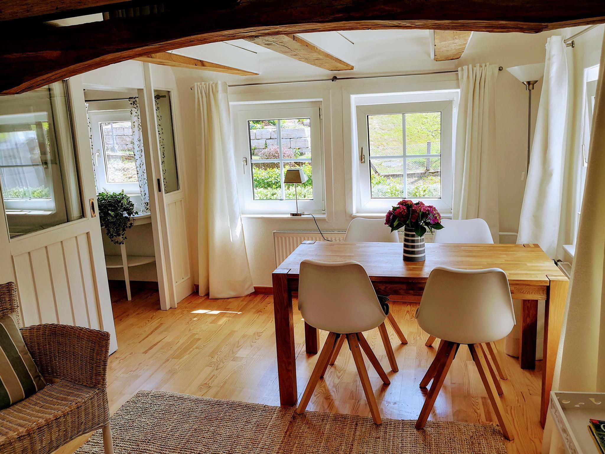 Das an das Wohnhaus der Vermieter angrenzende Landhaus (errichtet 1862) wurde im Sommer /Herbst 2016 von Grund auf renoviert und durchgehend neu möbliert. Es verfügt über ca. 120 qm Wohnfläche, einen eigenen Hauseingang und eigenen Zugang zur Straße sowie eine (teilweise überdachte) Terrasse mit Sitzgruppe und Stein- sowie Holzbank mit Blick in den Garten.