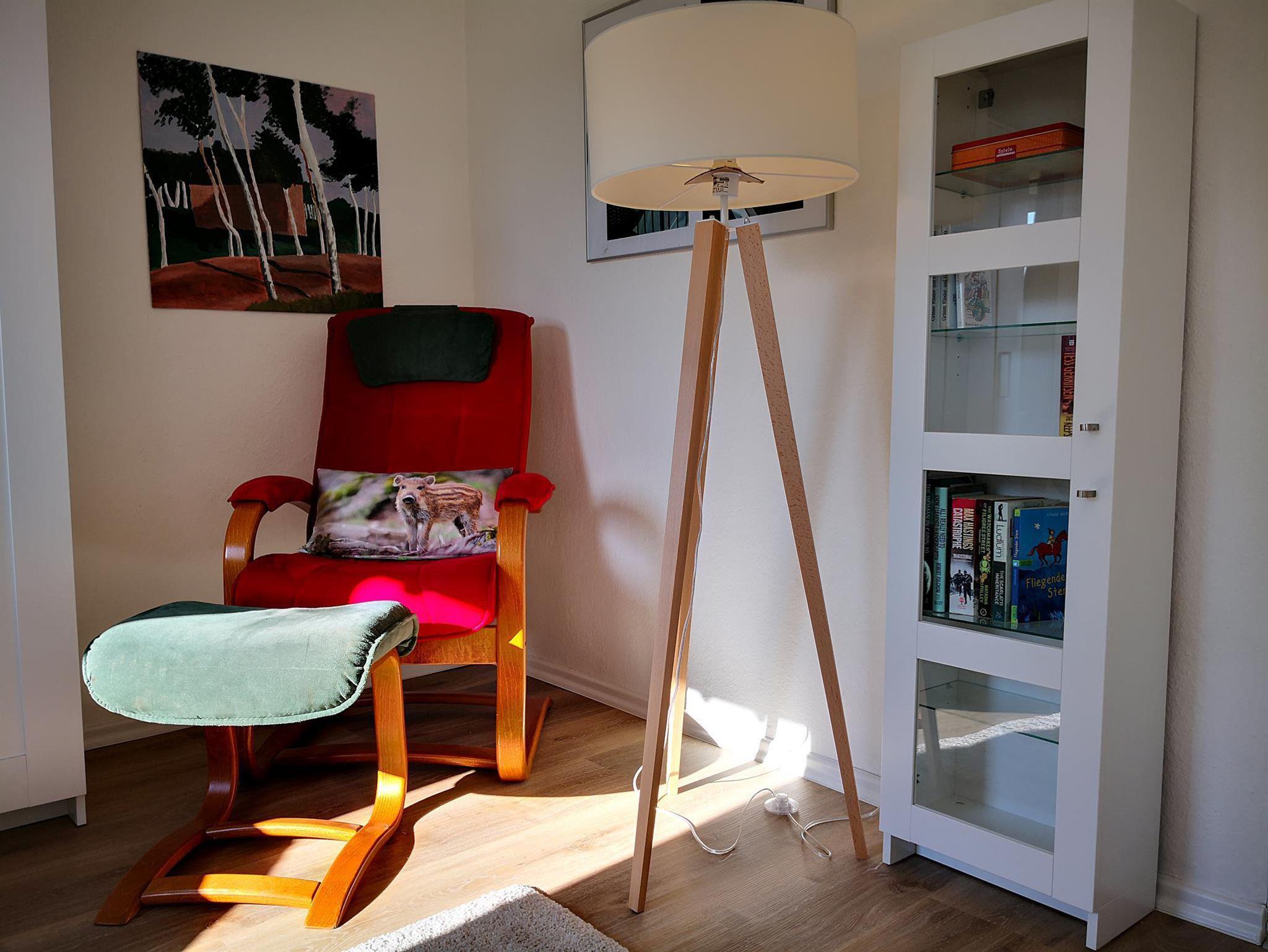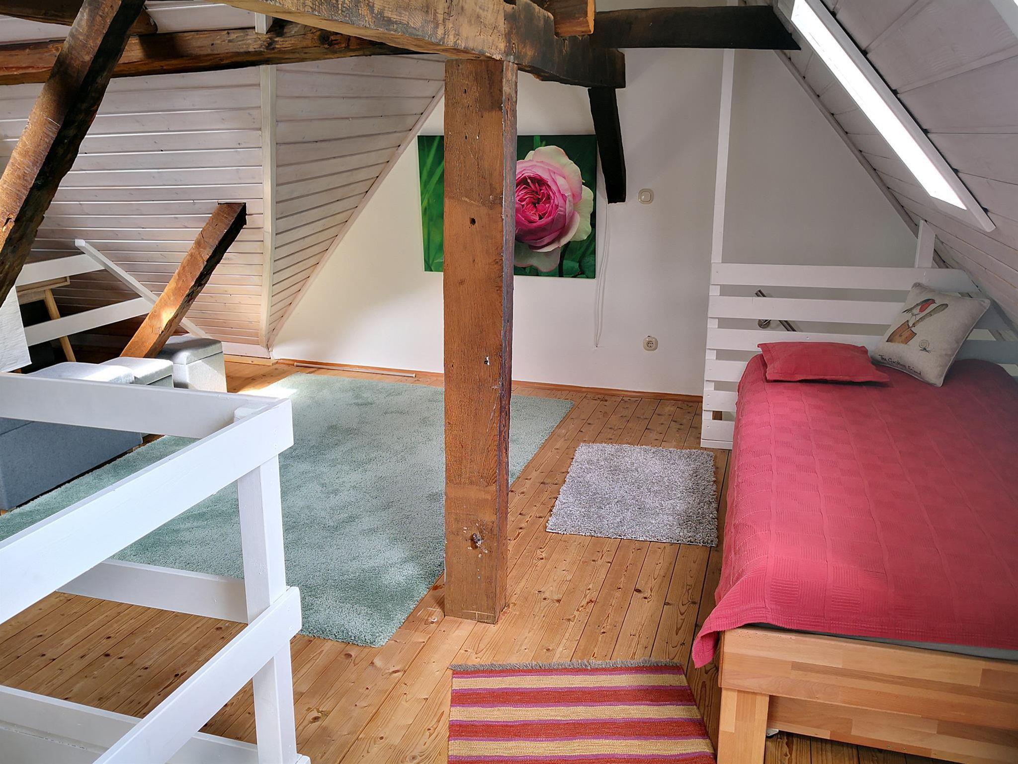 Galerie mit Fernsehecke, Smartfernseher und DVD-Player, Einzelbett 90 X 200 cm sowie ein zu einer Liegestatt konvertierbarer Hocker