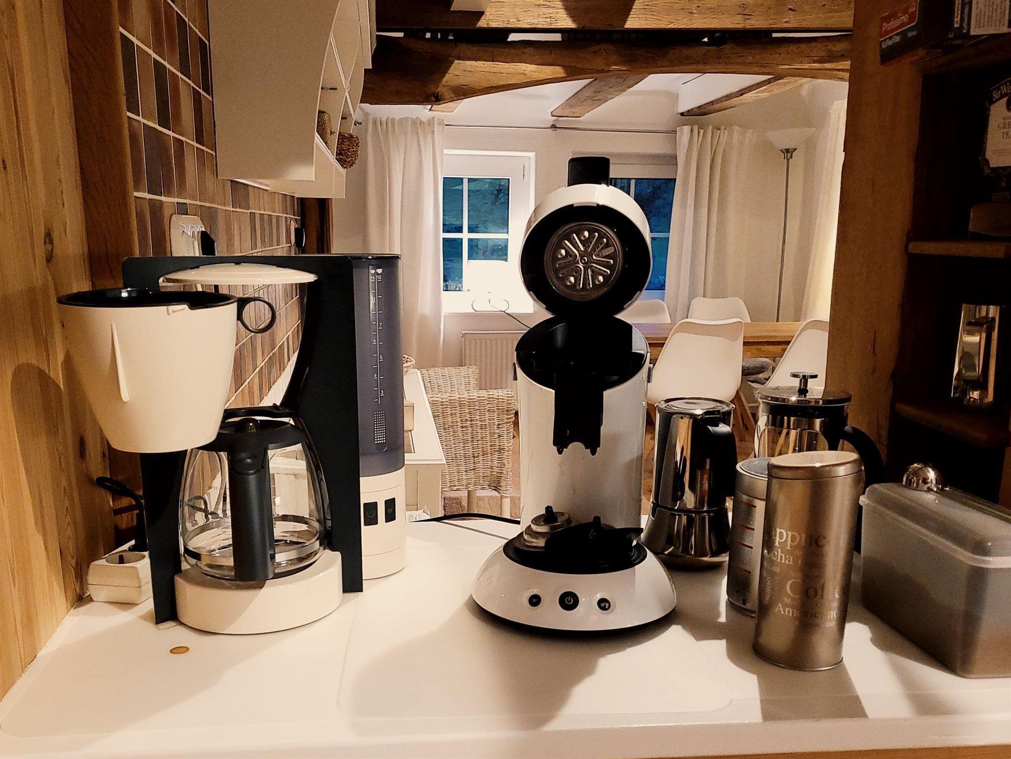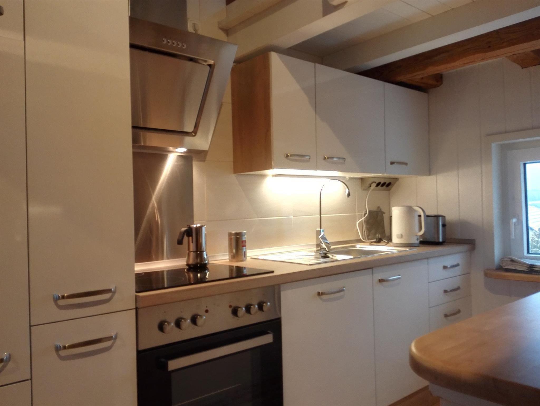 Im oberen Geschoss:Vorflur;Essbereich: Esstisch, Vitrine, Sideboard und Hängeboard, Internetradio. Einbauküche mit Kühlschrank (mit Gefrierfach), Koch- und Backherd, Ablufthaube, Mikrowelle, Toaster, Wasserkocher, Mixer, Spülmaschine. Geschirr sowie Küchengeräte ausreichend vorhanden,Tee-, Kaffee- und Espressobereiter.